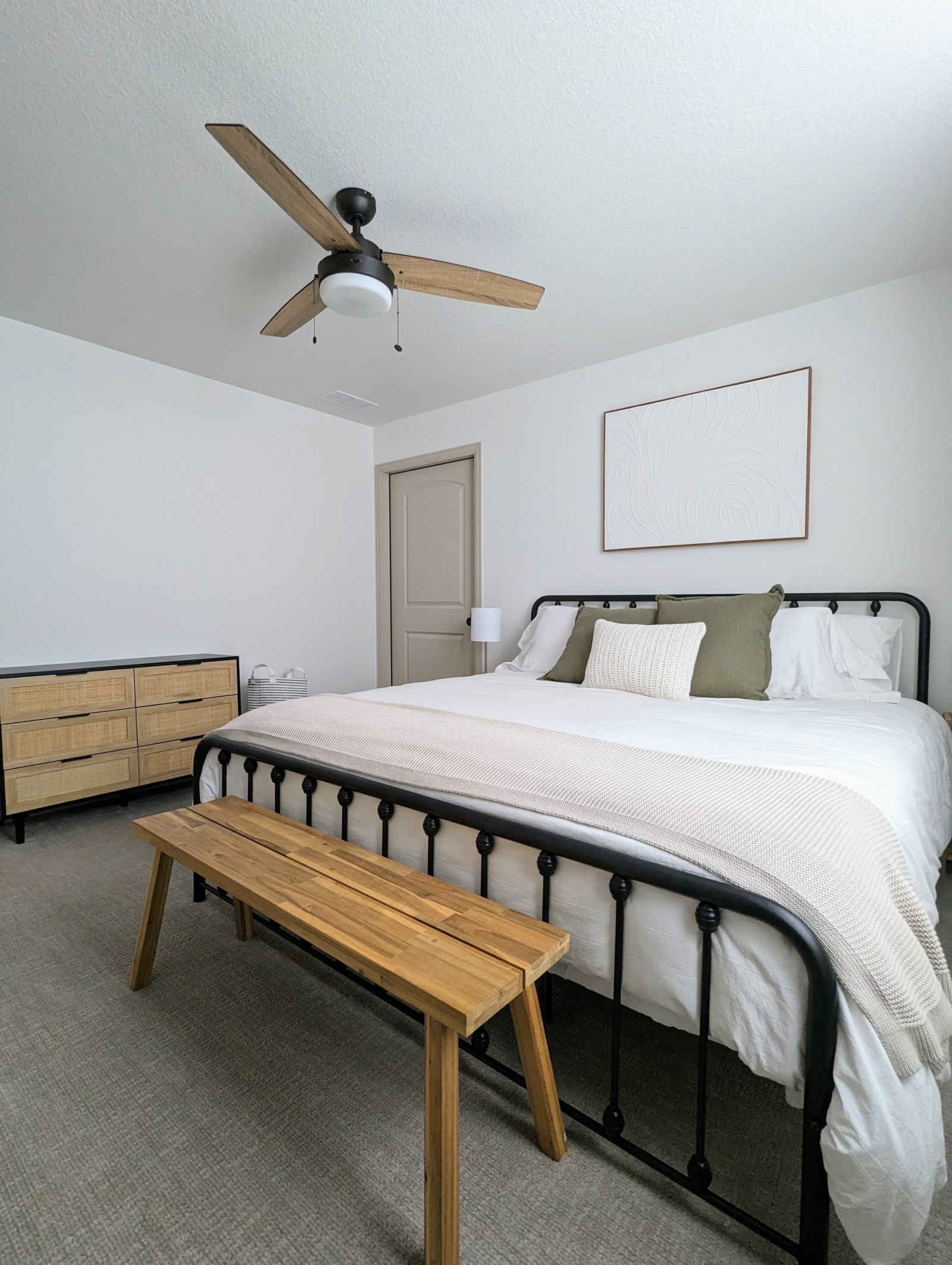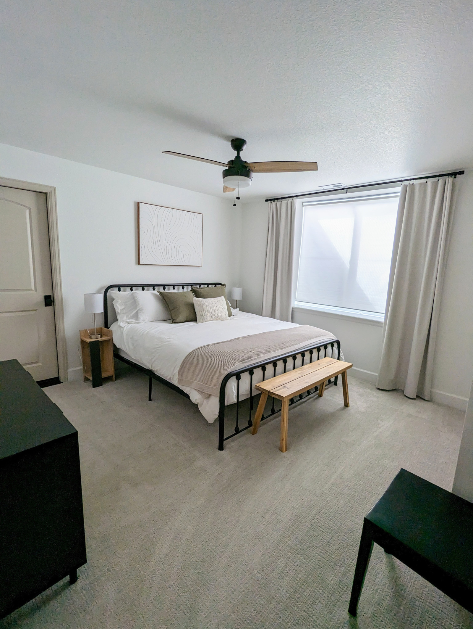 Guests will have access to all three floors of the home, each connected by a full set of stairs. The backyard’s expansive setup is ideal for leisure and play. Entry is seamless and secure; no need for keys as the house can be accessed via a code.
