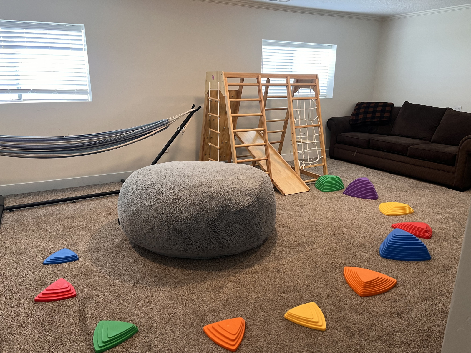 Playroom. LOTS of sets of toys to play with. Board games, marbles, stuffies, tons of books, blocks, flower stackables, and more. Something for everyone age!