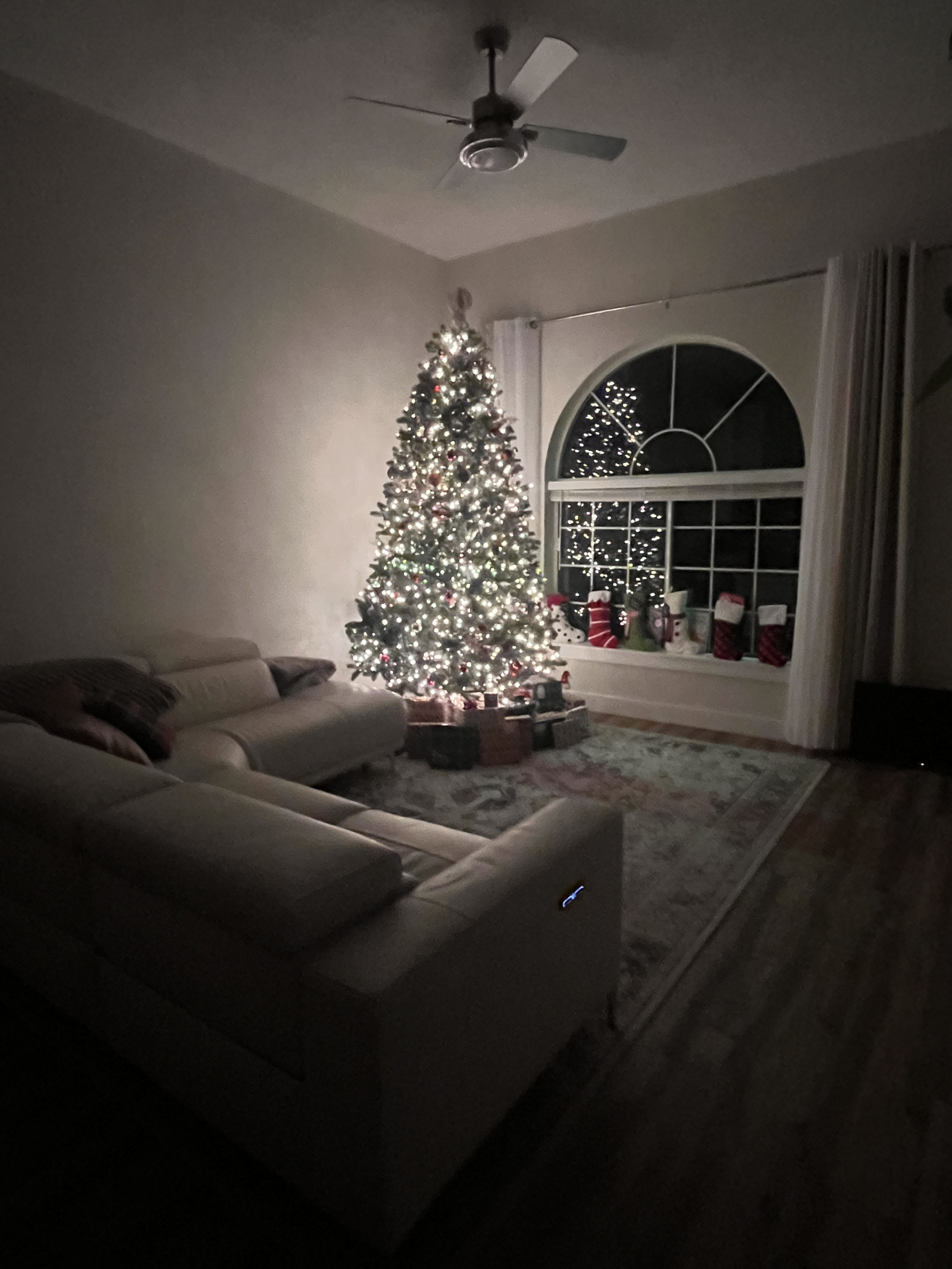 This is our 55” smart Roku “floating TV.” It normally lives in a closet but we sometimes move it *carefully* upstairs or into the toy room for movie nights.