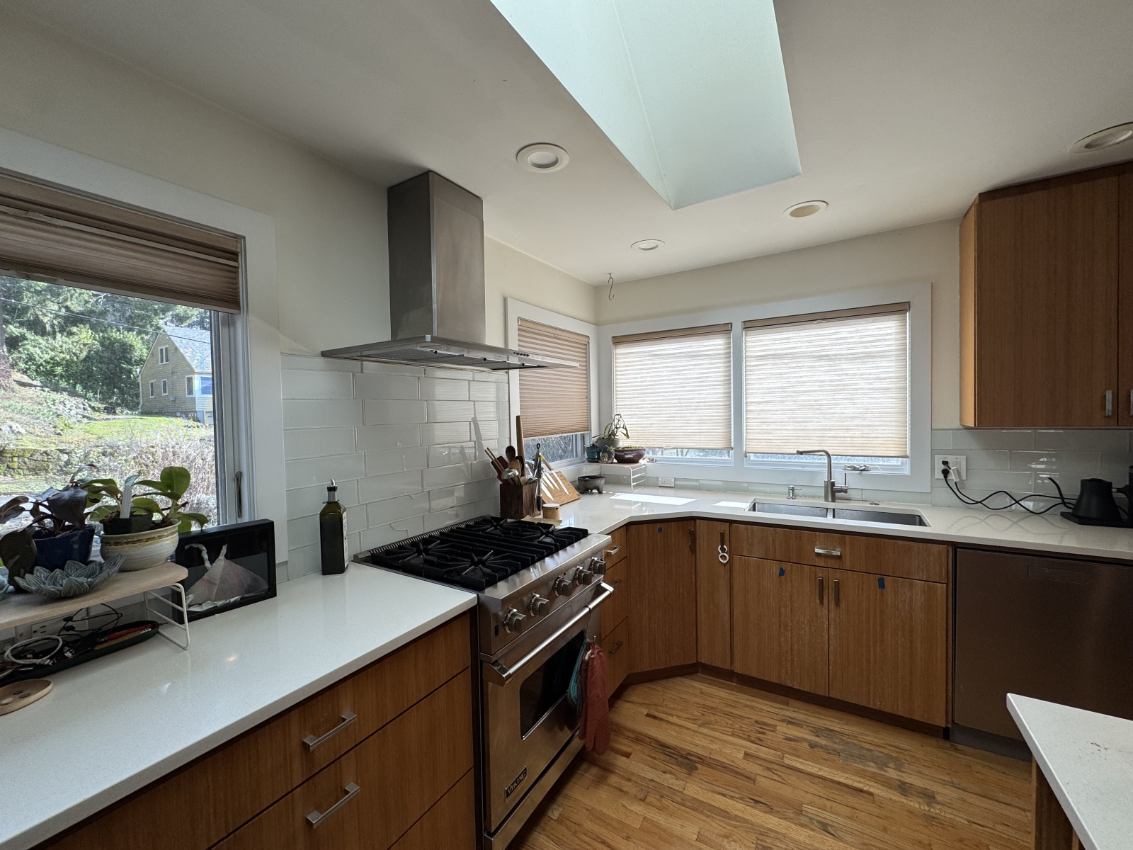 It’s great shelter in the rainy half of the year with radiant heat and a covered porch, as well as the hot and dry summers with efficient design, air conditioning, and easy access to the yard.