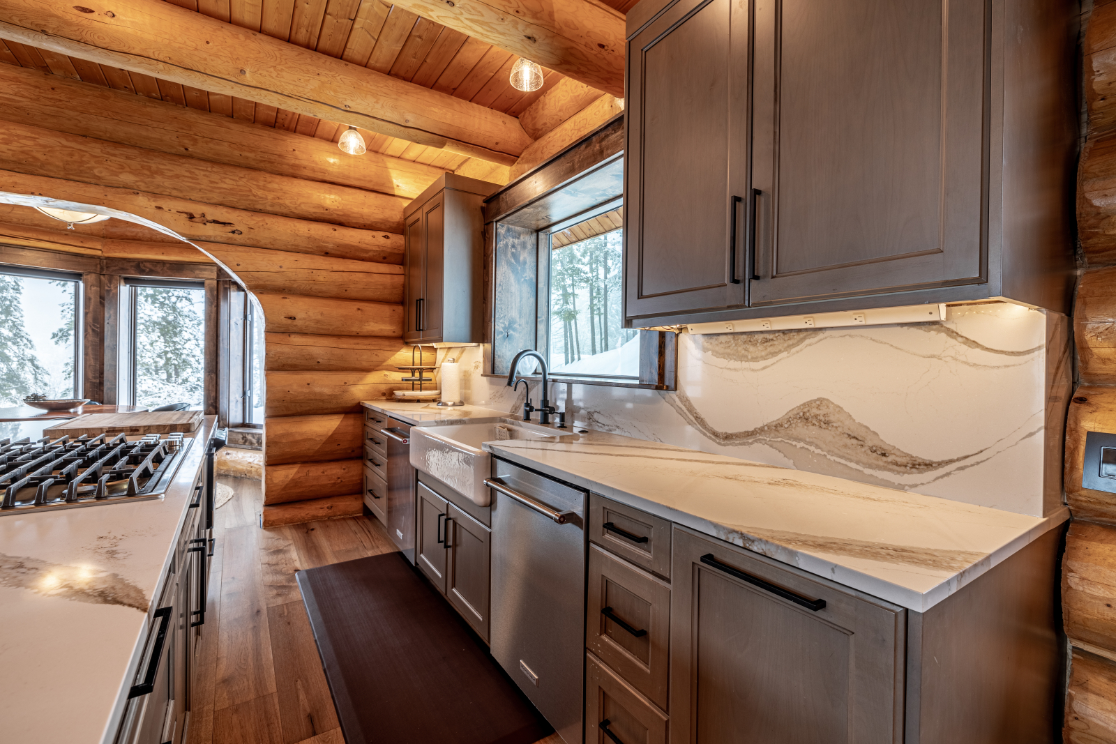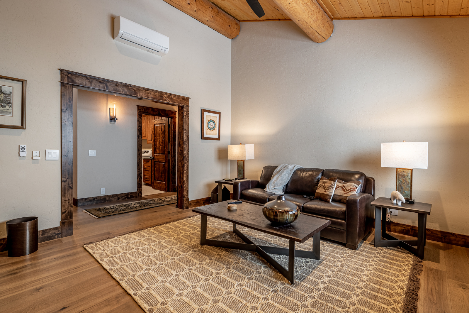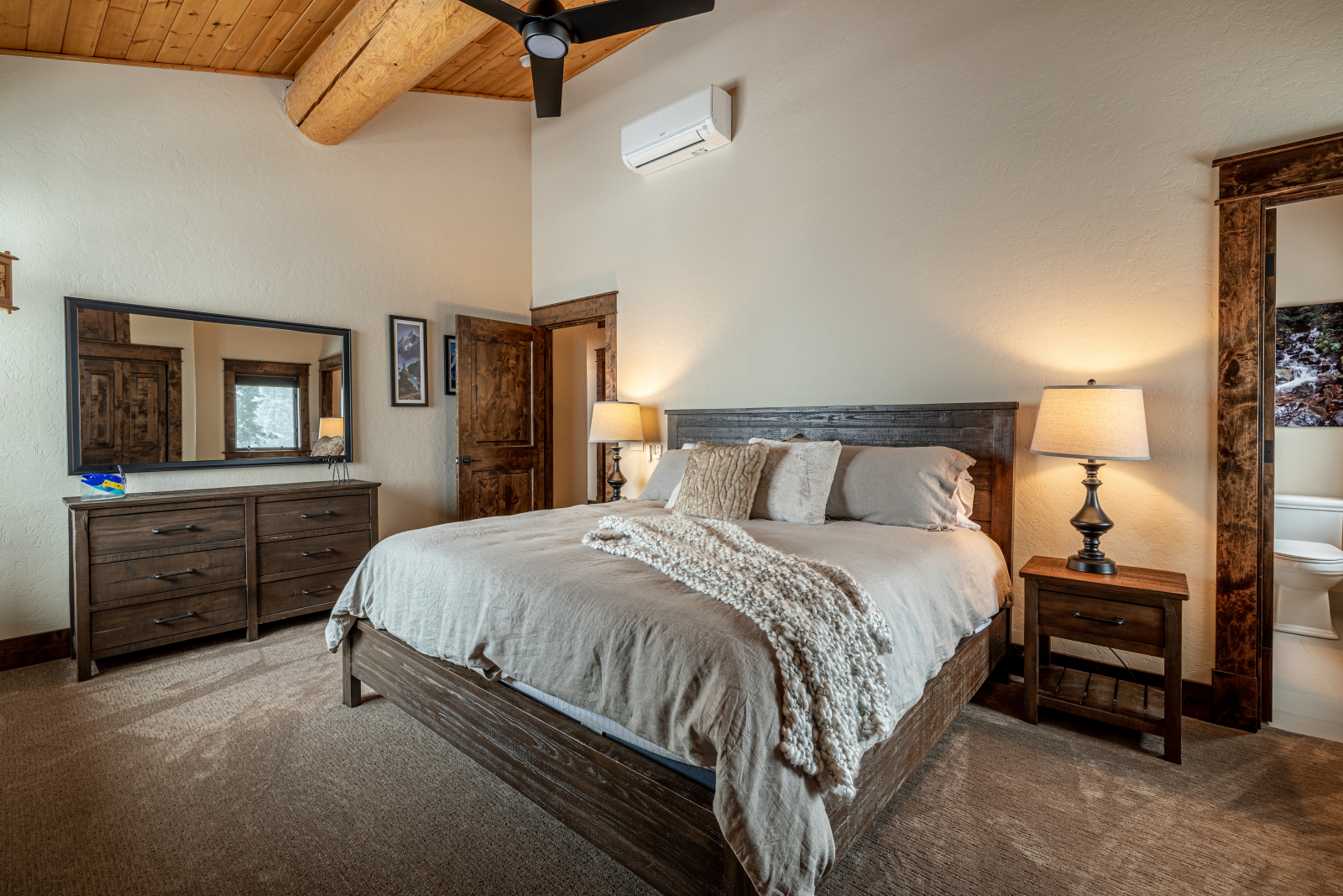 Enjoy meals in the formal, fire-side dining room with seating for 8, or among the mountains and trees in one of two outdoor dining spaces.