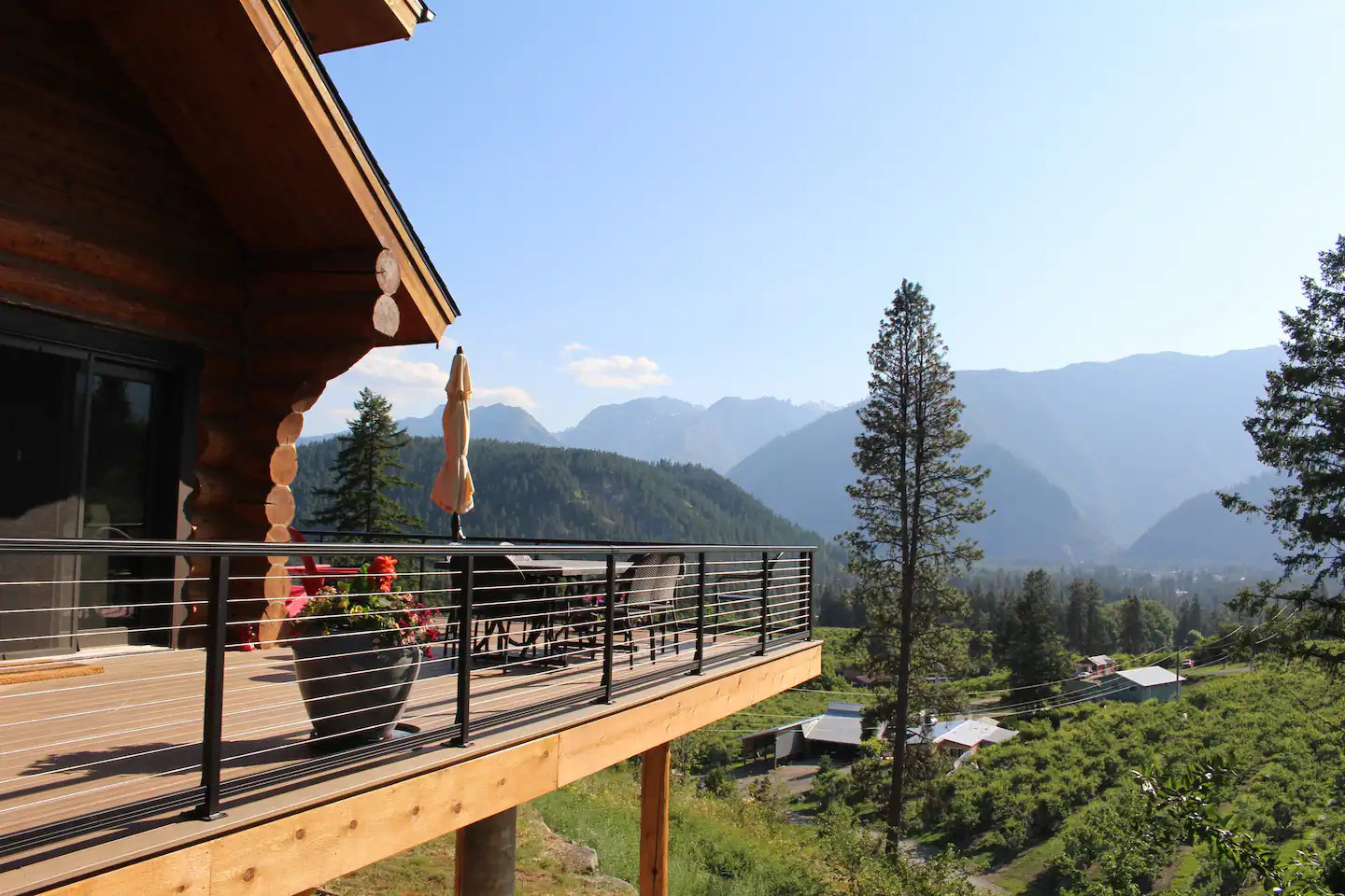 Our 4,500+ sq ft log home on 2.5 serene acres feels miles away from the busy-ness of Leavenworth, yet is just 3 minutes from town. Enjoy unrivaled mountain views from the expansive deck or hot tub, relax on plush furniture by the gas fireplace, and enjoy a chef's kitchen, kids play spaces, and peaceful mountain serenity.