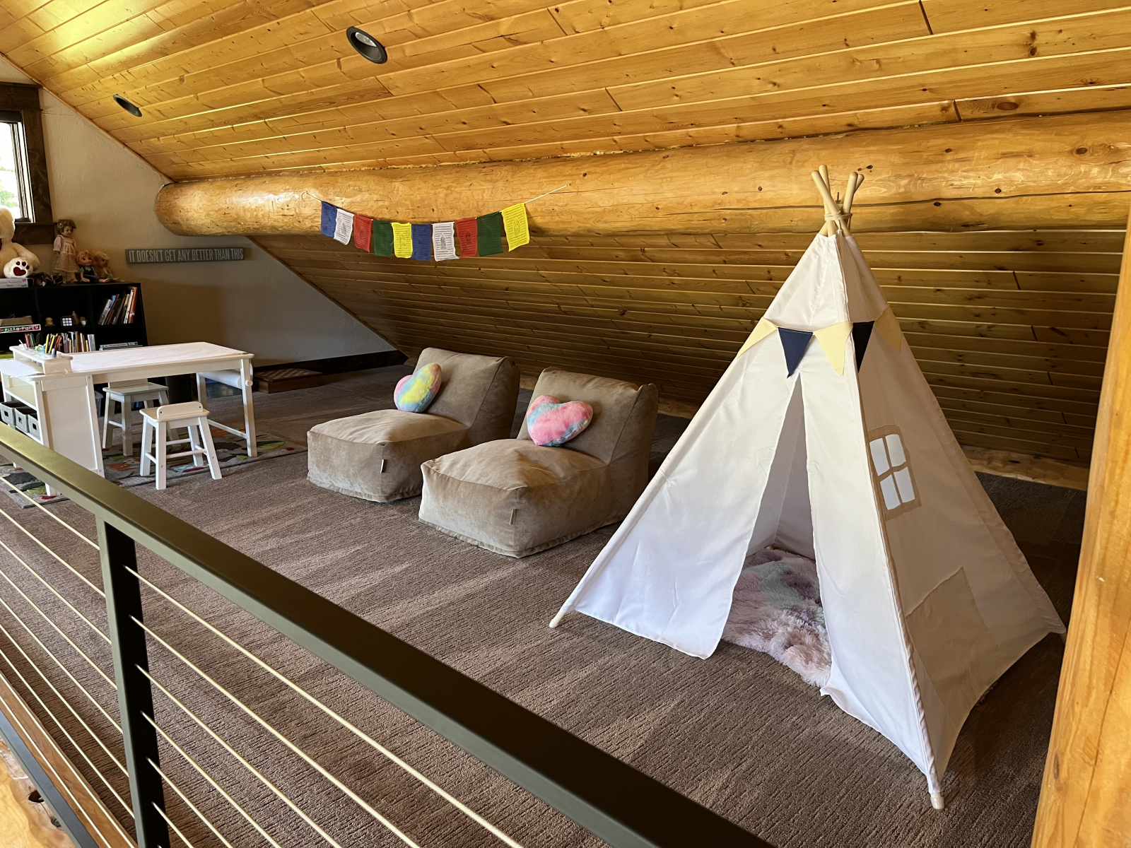 Younger guests will LOVE the loft play space complete with tents, bean bag chairs, drawing tables, Legos, books, dolls, and so much more. The whole family will enjoy the card table, board and card games, shuffleboard table, and pinball machine!