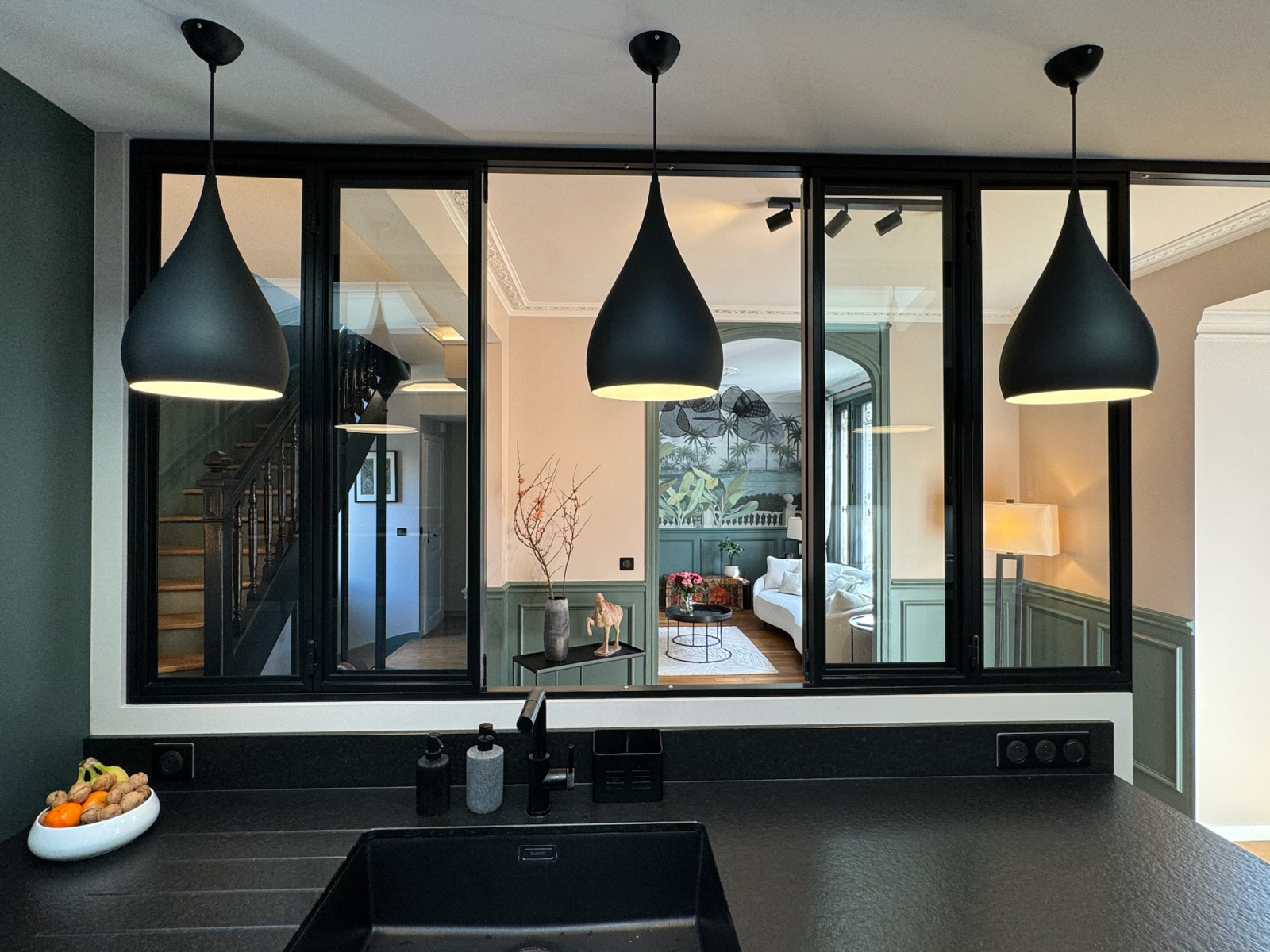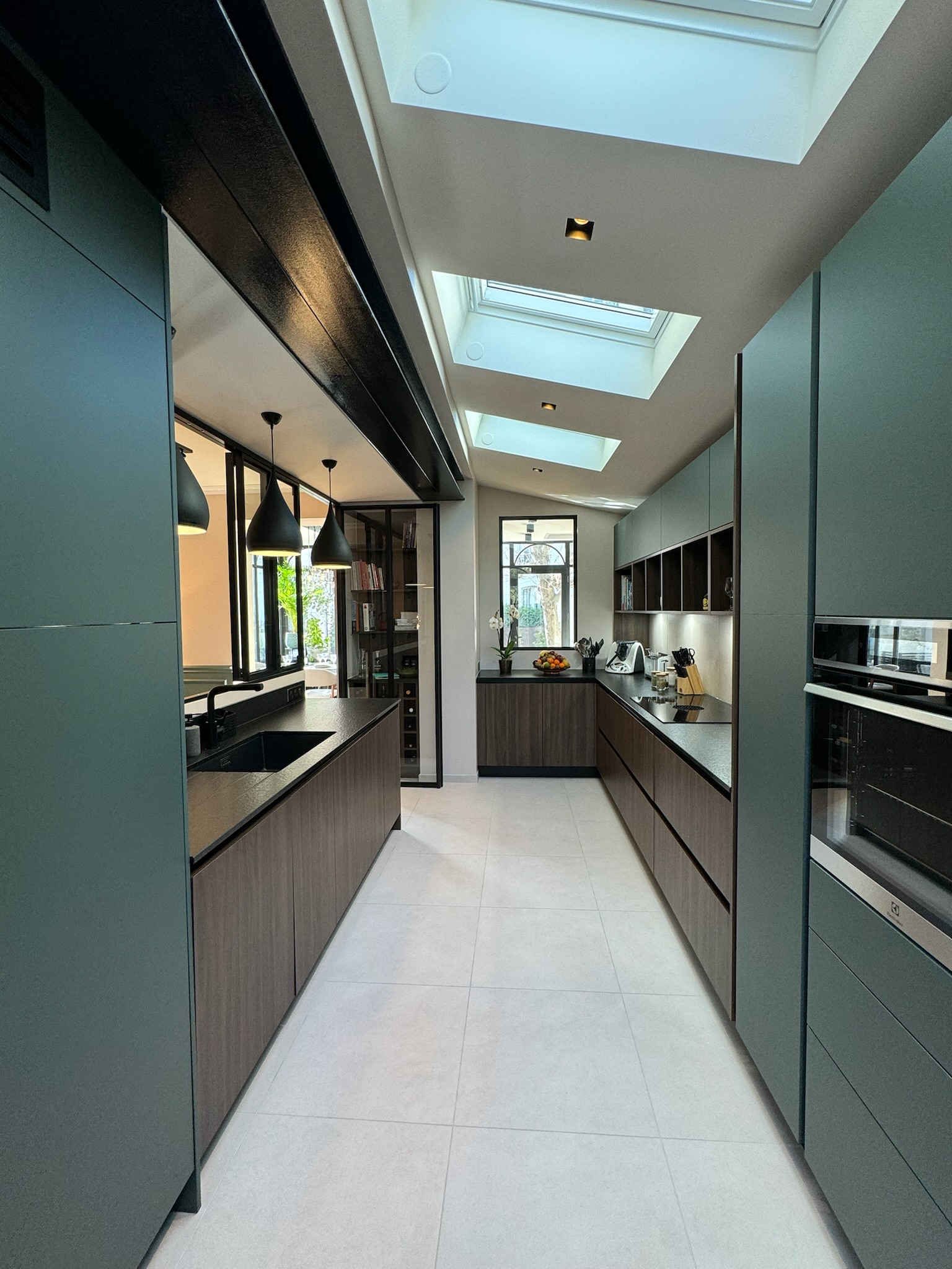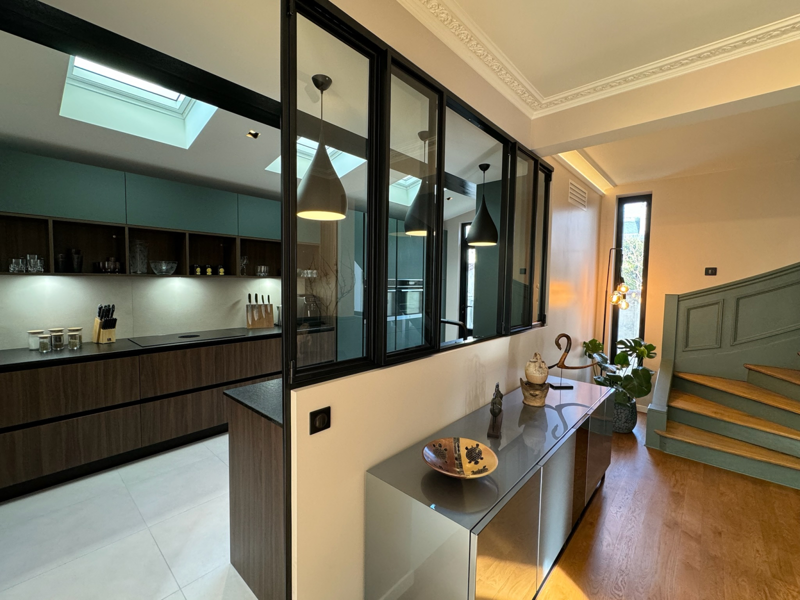 Very large kitchen with all the latest equipment (2 steam ovens, microwave, induction hob with integrated hood, Thermomix, dishwasher, freezer and fridge cabinet...). Everything to delight cooking lovers!