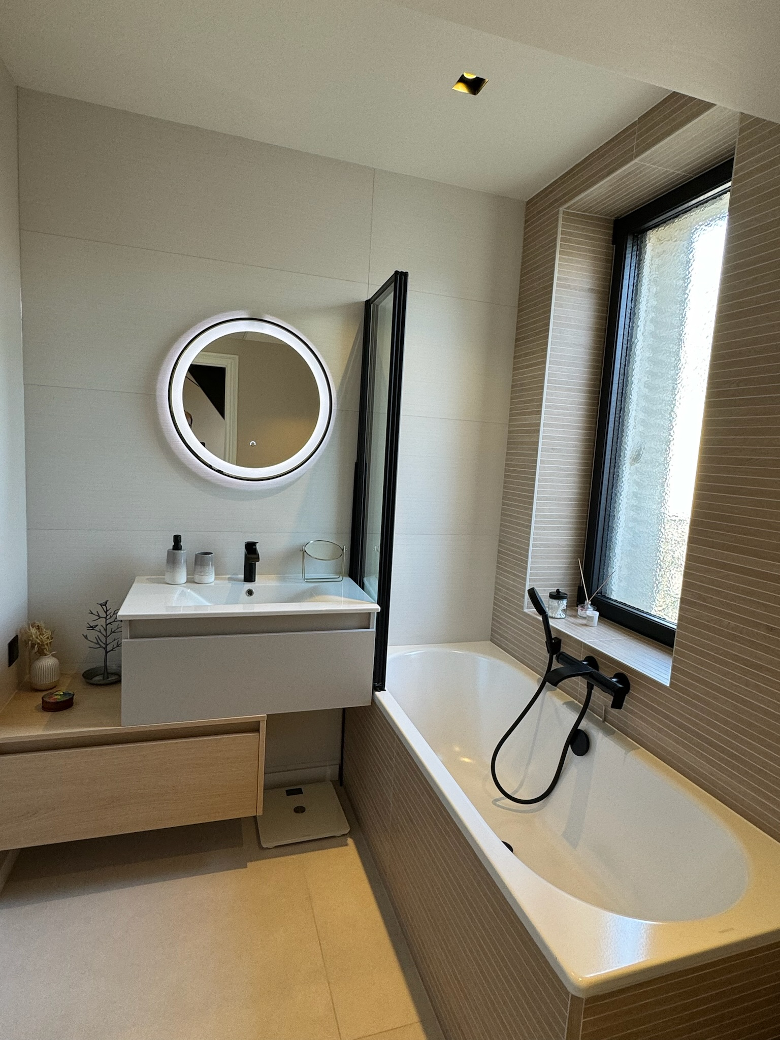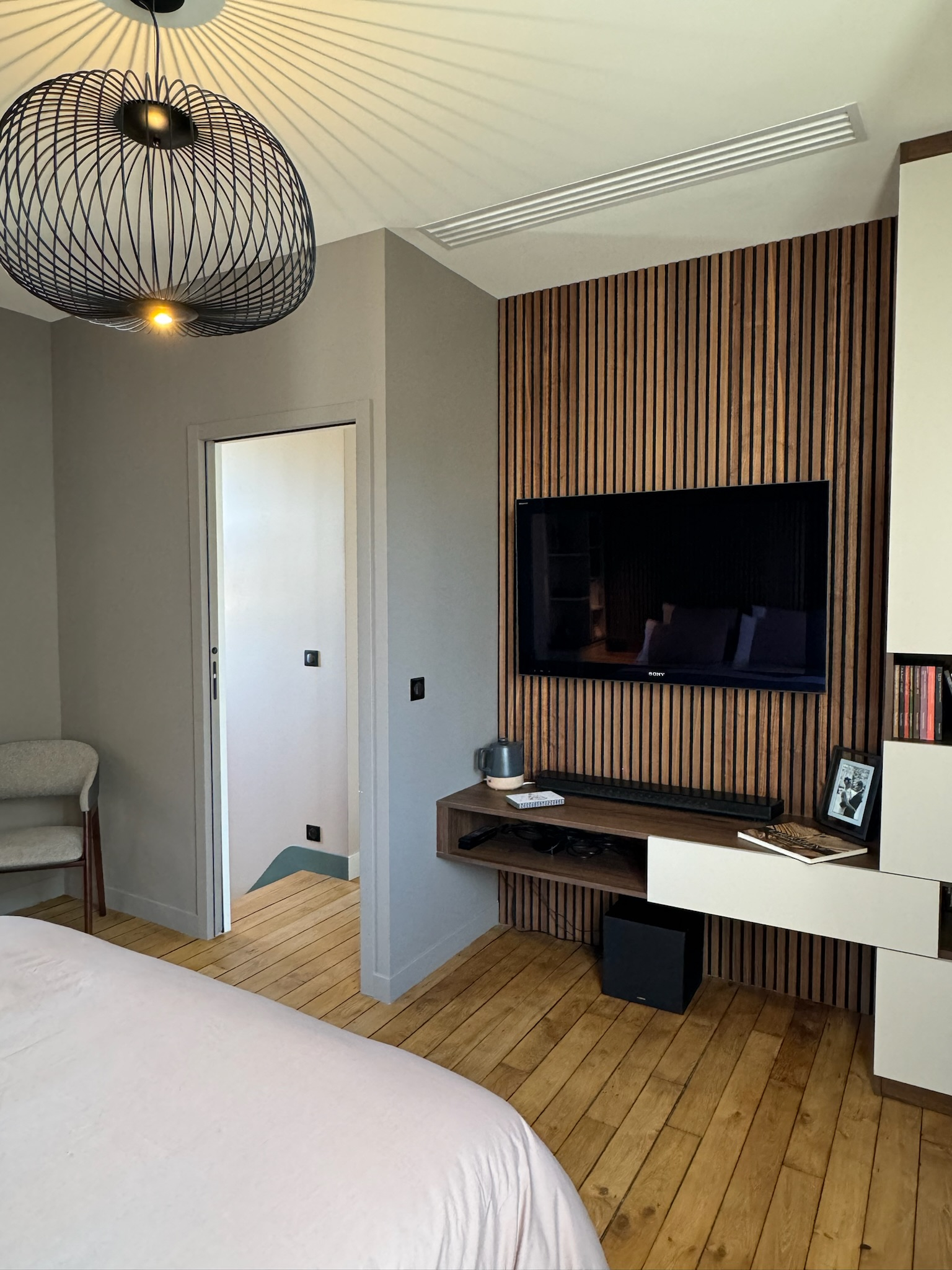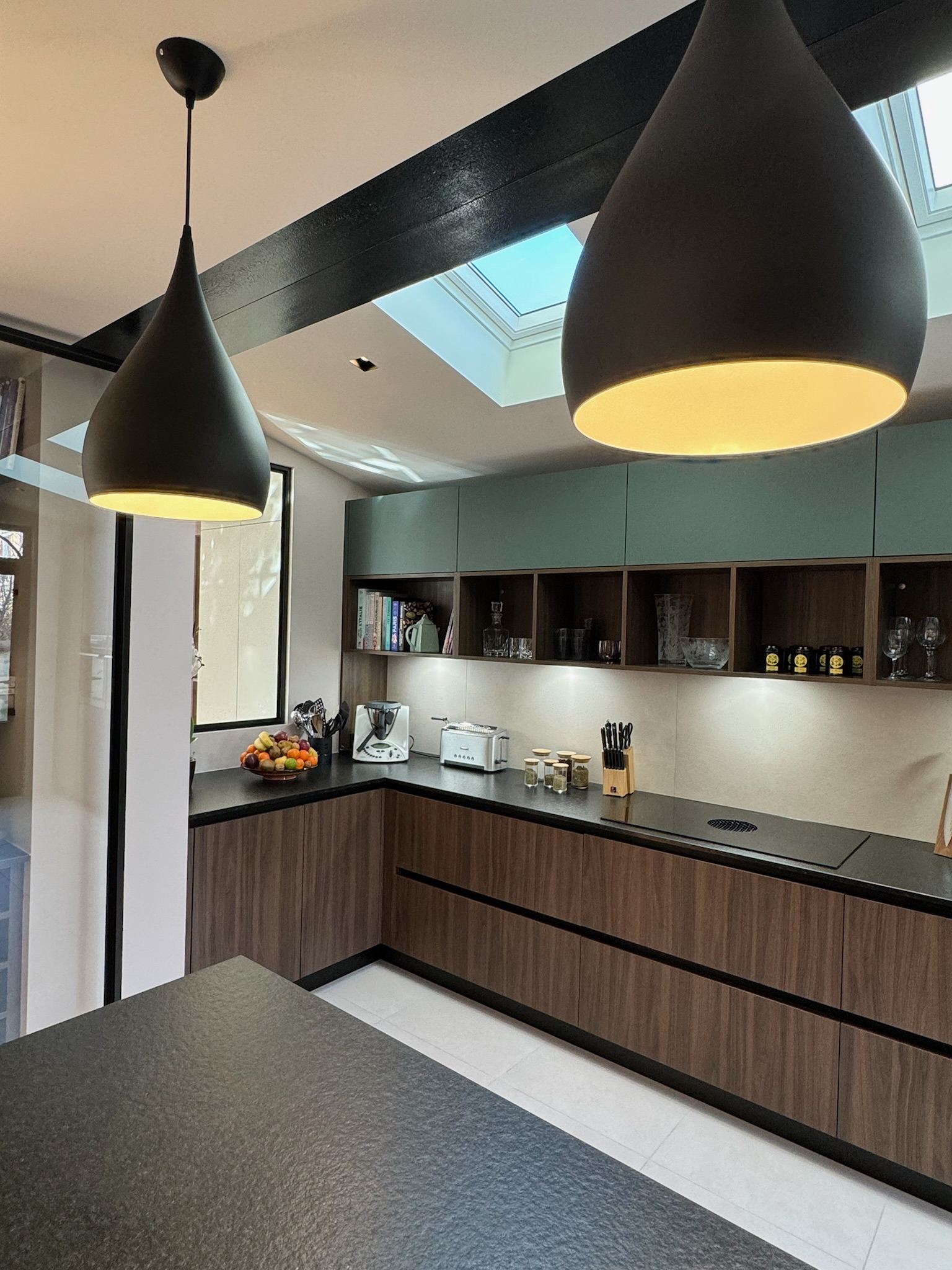Very large kitchen with all the latest equipment (2 steam ovens, microwave, induction hob with integrated hood, Thermomix, dishwasher, freezer and fridge cabinet...). Everything to delight cooking lovers!