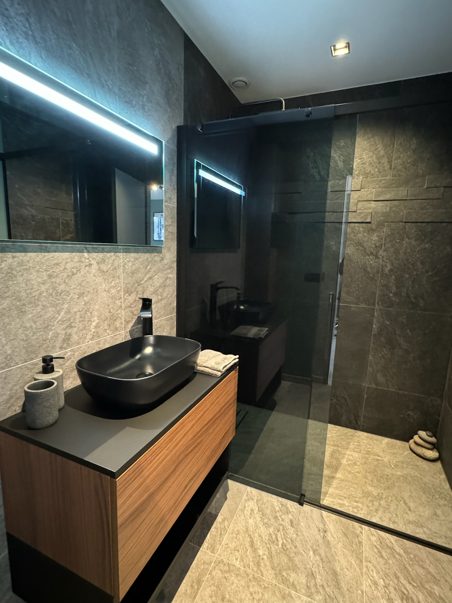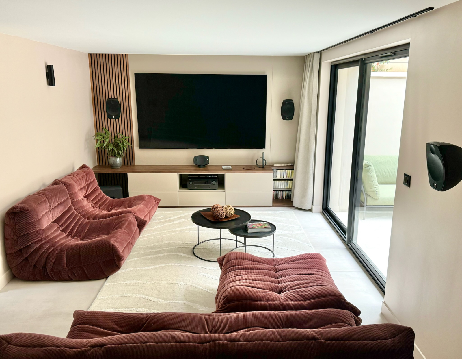 In the basement, laundry room and 7.1.2 home cinema with 2.12m diagonal Samsung Neo QLED TV screen.