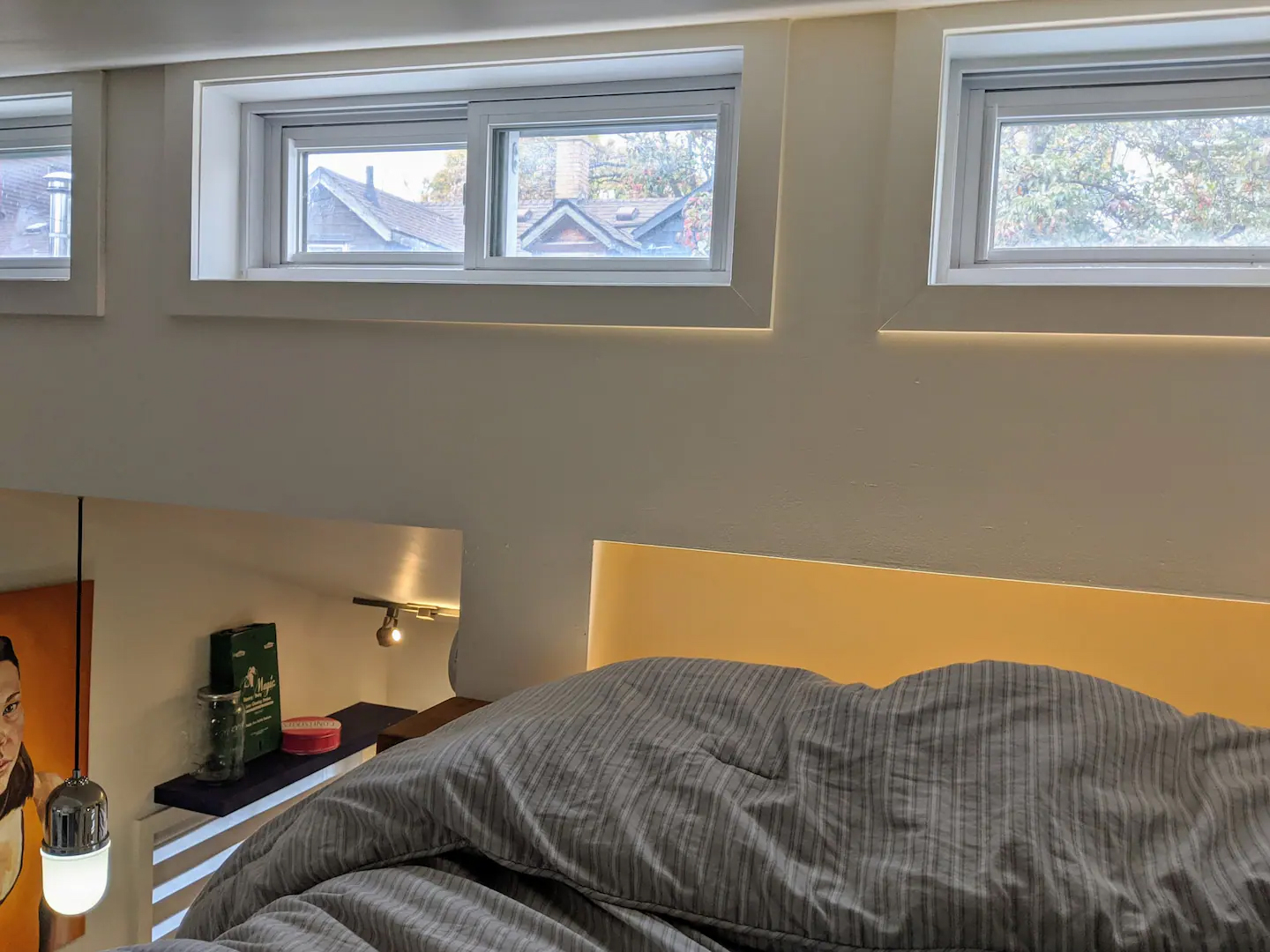 Located in the heart of downtown near Trinity Bellwoods park, one of the liveliest neighbourhoods in Toronto, this modern, stylish and bright 400 sq. ft. loft studio features a lovely private garden and a 13' ceiling. The space is compact but ergonomic, with granite counters, hardwood floors, a heated bathroom floor, air conditioning, a two-sided gas fireplace and a loft bed. The private entrance can be accessed via a laneway gate with a passcode; automatic floodlights and a security camera have been installed for safety. Situated in the centre of Toronto's trendiest area with walking access to countless restaurants, bars and cultural activities, this space would be ideal for a visiting professional or student.