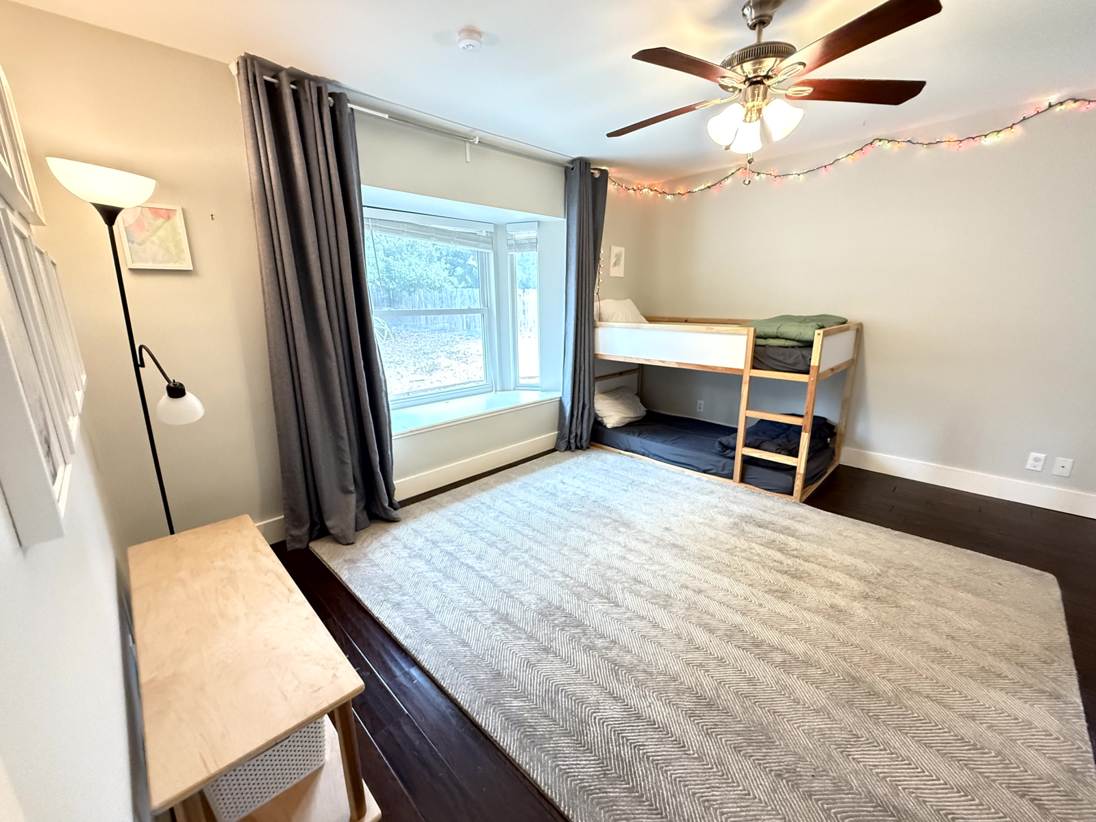 We have lots of kid friendly amenities that won't cramp adults' style, including high chairs, babyproofing, gate on the stairs (note that upstairs will be closed). The front yard has lots of kid friendly play areas, including swings, a gym climber, and tree climbing holds. We also have lots of toys for all ages available.