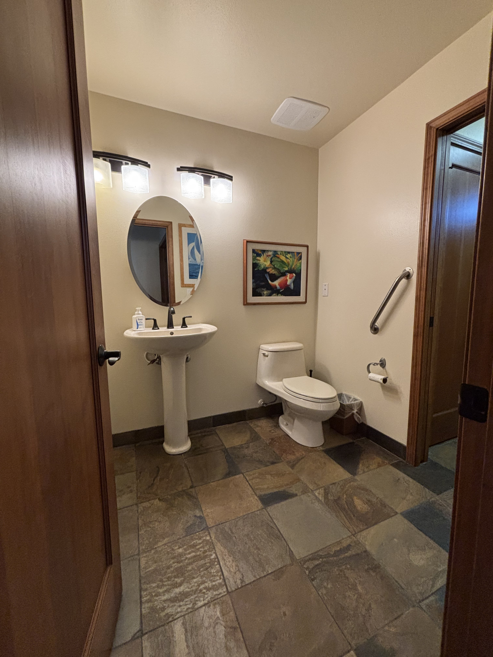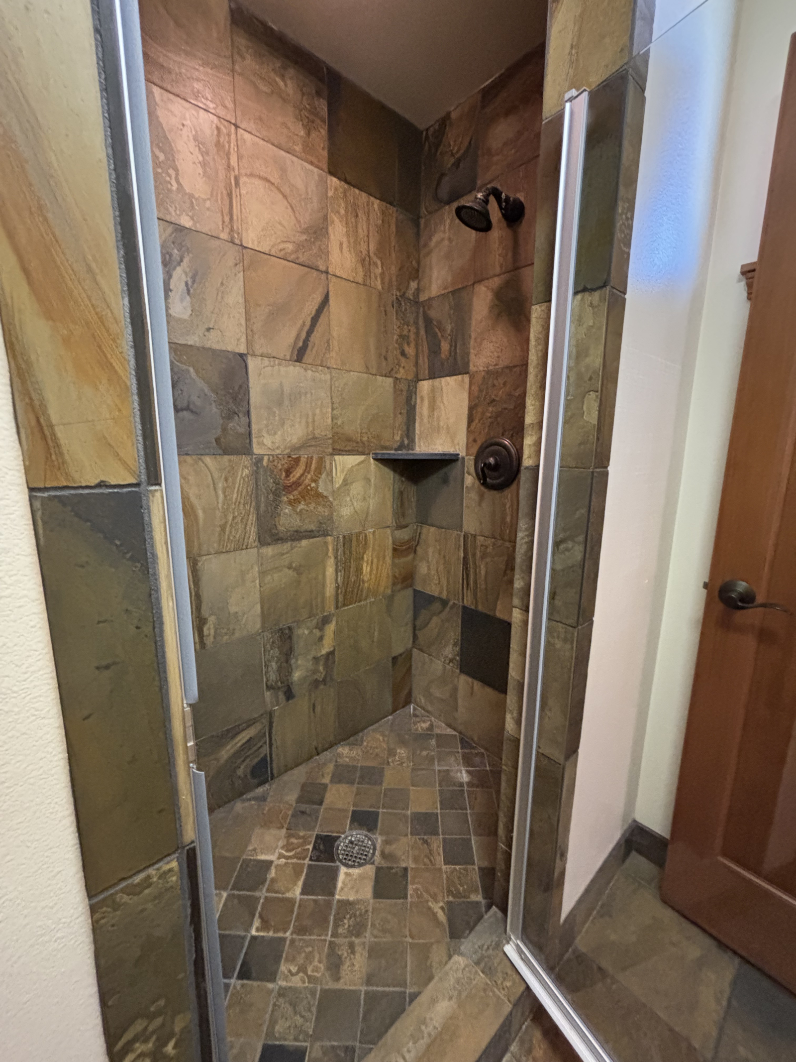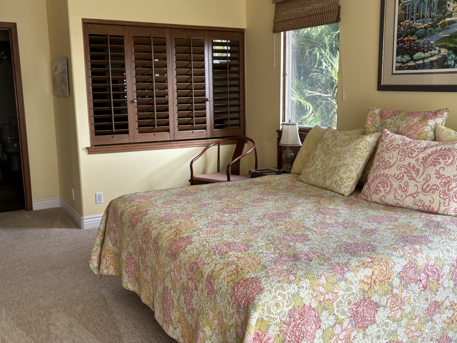 Two bedrooms with King sized beds and private bathrooms with large showers and double sinks. Master bathroom has a jacuzzi bath tub. There is a third bathroom with smaller shower. One space in the garage.