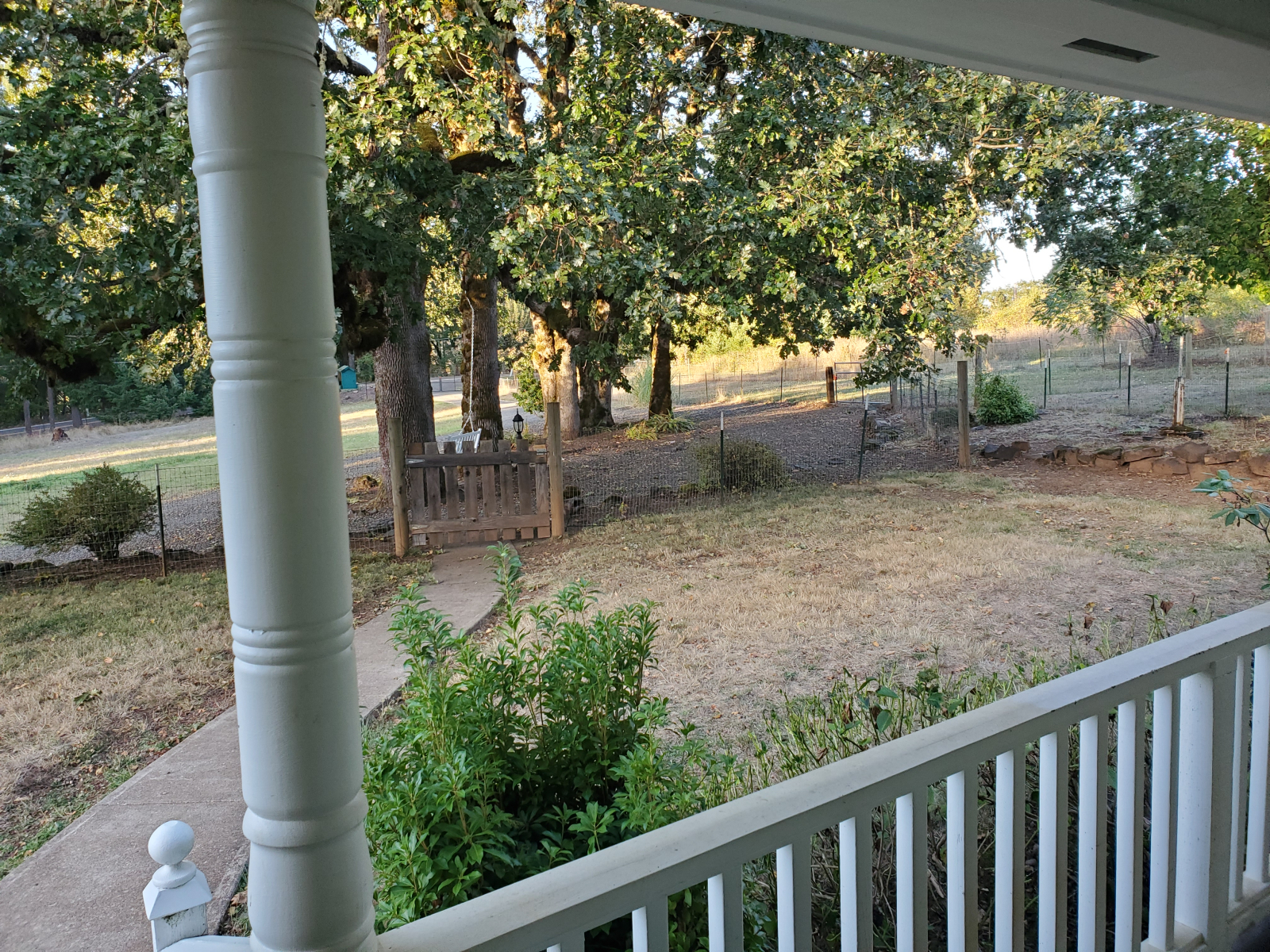 Our home sits on about four acres in the Willamette Valley. It is quiet and restful, but close enough to town (3 miles) for groceries and restaurants. Our home has a large garden in the summer and a hot tub for relaxing. Our dogs play in the field and our chickens free range in their yard. We love the privacy. It is a wonderful retreat. There is also hiking nearby and easy access to the coast (one hour's drive).