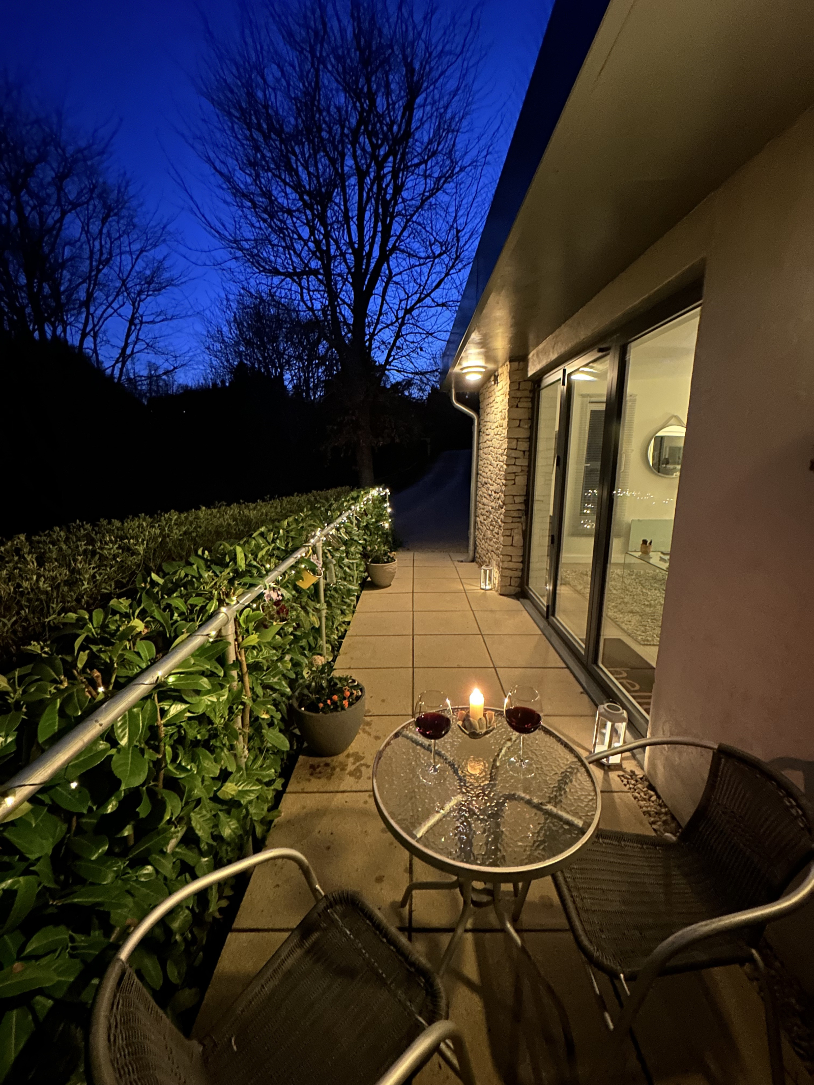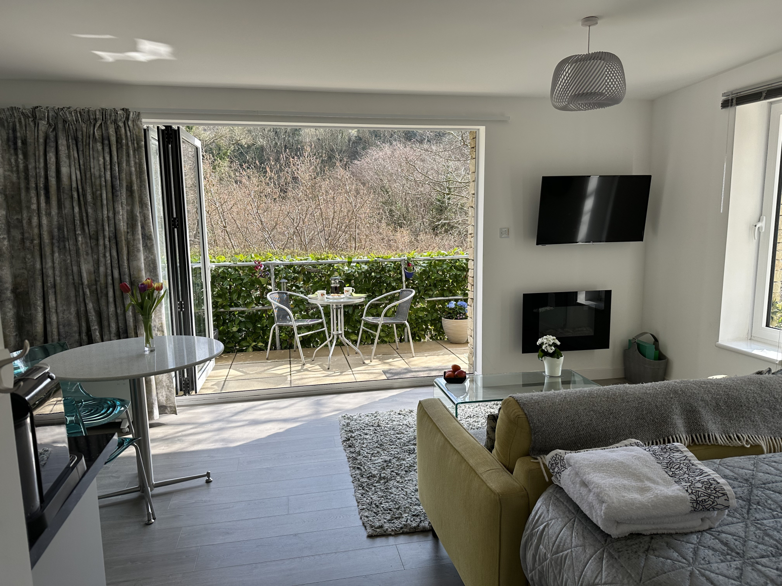 Robins Nest has access to a private, south facing sheltered patio looking over a wooded valley