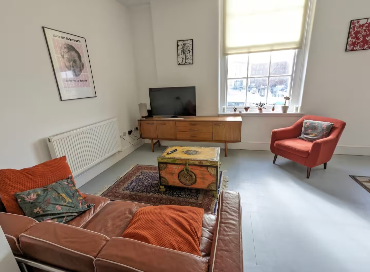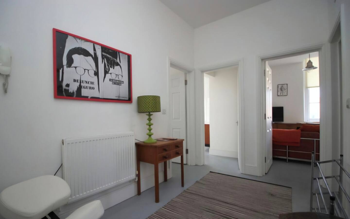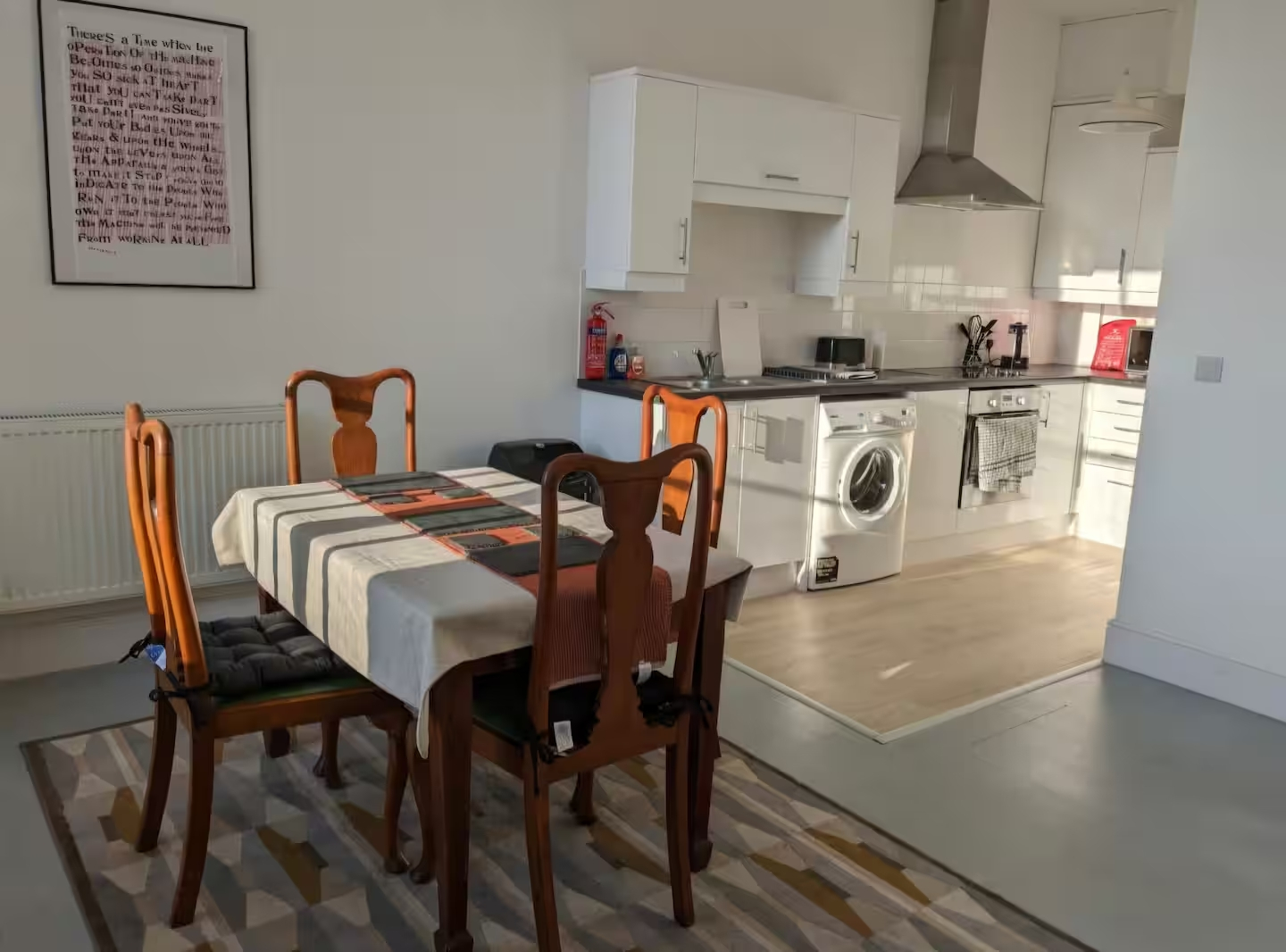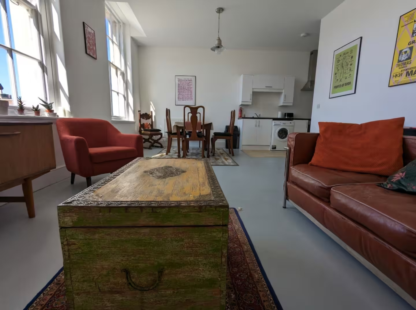A newly renovated apartment conveniently located in Margate, just a 7-minute walk from both the train station and the beautiful white-sand beach. Situated on the second floor of the historic old post office building, the apartment features two large bedrooms, a spacious living room, a hallway, and a full bathroom with a bathtub.