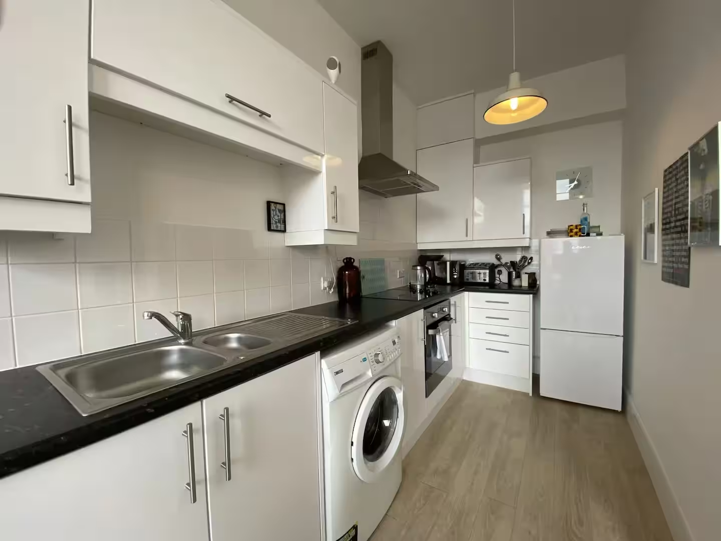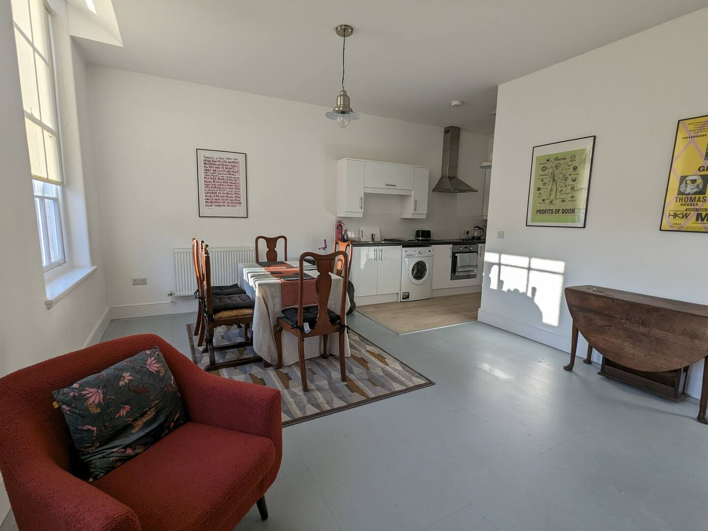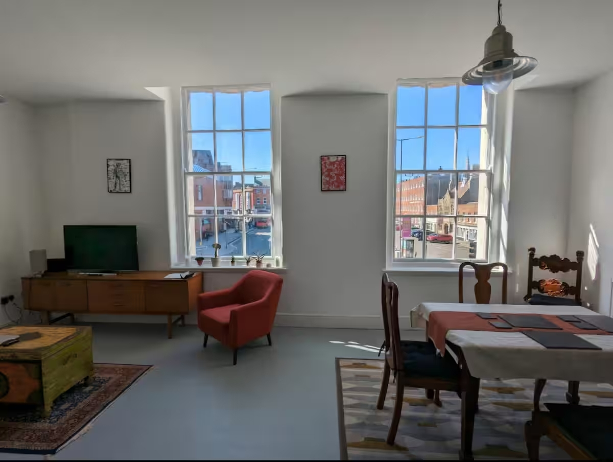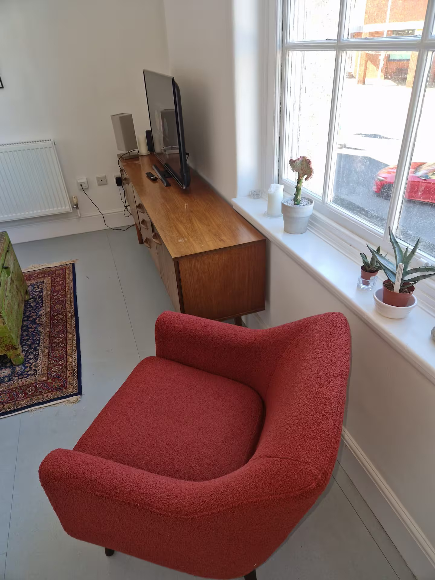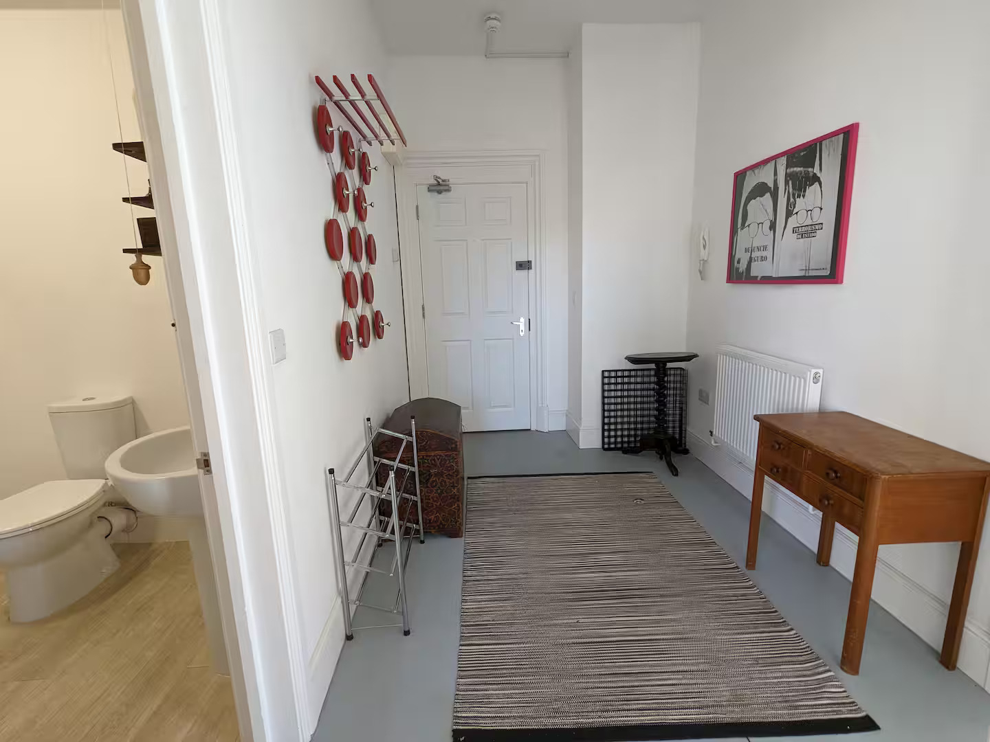A newly renovated apartment conveniently located in Margate, just a 7-minute walk from both the train station and the beautiful white-sand beach. Situated on the second floor of the historic old post office building, the apartment features two large bedrooms, a spacious living room, a hallway, and a full bathroom with a bathtub.