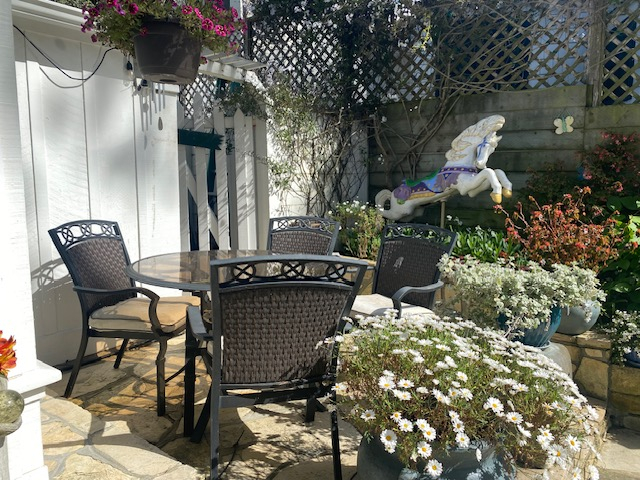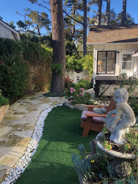 Private peaceful and quaint English Cottage style home with lush gardens, surrounded by pine and cypress trees, within an easy walk to the famous Carmel Beach, and center of town, with plenty of shopping, dining and more. The house is also very close to access points to travel to Monterey, Big Sur, Pebble Beach, Santa Cruz and so much more.!