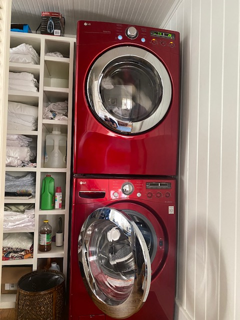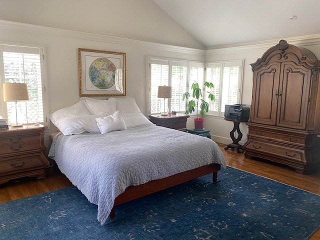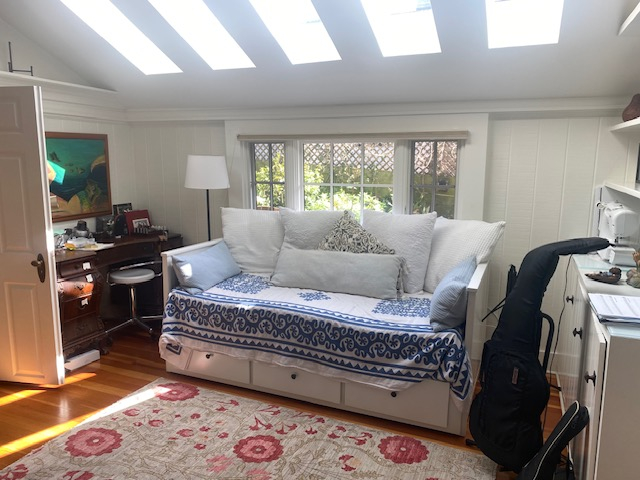The house has one very large master bedroom with king size bed, washer dryer, walk in closet and bathroom with tub and shower; another bedroom has 2 single beds, each with power adjusting sleep preferences and bathroom across the hall; the third bedroom doubles as a music room, with a daybed which folds out to a queen size bed-this room has skylights above to look up at the starry night and pines.