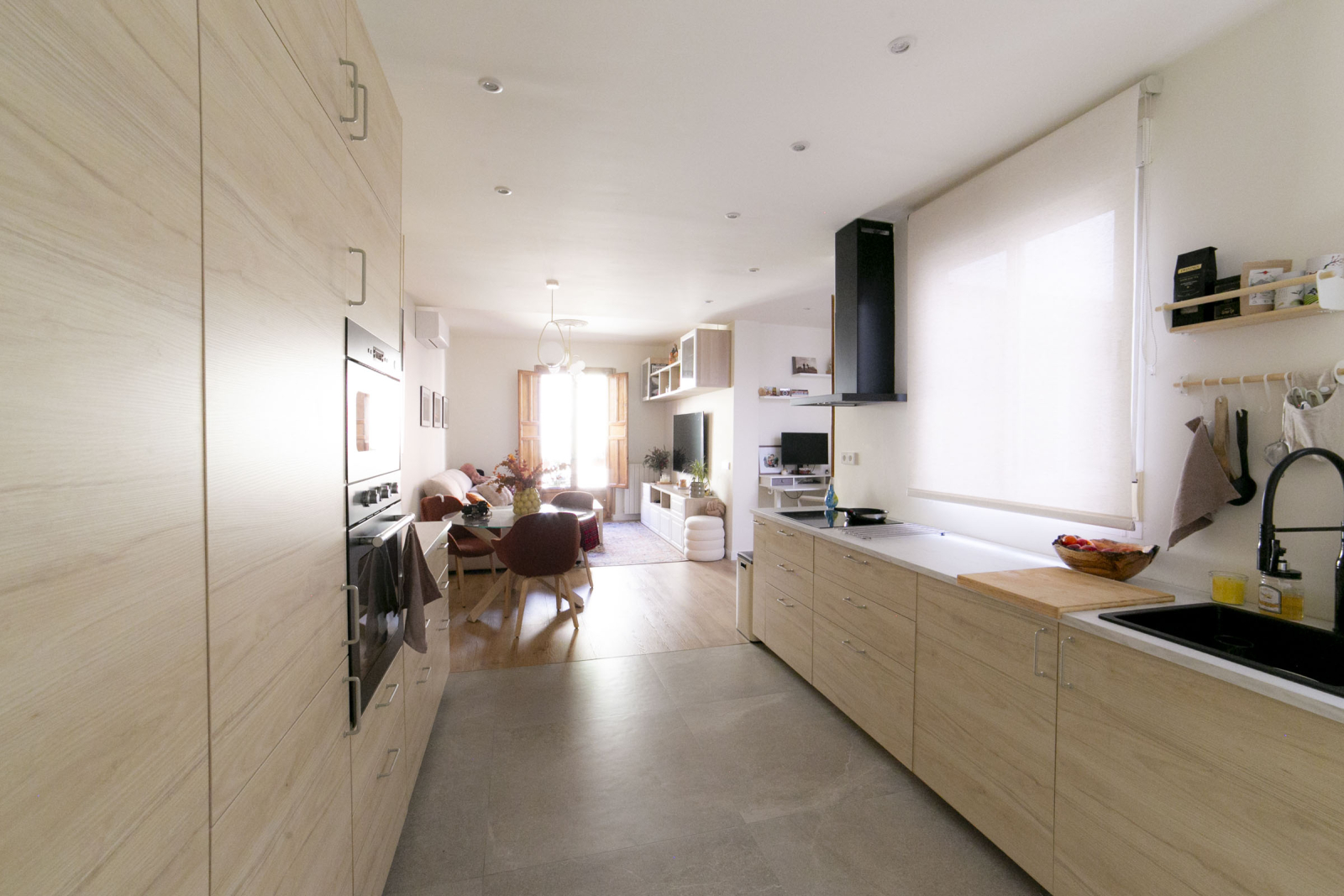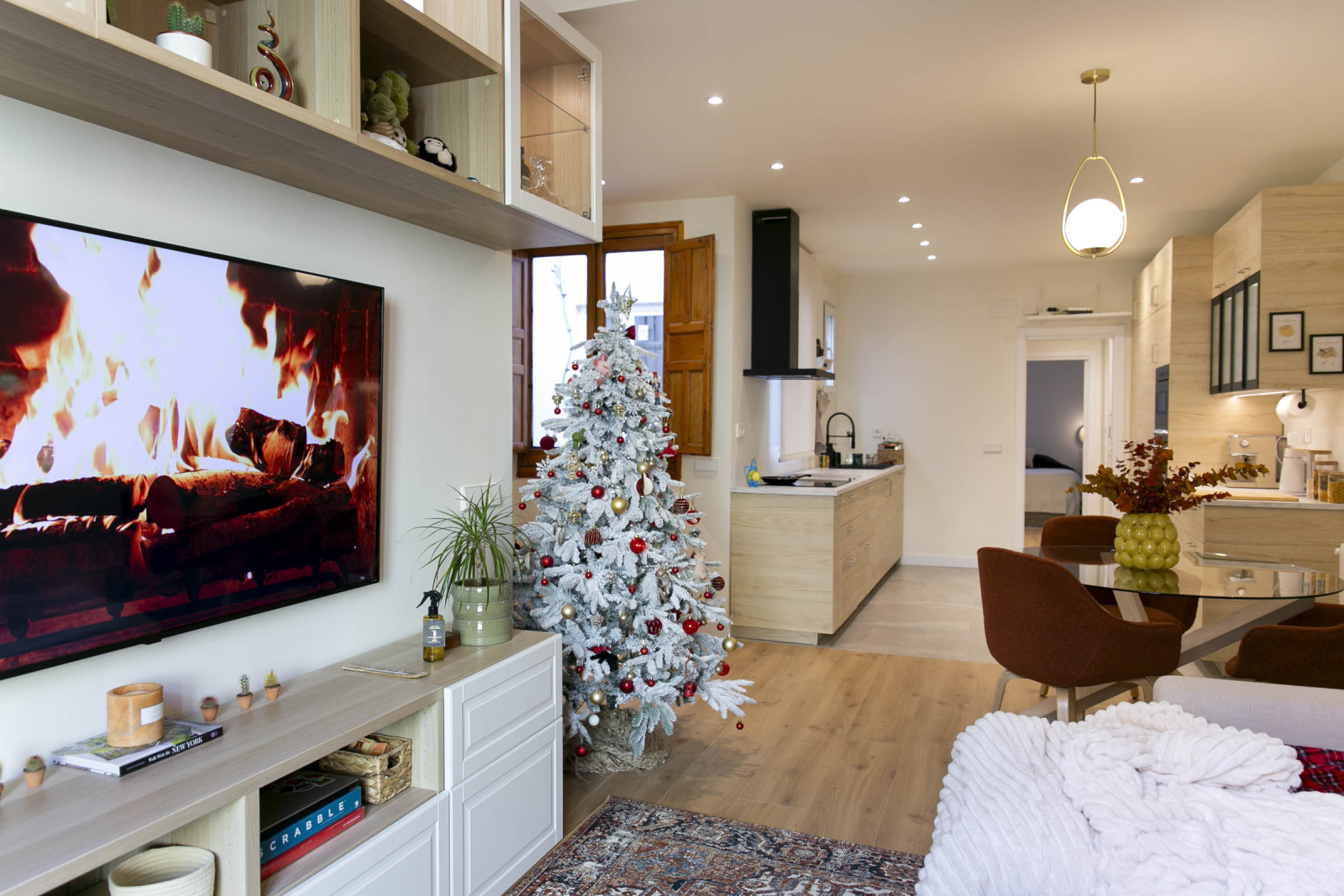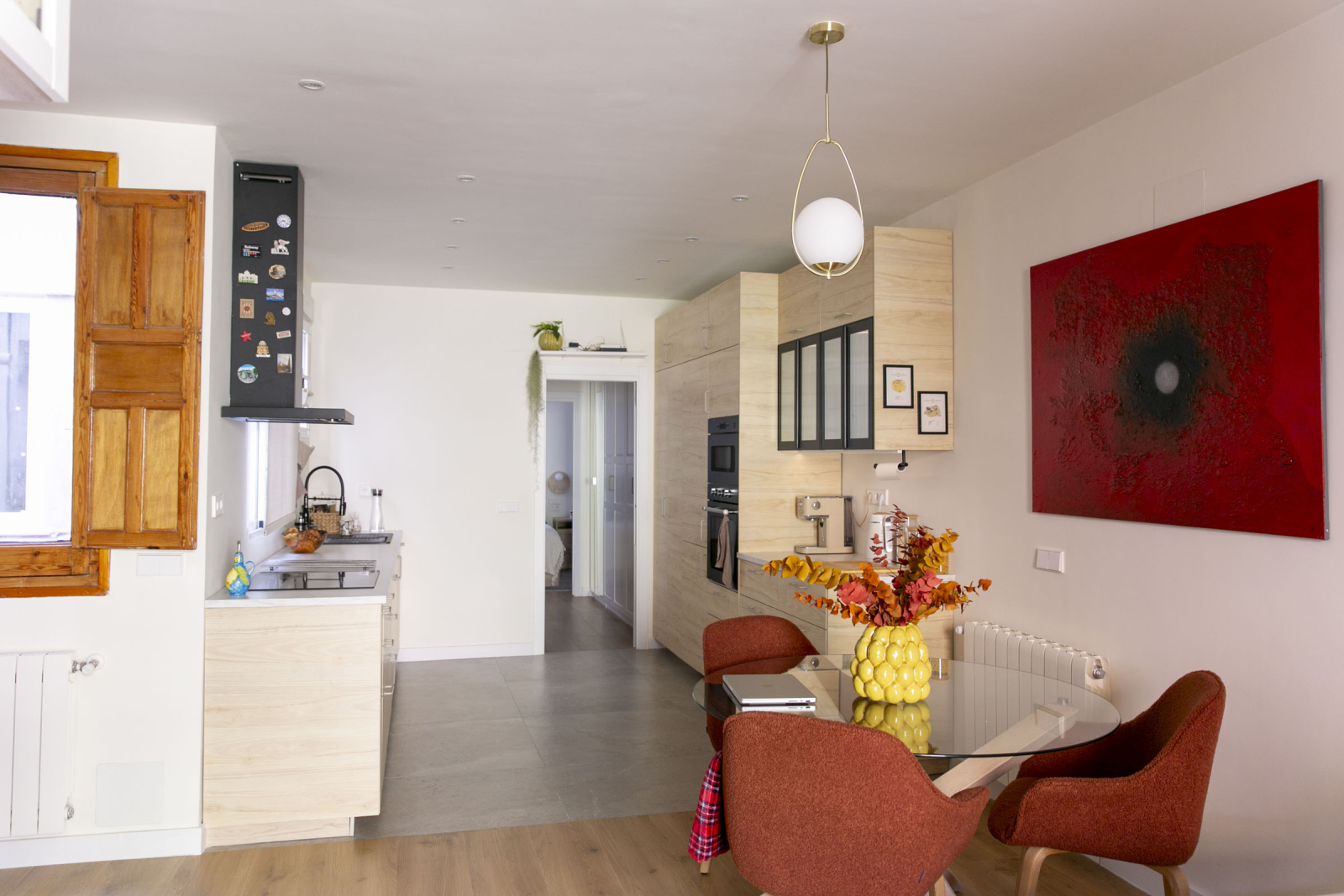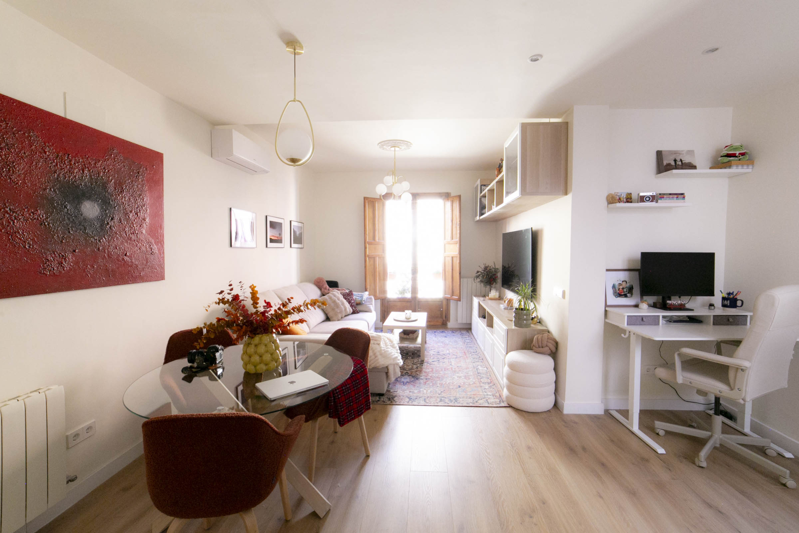 This bright, spacious one-bedroom apartment was fully renovated in 2024 and is located on the third floor of a charming building (with elevator access). The apartment is on a quiet street, which you can enjoy from the large balcony. Inside, you’ll find everything you need for both comfort and convenience. The open-plan living and dining area includes a generous dining table, a cozy sofa with a chaise longue, A/C, and a 65-inch 4K smart TV. The kitchen is fully equipped for long stays, featuring a washer-dryer, microwave, oven, dishwasher, induction cooktop with four burners, fridge, coffee maker, and other small appliances. For those working remotely, there's a dedicated workspace with a height-adjustable desk, a monitor, and an ergonomic office chair. High-speed internet (300 Mbps) is available throughout, so you can work with ease, we work from home ourselves and understand how important this is. The bedroom offers a quality king-sized bed, A/C, and a ceiling fan for extra comfort during the warmer months. The entire apartment is also equipped with a high-efficiency heating system for colder days.