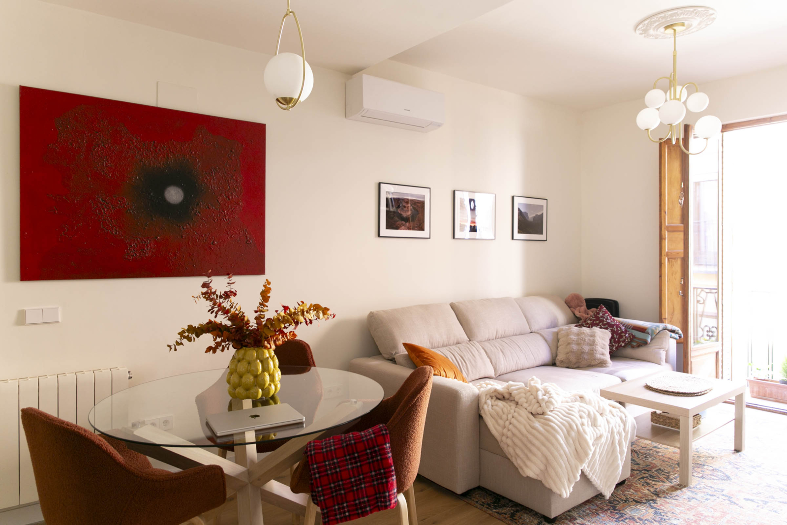 The La Latina neighborhood is one of the most authentic and safe areas in Madrid, being the perfect spot to enjoy the best of Madrid while still maintaining a neighborhood vibe. You'll find a great mix of historic and iconic streets, a mix of traditional and trendy restaurants, cozy cafes, local shops, bookshops, and of course supermarkets, pharmacies, and other essentials for daily life. The apartment is 100 meters away from Mercado de la Cebada, where you can explore fresh food and local specialties. Plus, there's a large sports center right outside, with a gym, semi-olympic pool, and activities like pilates, yoga, and cycling. One of our favorite highlights is that you can walk everywhere in the city center — Plaza Mayor and Puerta del Sol are about 10 minutes away while being well connected to the rest of the city, with La Latina metro station just a minute away.
