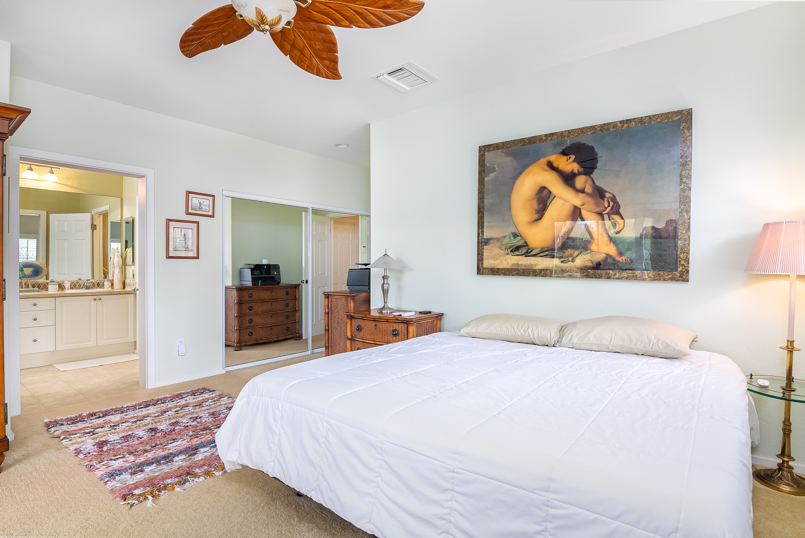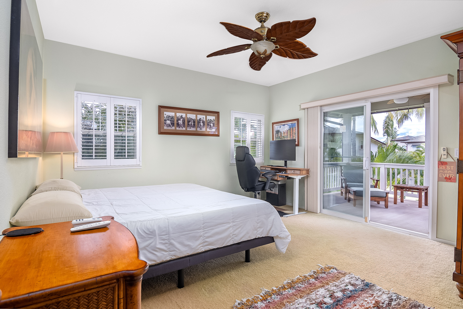 The large master suite has an ensuite bathroom, a closet with mirrors, and access to the second upstairs lanai.