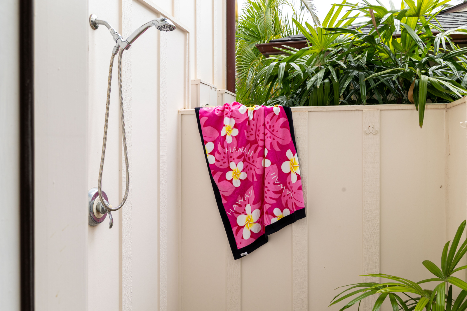 This villa has 3 bedrooms, two full bathrooms, one-half bath, and a rare outdoor shower to wash the sand away. Spacious two-car garage with one parking spot available. We provide beach chairs, floaties, beach towels, coolers, sand toys, and a wagon to pack it all up for your beach or pool day.
