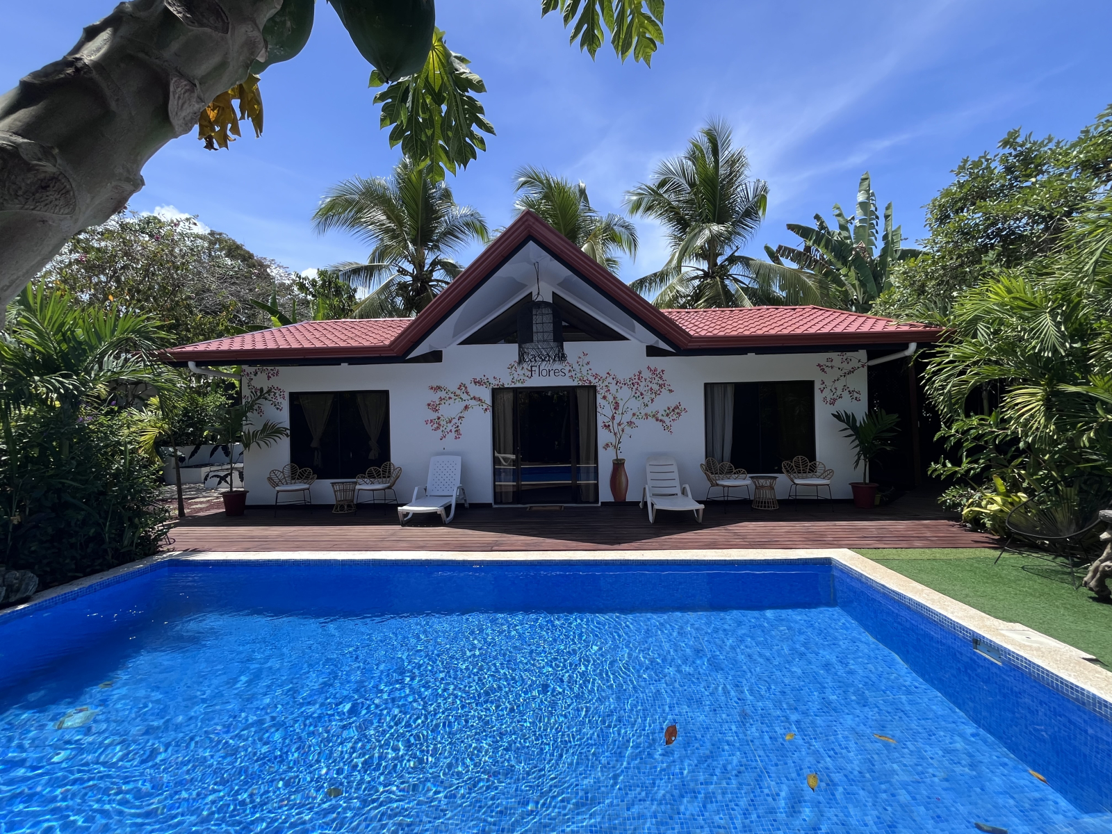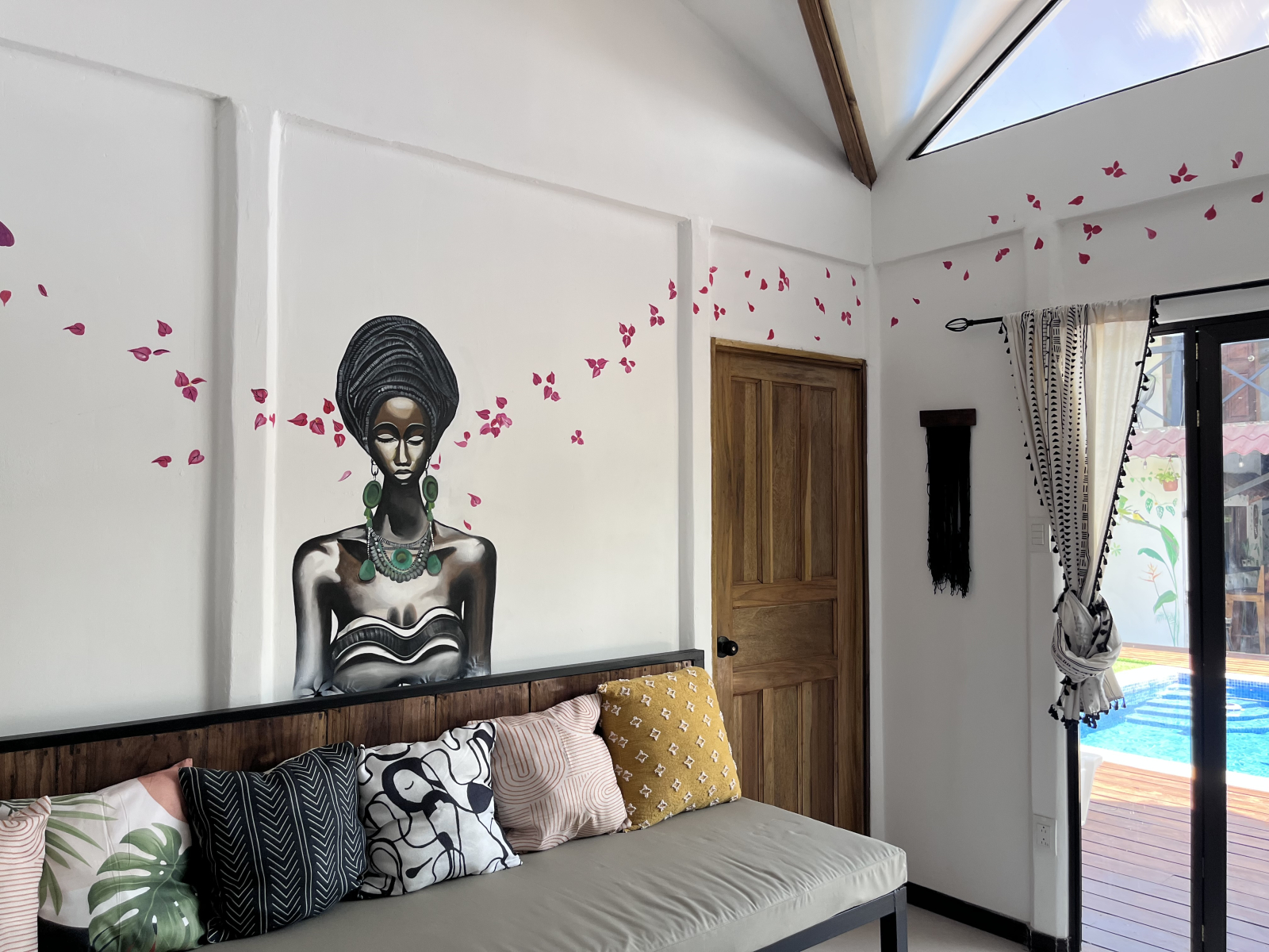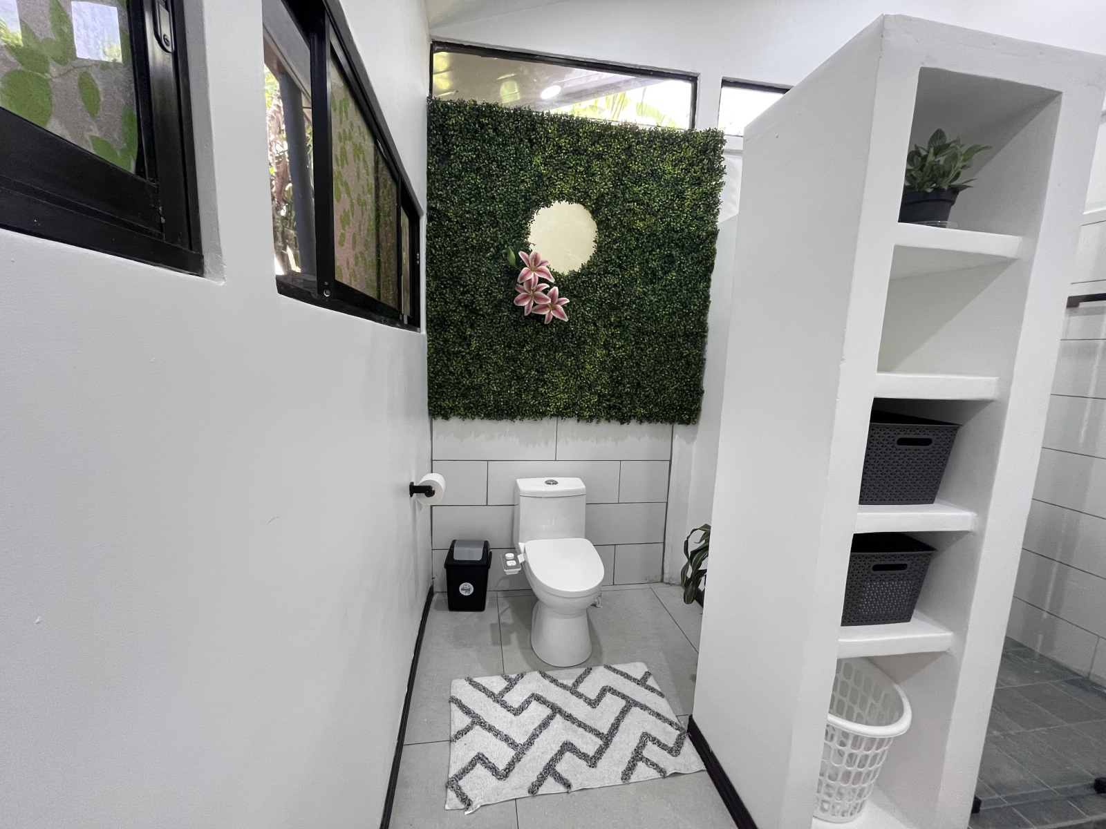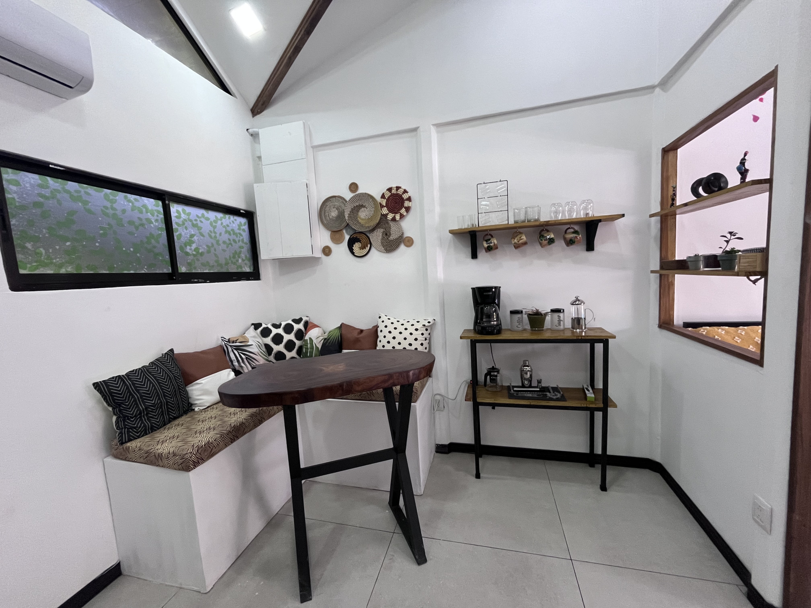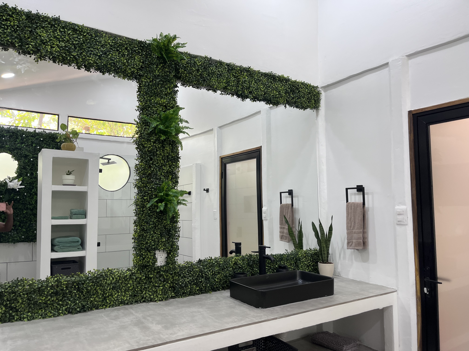 Modern two bedroom casita with en suite bathrooms, living room, full kitchen, shared pool, bbq/firepit, WiFi, hot water, AC, use of free bikes, yoga shala, and walking distance to the beach and town.