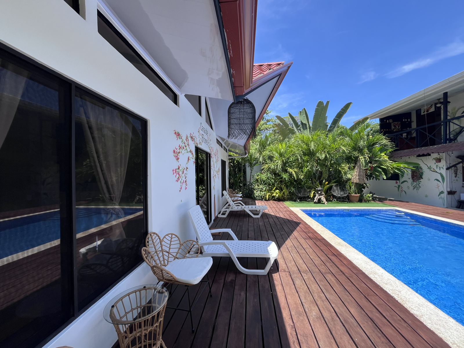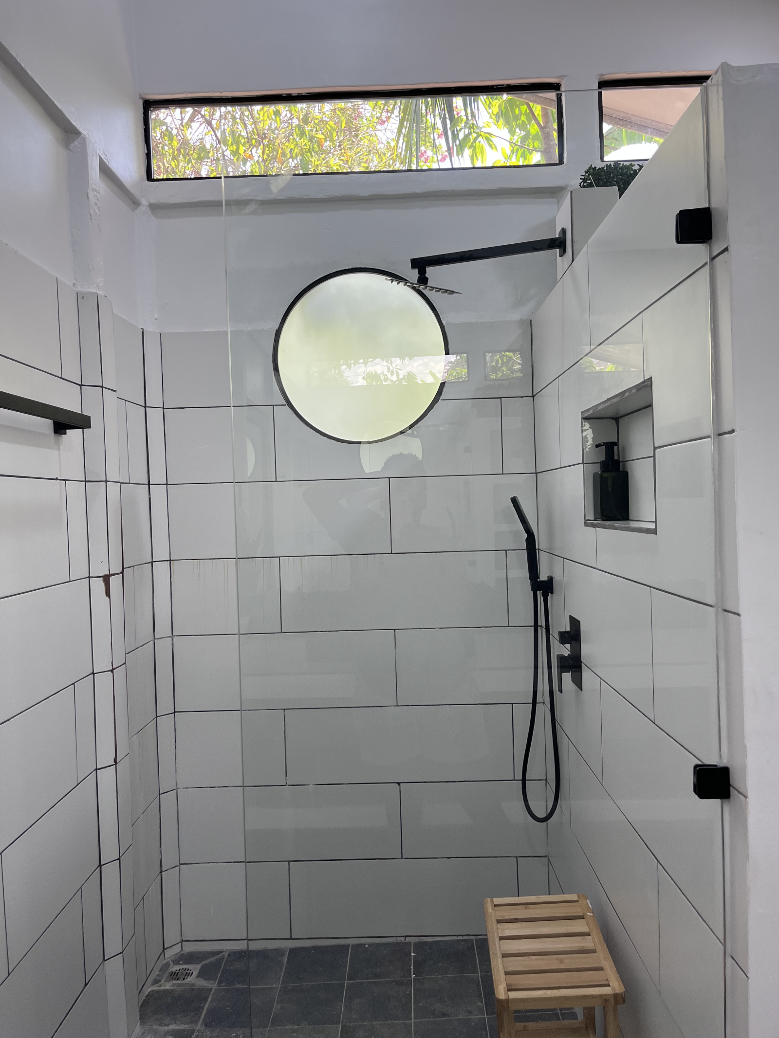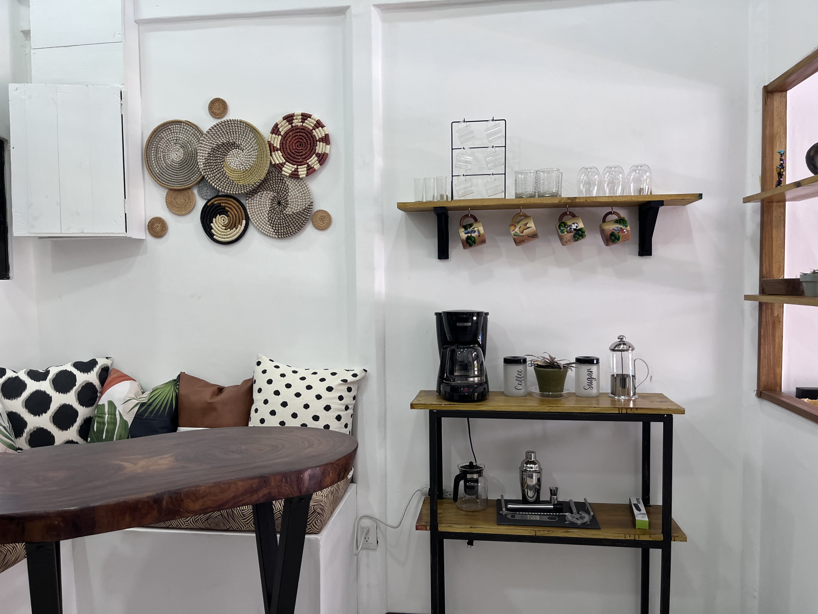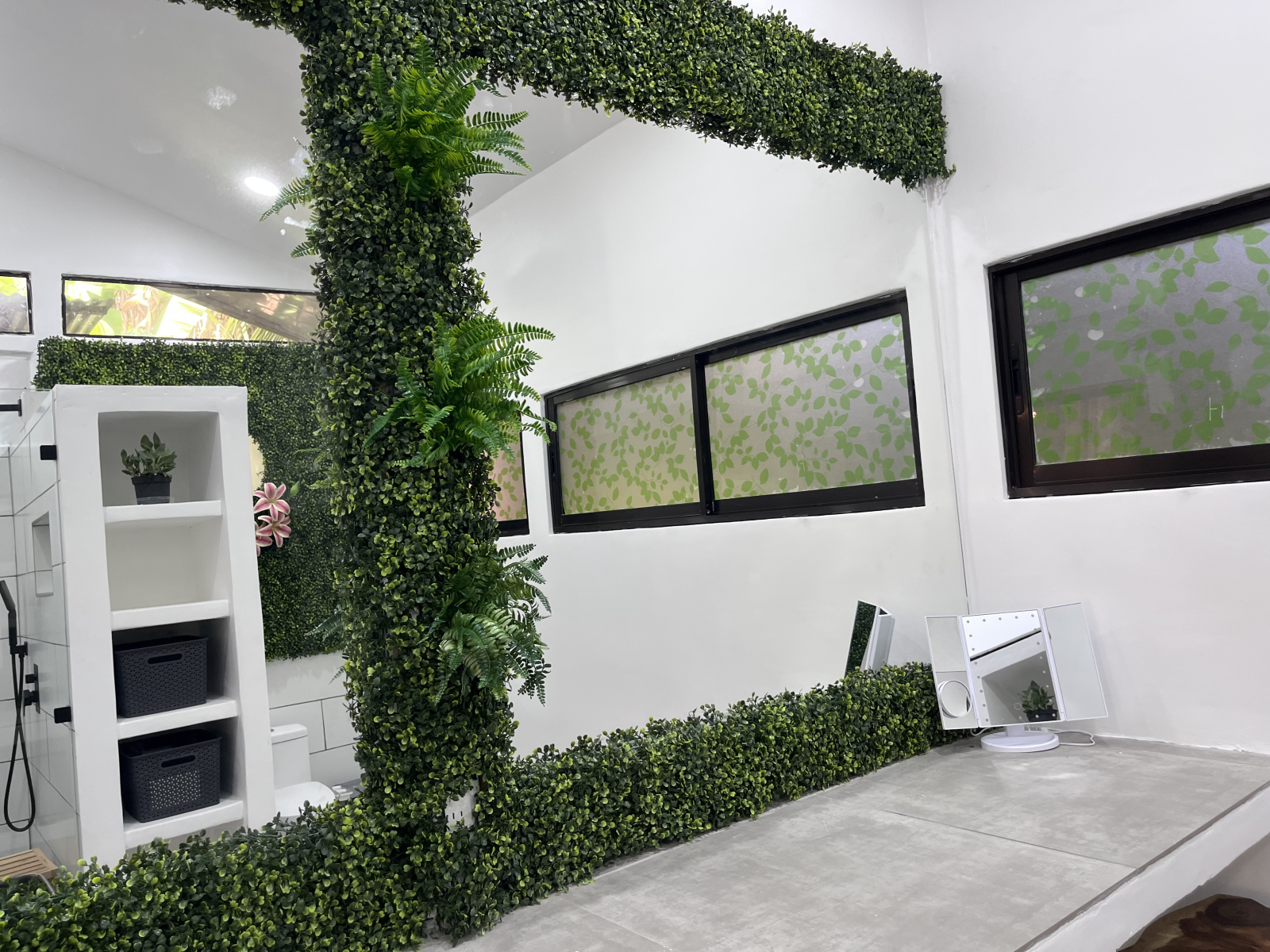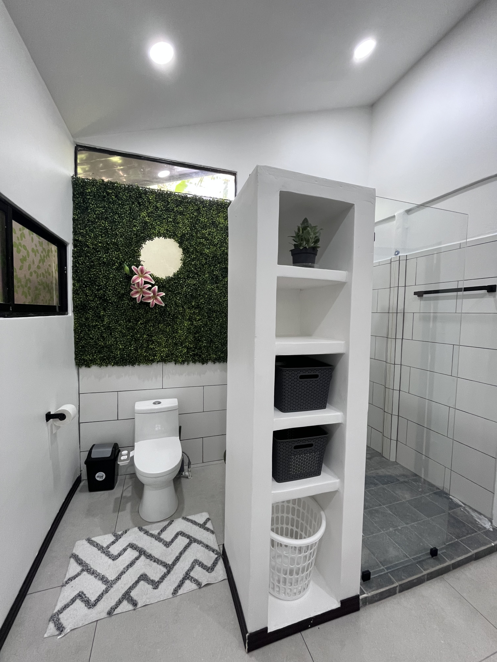 Modern two bedroom casita with en suite bathrooms, living room, full kitchen, shared pool, bbq/firepit, WiFi, hot water, AC, use of free bikes, yoga shala, and walking distance to the beach and town.