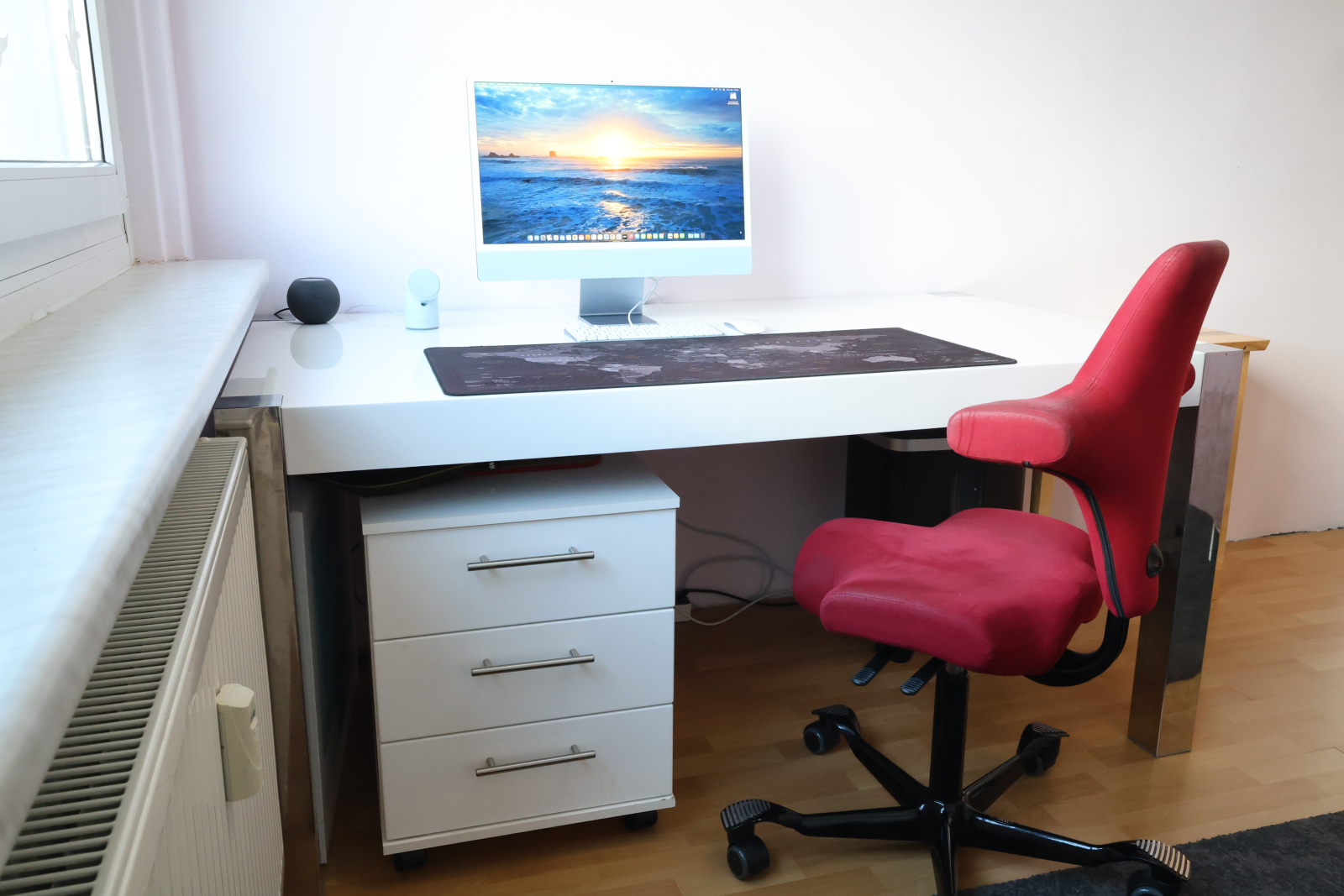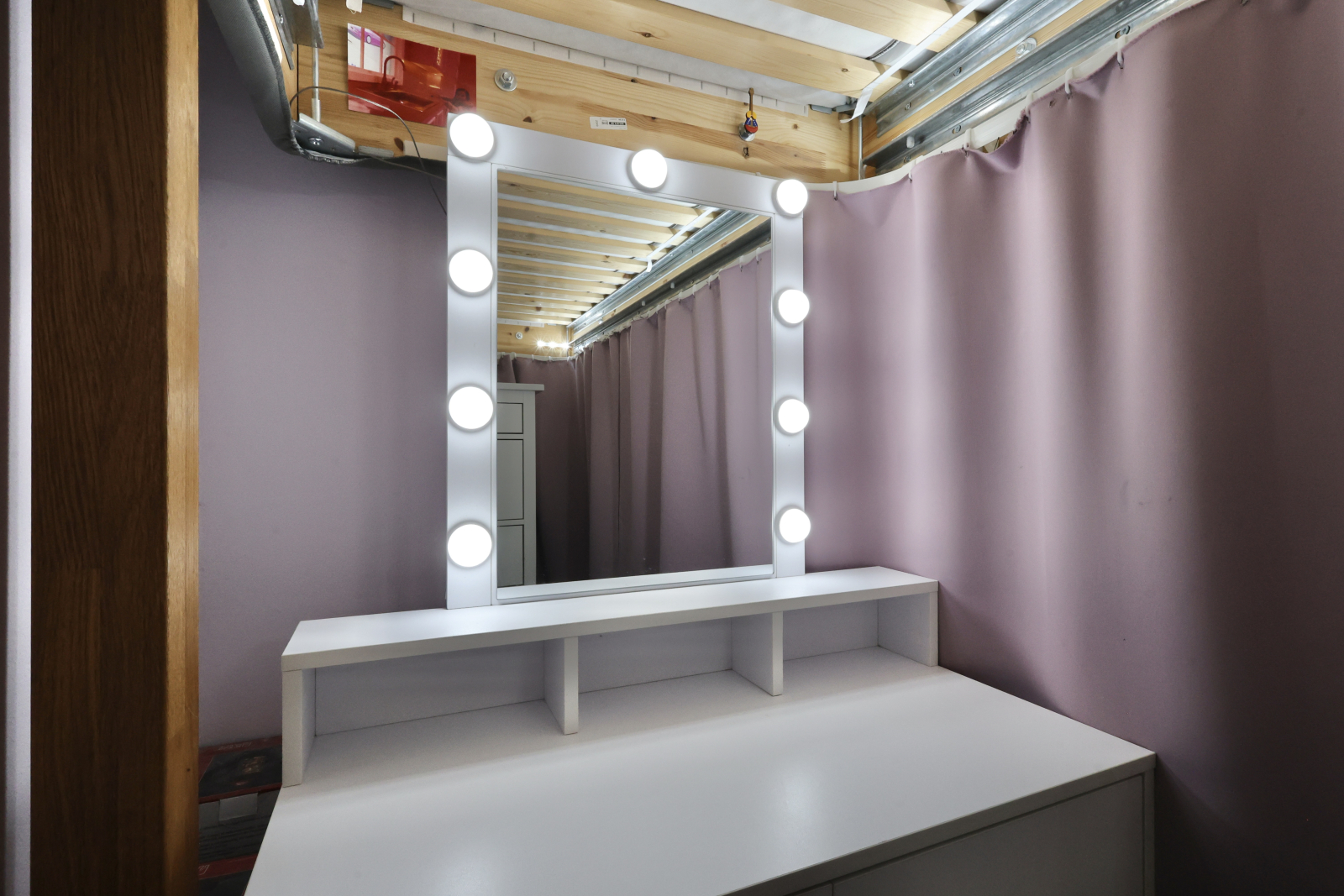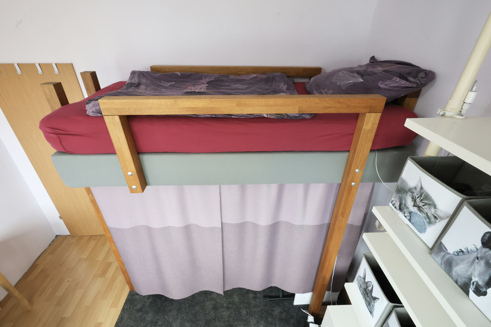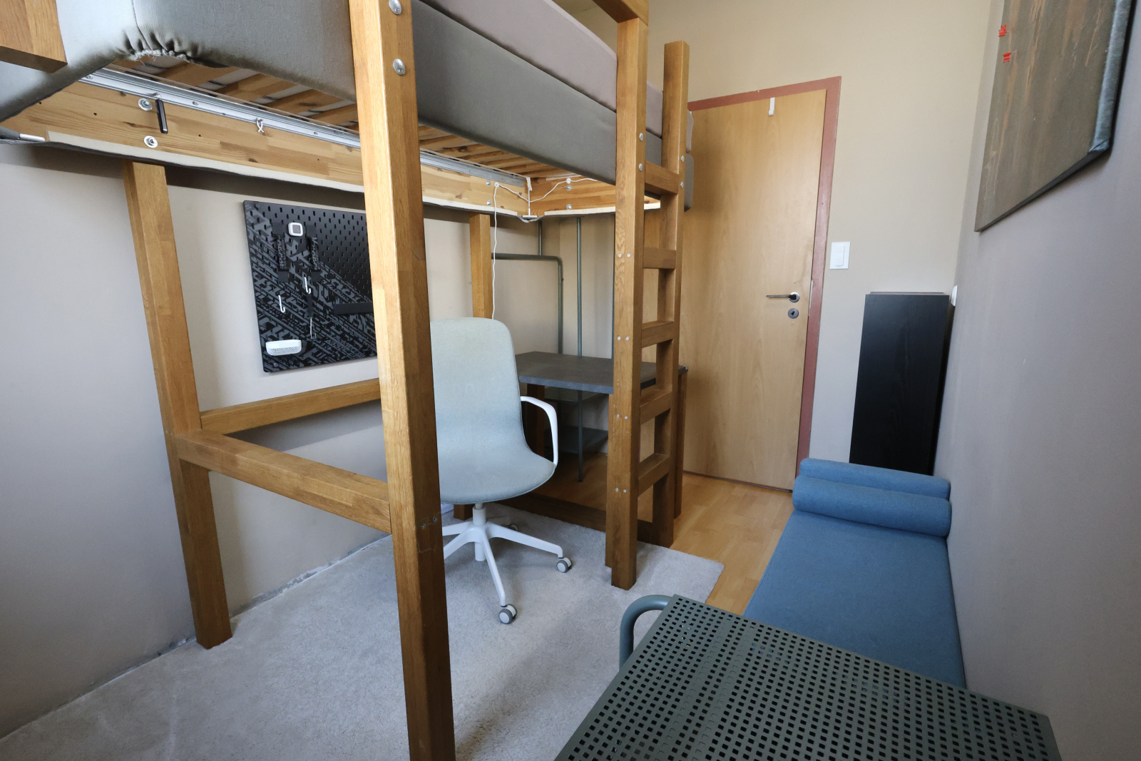 • Another oak high sleeper setup, complete with vanity corner, huge desk (90x160cm), and an iMac—plus, yeah, that killer TV Tower view again.