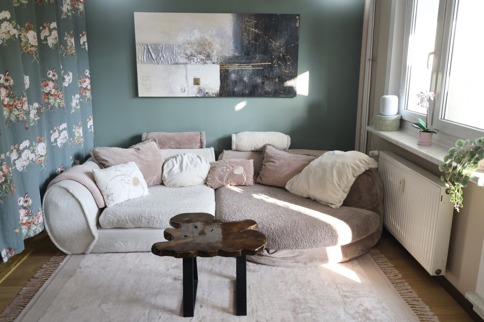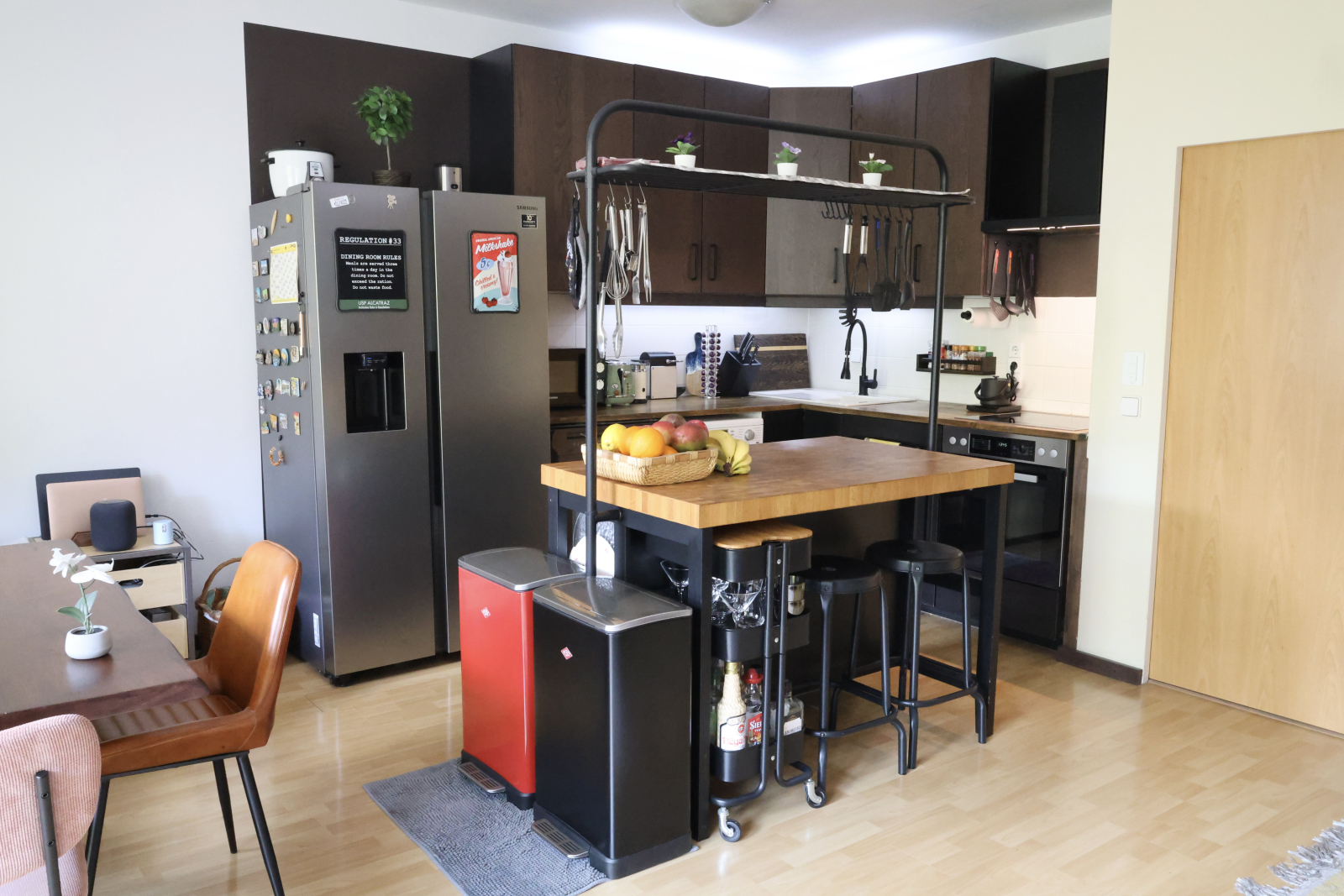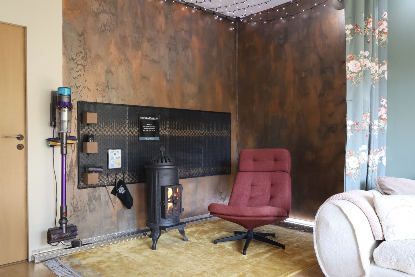 Then there’s the heart of the home: our open-plan kitchen and living space, complete with an ethanol fireplace for instant winter coziness and a projector for movie nights in. The kitchen’s kitted out with Miele, Samsung, and enough gadgets to satisfy even picky foodies.
