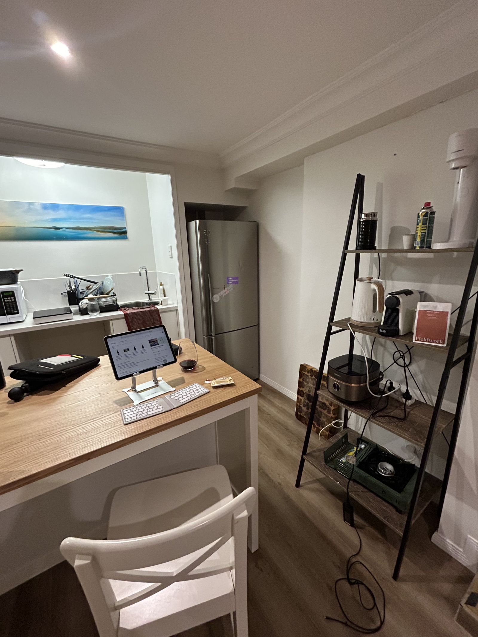 Our home is a clean, minimalist space with a soft white palette that feels calm and airy. One of our favourite features is the terrace—it’s perfect for slow mornings or unwinding in the evening.