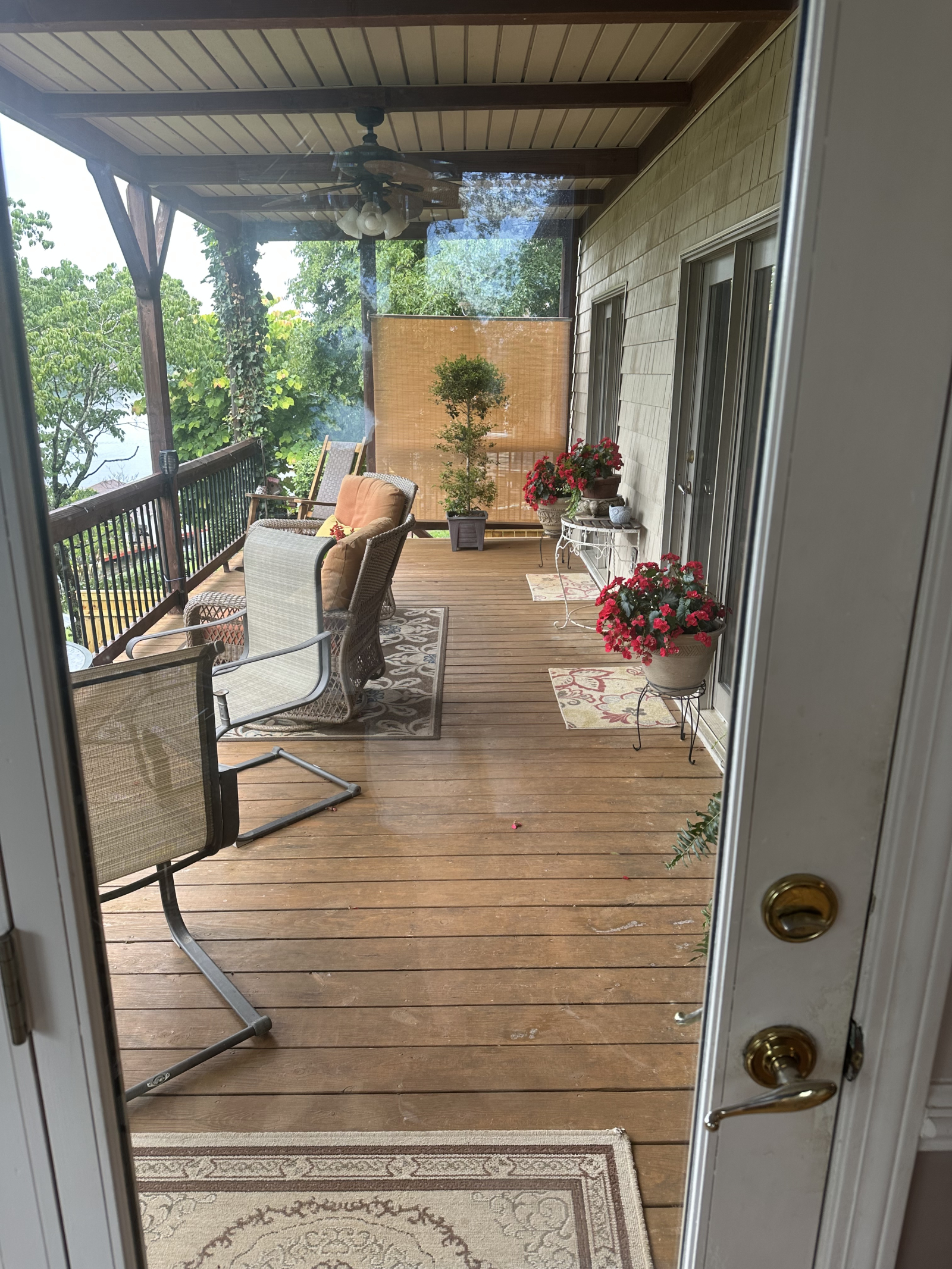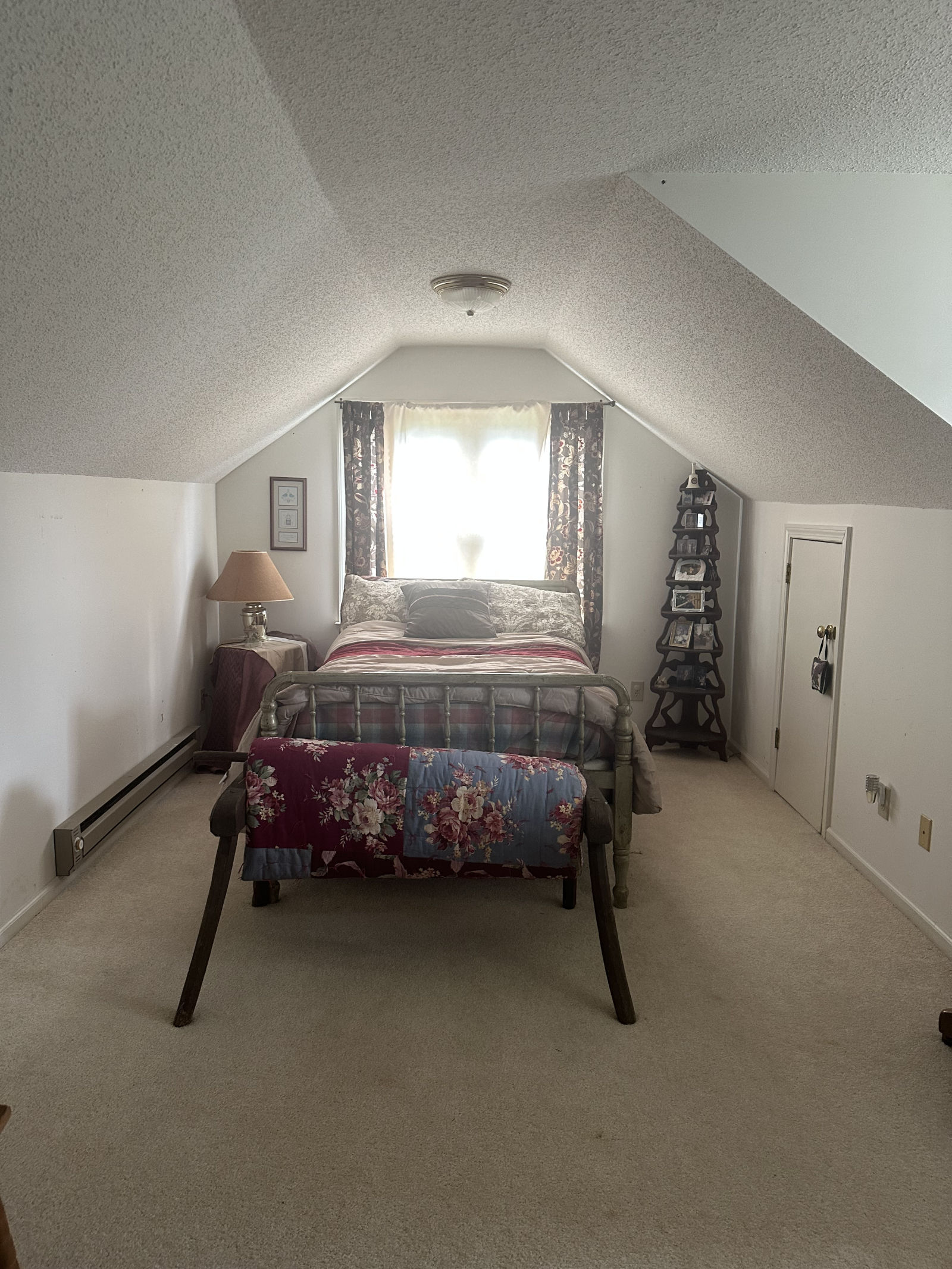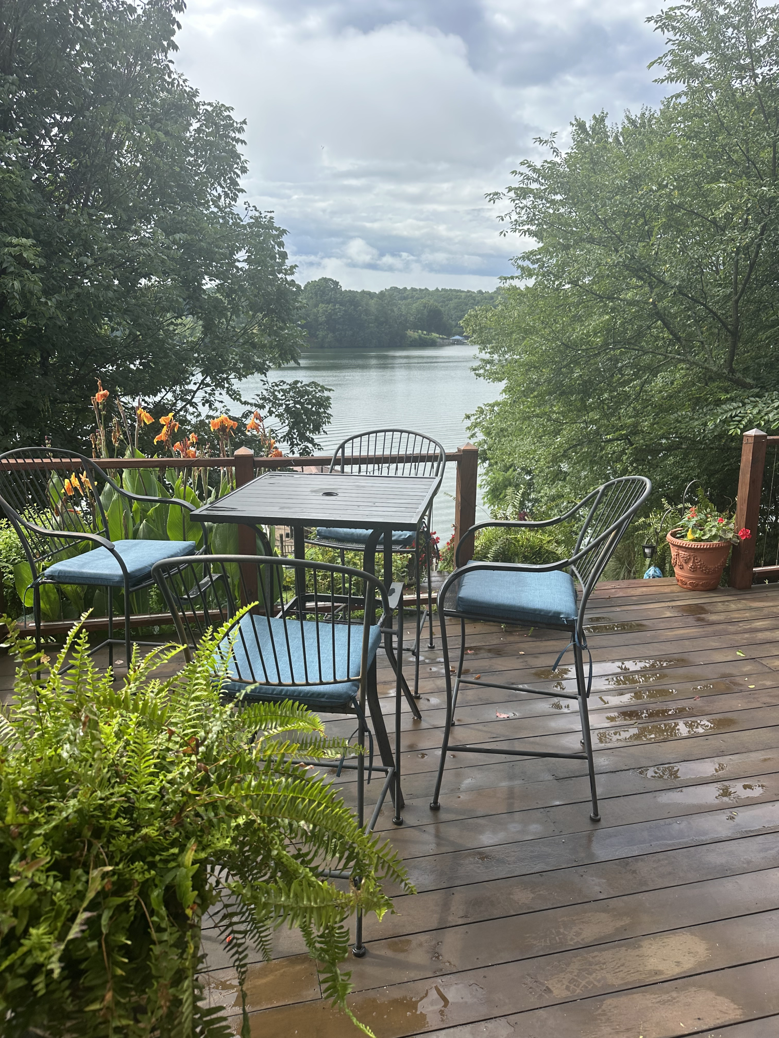 Three bedrooms upstairs (king, queen, full) with an additional full bed in the basement along with an additional twin bed in the room over the garage. Three full bathrooms with an additional half bath. Two large decks overlooking the lake.