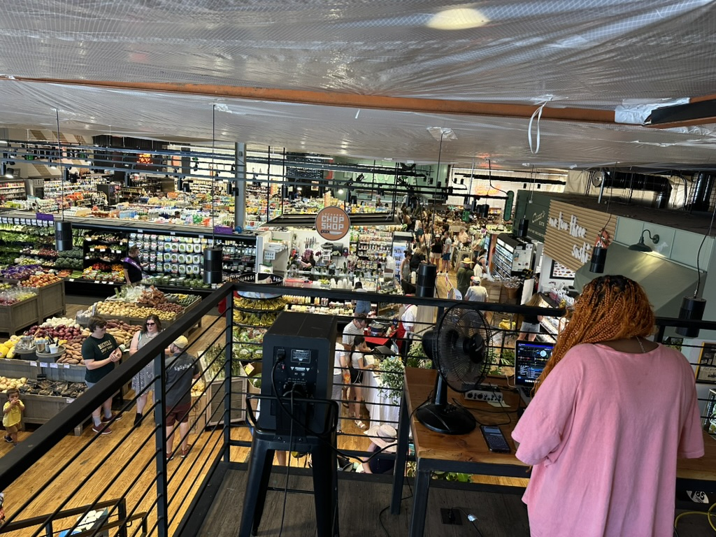 There's an independent grocery store 1 block away that has a bar, live music on the weekends, as well as take-out food hall with several restaurants (pizza, sushi, etc)