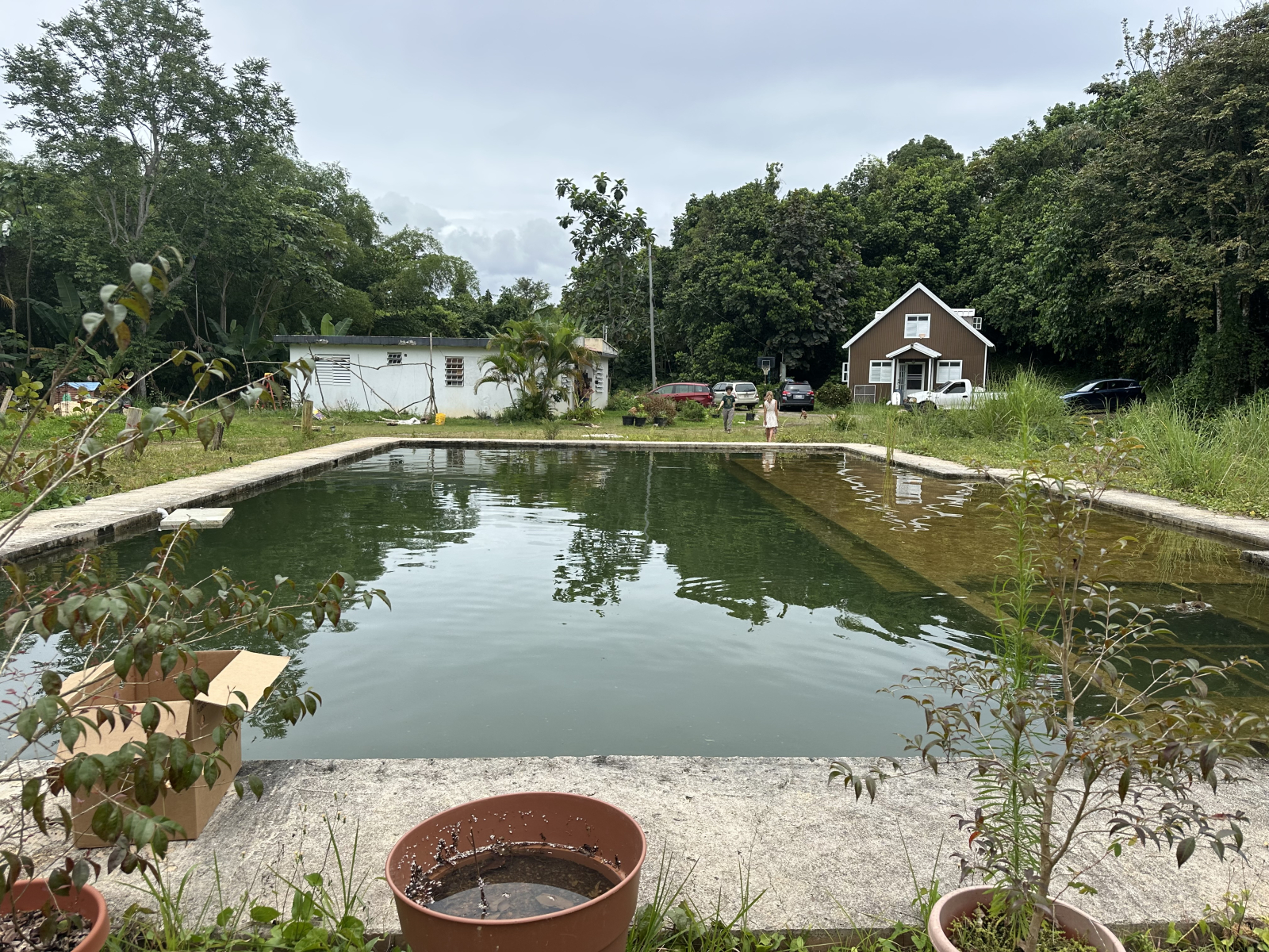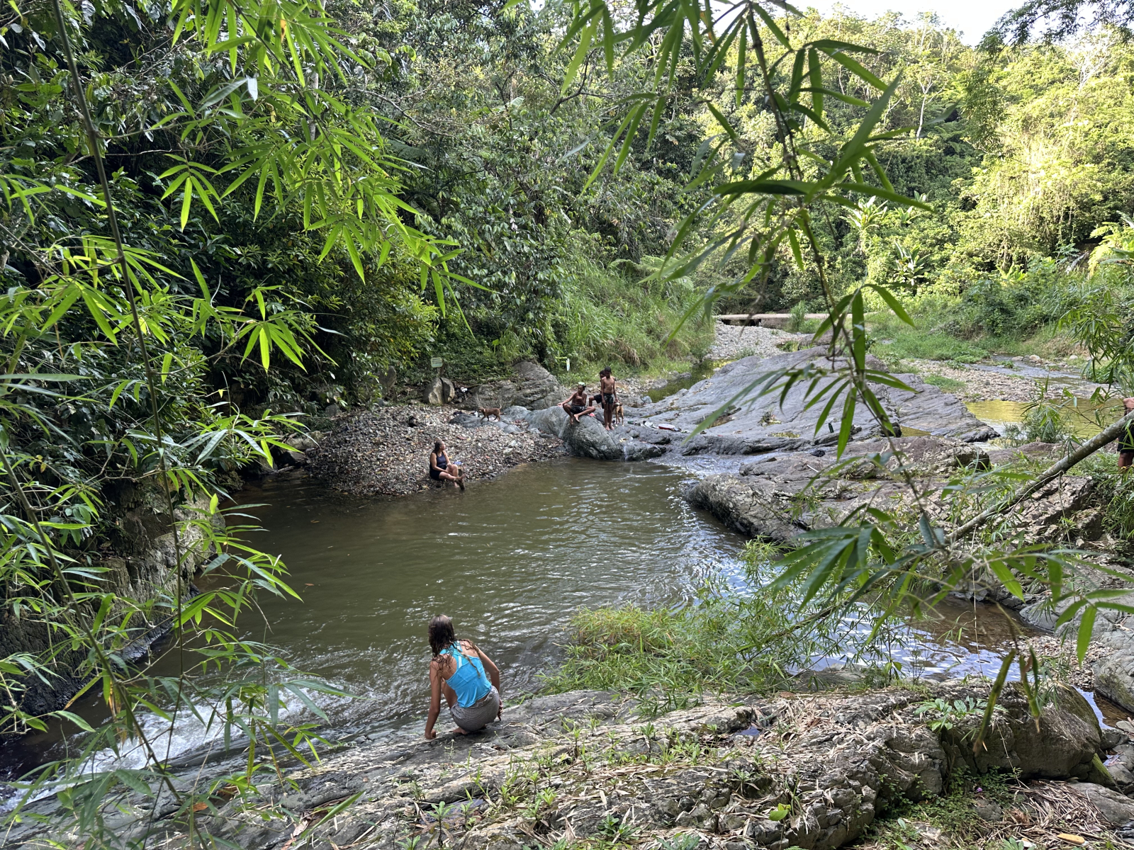 We’re about an hour from the beach, up in the cooler hills where rivers meander through the land. One of our favorite places is a sweet little swimming hole just a short walk or drive away. The area is quiet, peaceful, and alive with nature. At night, the coquis sing and bullfrogs serenade us — a beautiful soundscape that gently settles you into the evening.