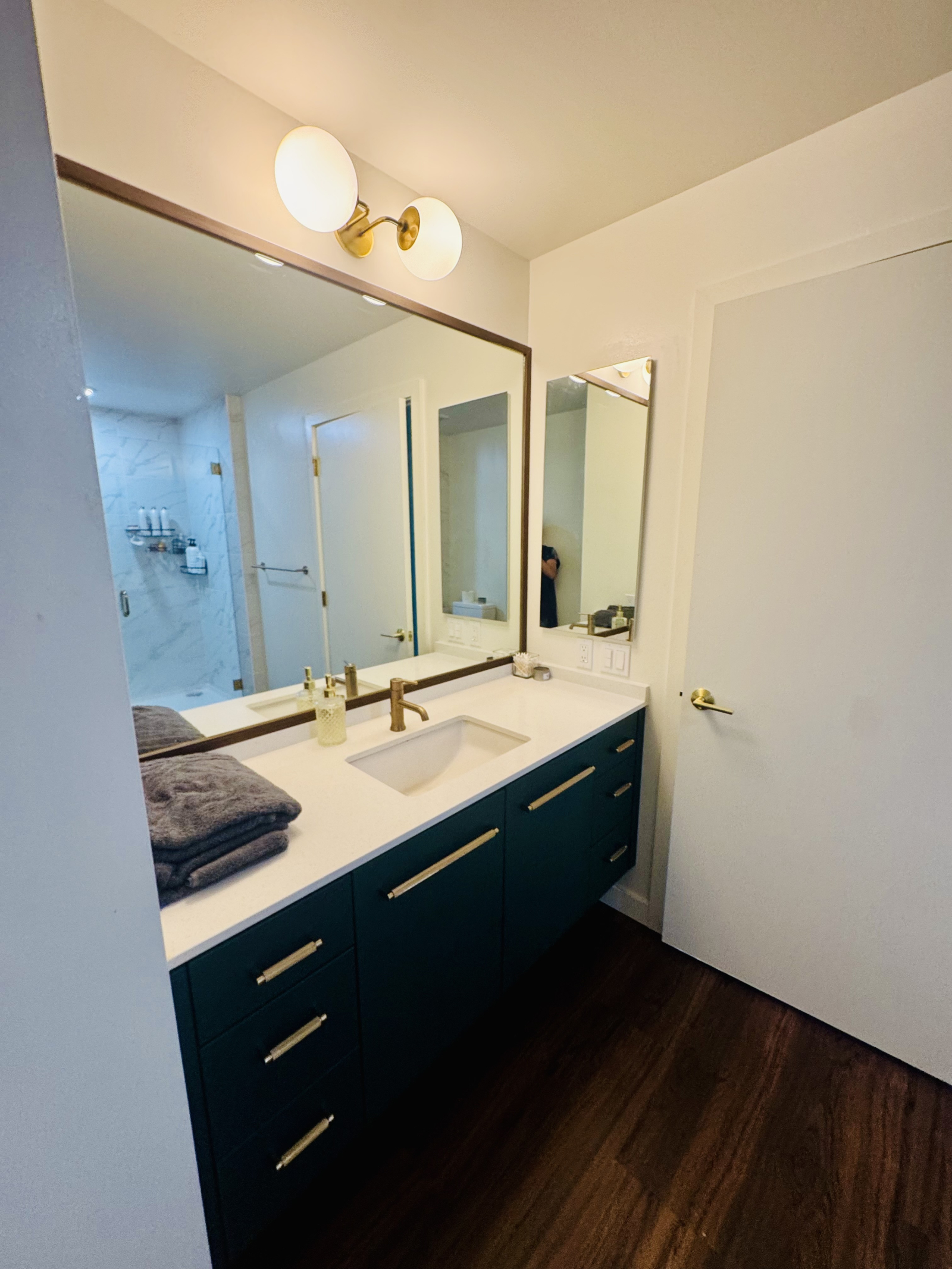We had a fantastic stay at Jen’s apartment. The amenities were amazing and we utilized all of them. The gym, sauna, jacuzzi, cold plunge, kombucha and cold brew coffee as well as the lovely patio areas. I especially enjoyed the rooftop patio overlooking the city. The kitties were so sweet and fun to play with. My boys loved them too! The complex was in a great location and we diid lots of exploring around the area. Hope to do more exchanges there.