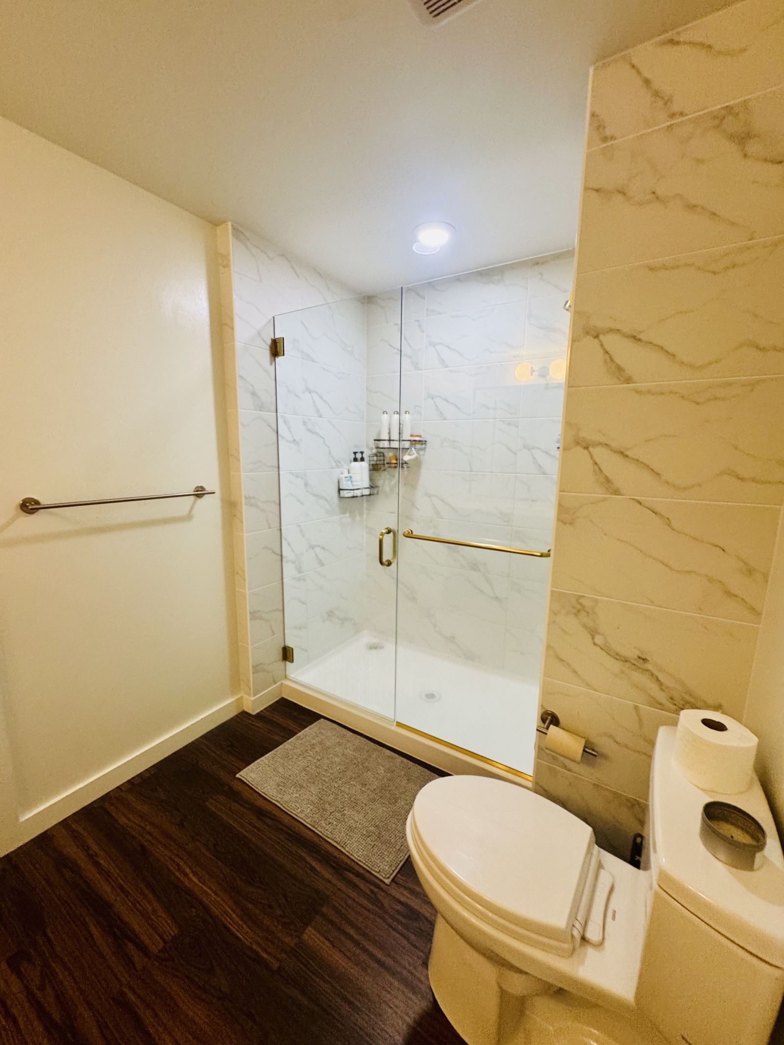 The apartment is equipped with a gym and spa (hot tub, cold plunge, steam room, sauna) directly across from our unit. The courtyard and rooftop offer wonderful places to chill and enjoy the scenery.