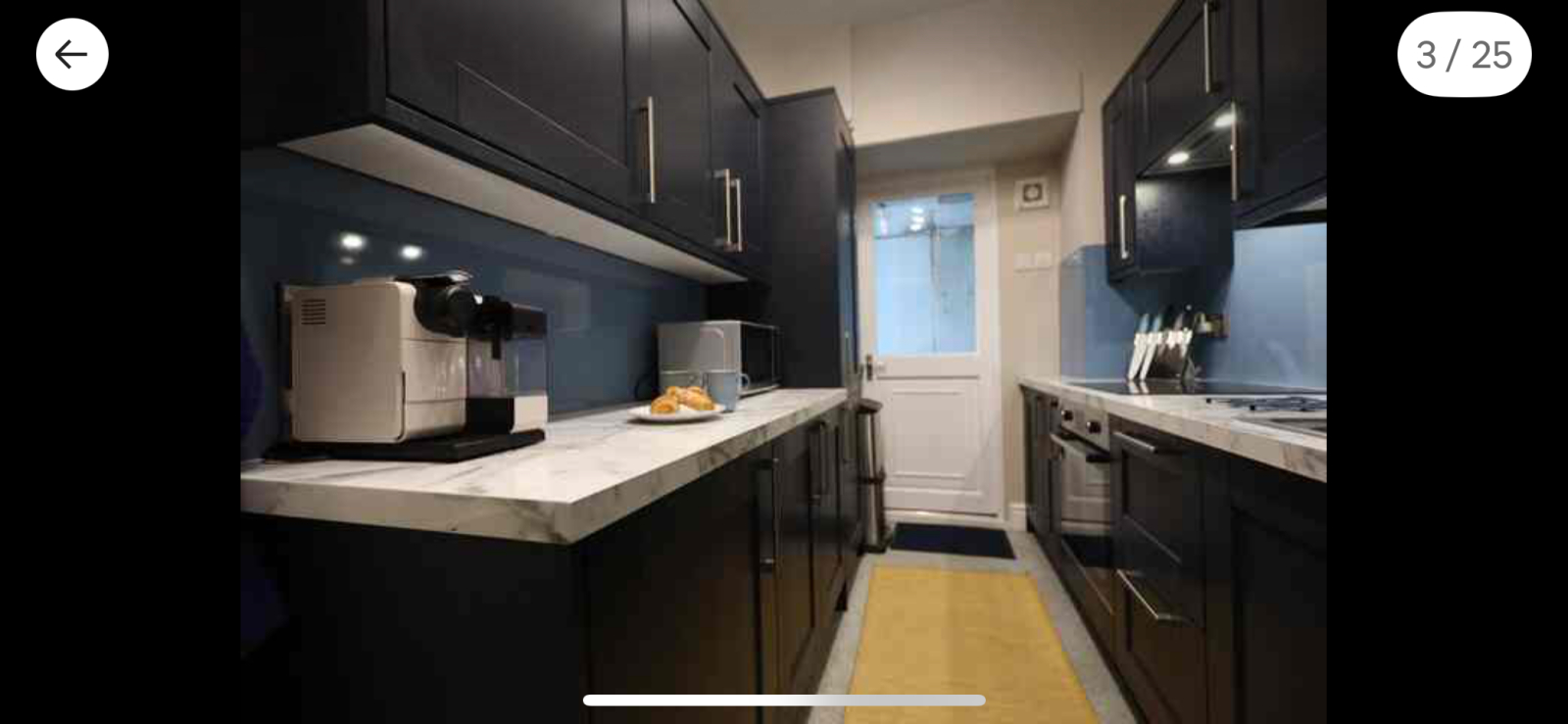 Kitchen has Nespresso coffee machine, dishwasher, fridge, microwave, full oven.