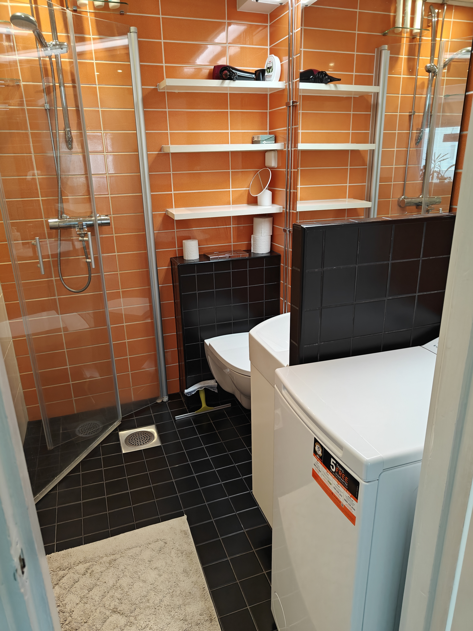 Likewise, a washing machine and drying rack are included in the apartment's amenities.