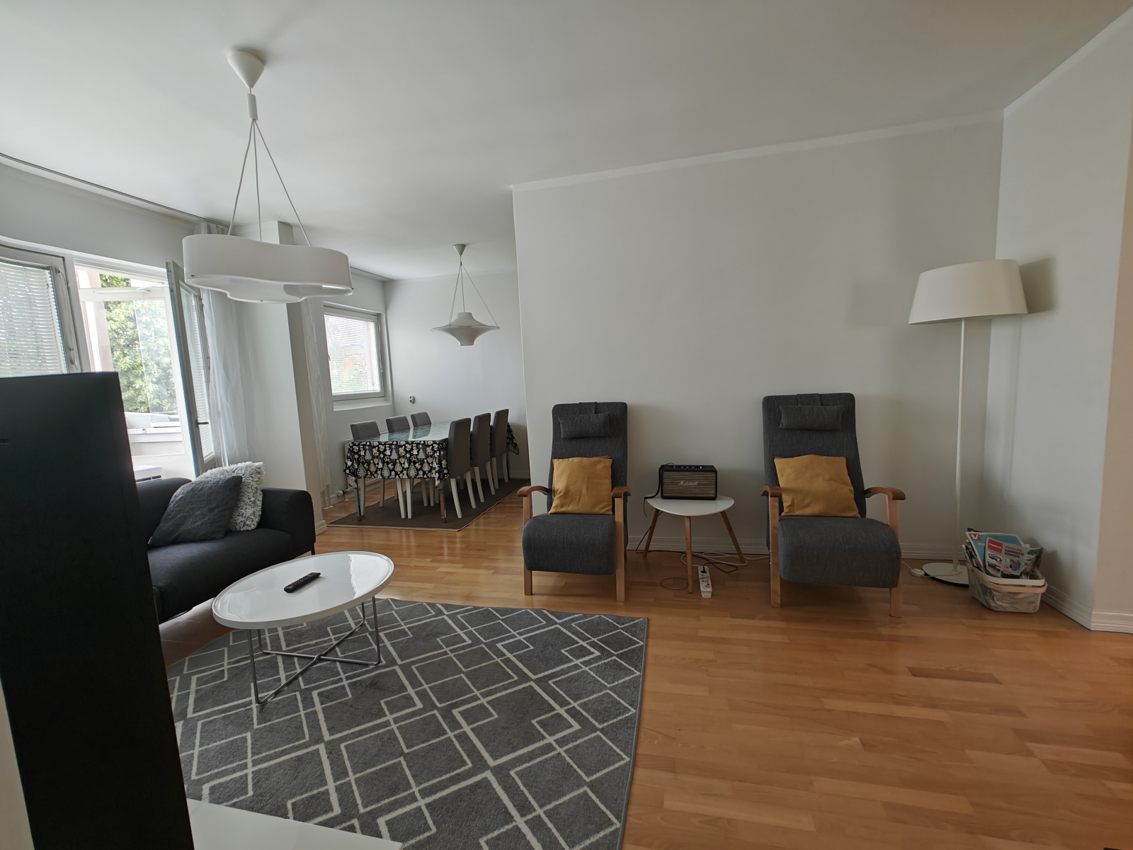 This two-bedroom, third-floor apartment is located very close to the railway station, just outside the city center.