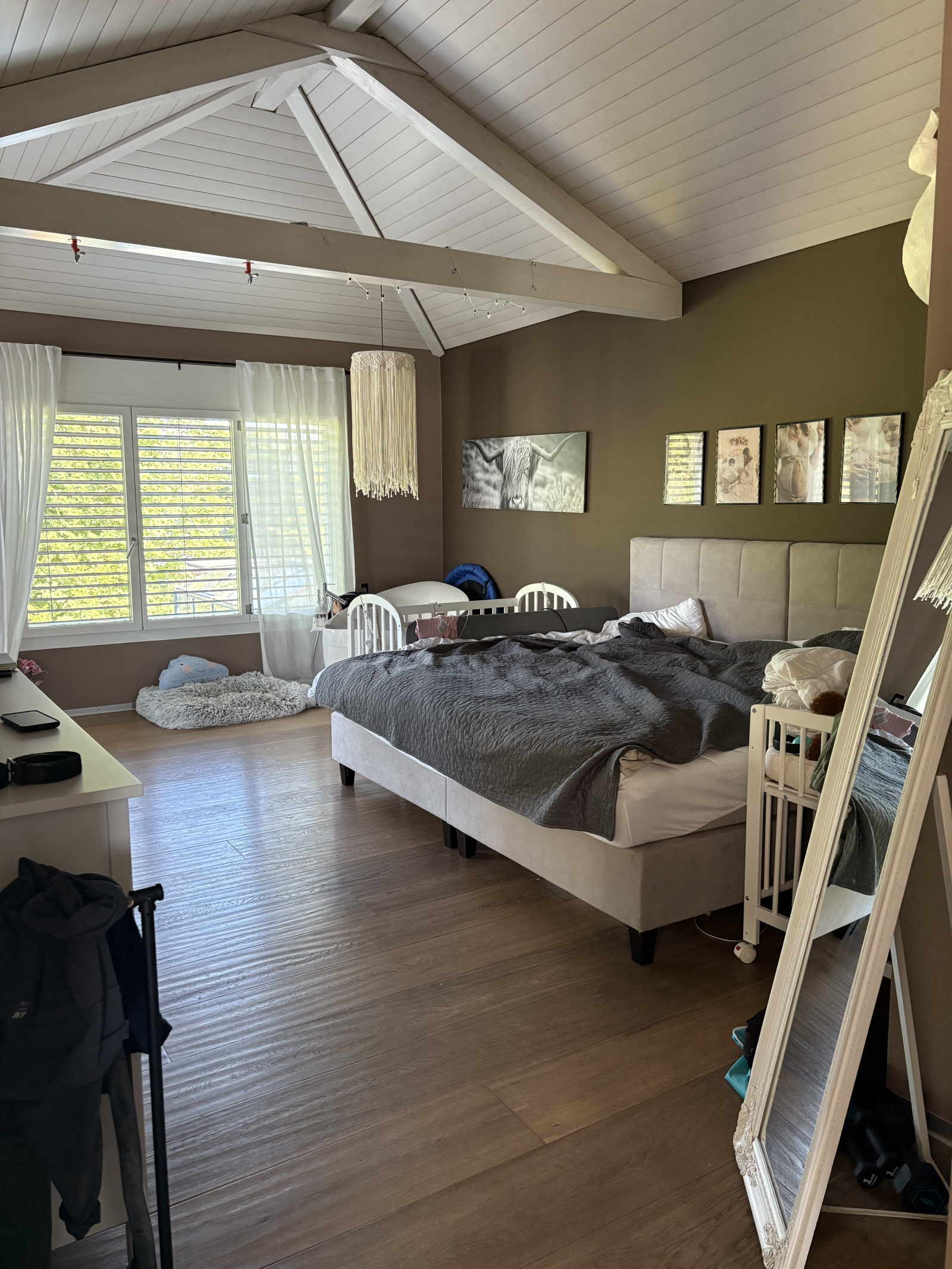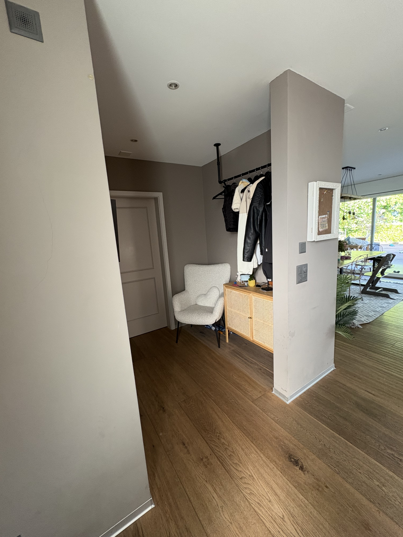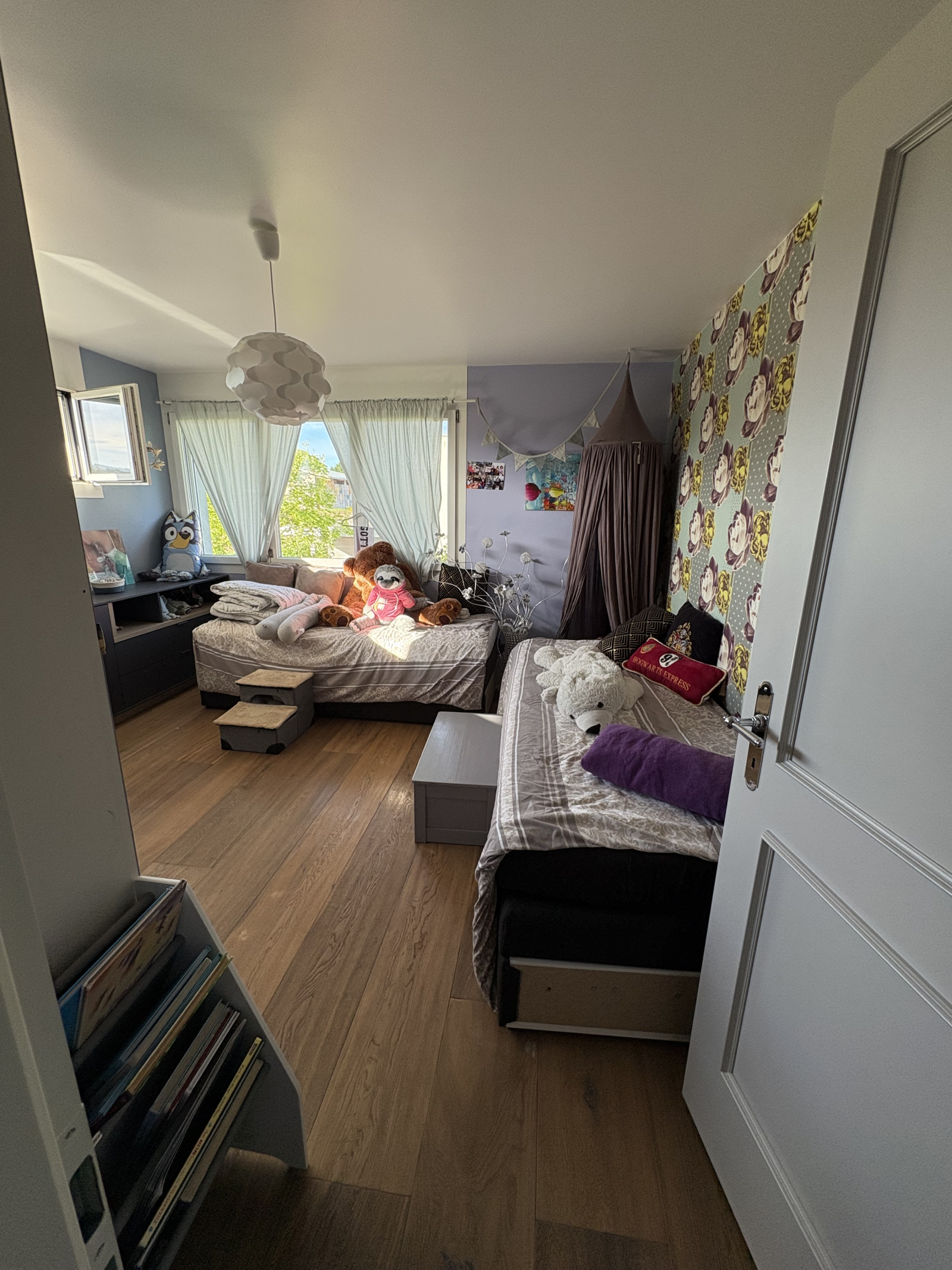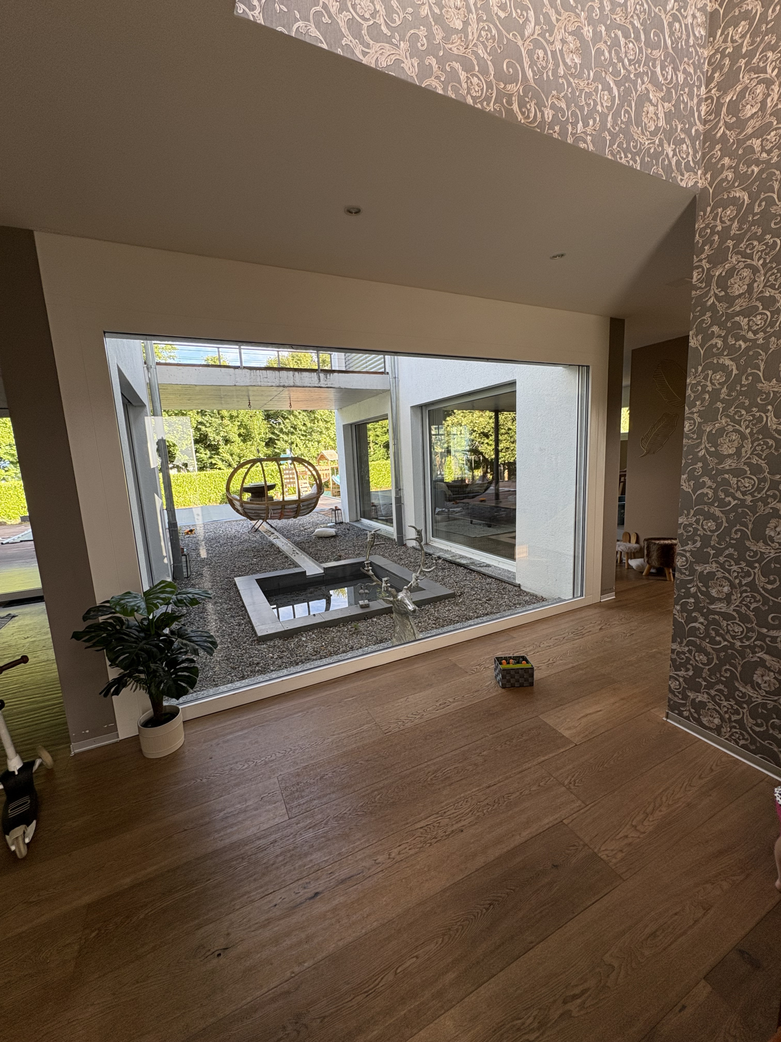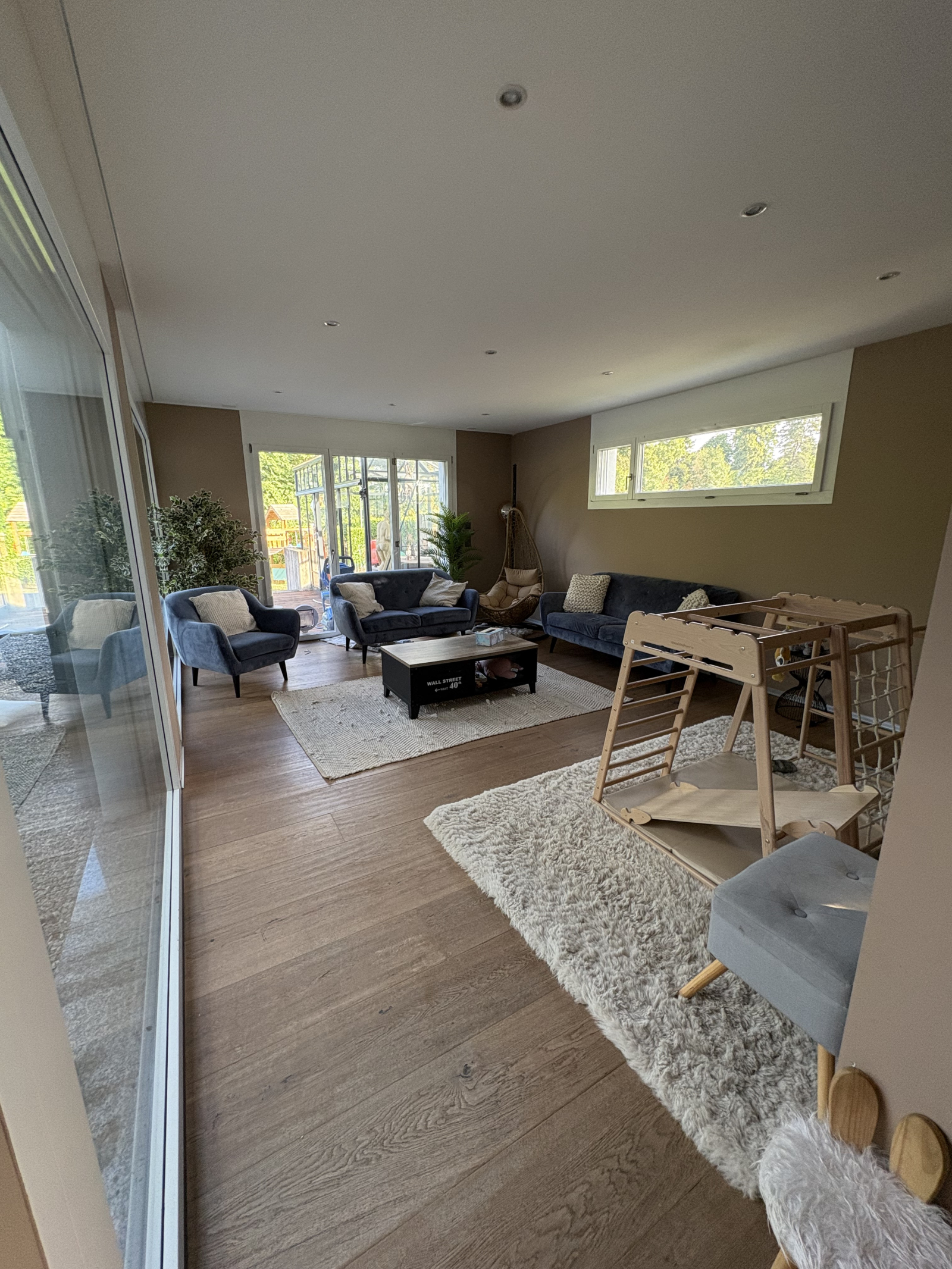 Our home is very bright due to the big windows. The entire floor (including in the bathrooms) is made of wood. It is very spacious!
