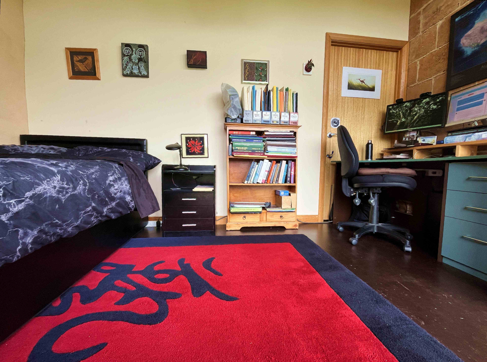 The house is very sunny and light and all on one level. We have two double bedrooms; one with a queen size bed and one with two fully adjustable king single beds side by side. All the beds in the double bedrooms have latex mattresses. We have recently converted our study into a third bedroom/study with a king single bed. The study is suitable for working from home purposes. There are two living spaces; one a kitchen, dining room and the other a separate lounge room. There is a family bathroom/laundry with a hobless shower and a bath and a separate toilet. . The north side of the house has an extensive deck with a fish pond, a BBQ and adjustable shading. The main entry has a covered porch. There are plenty of parking spaces available.