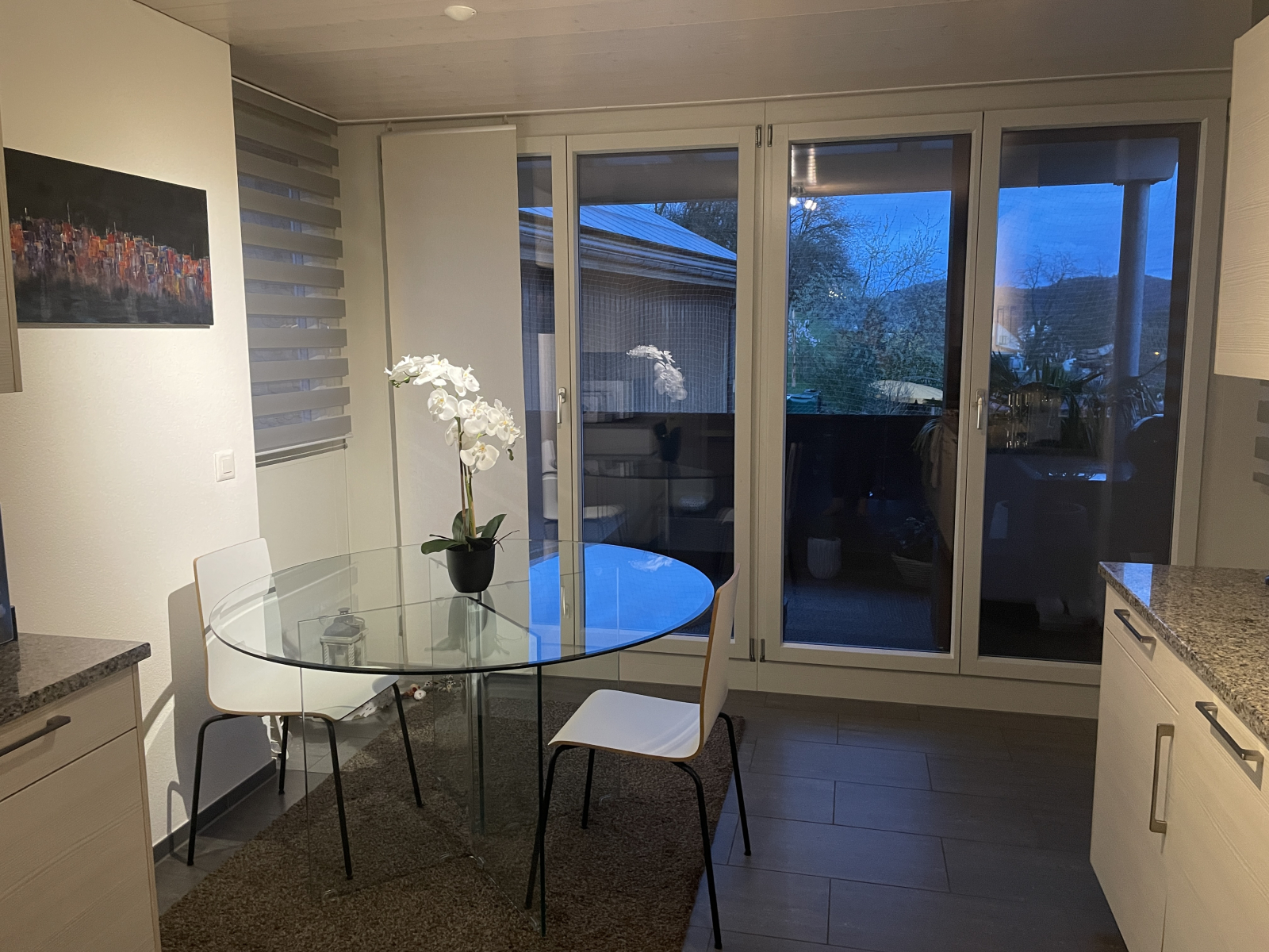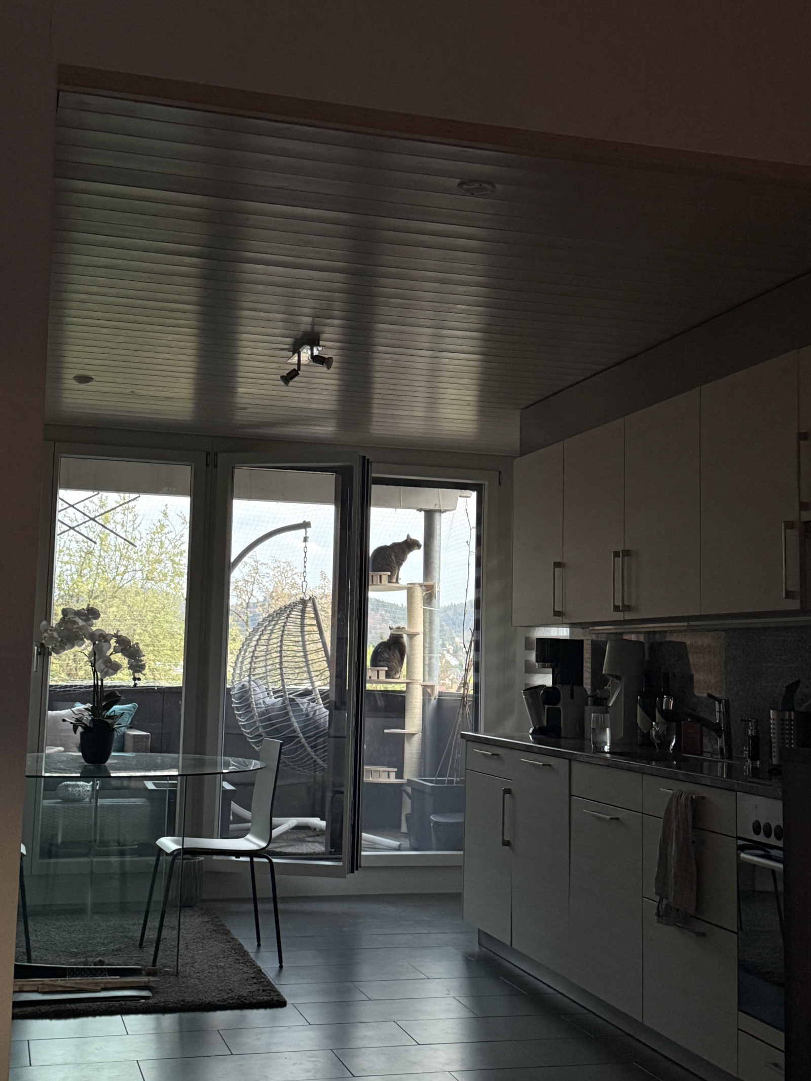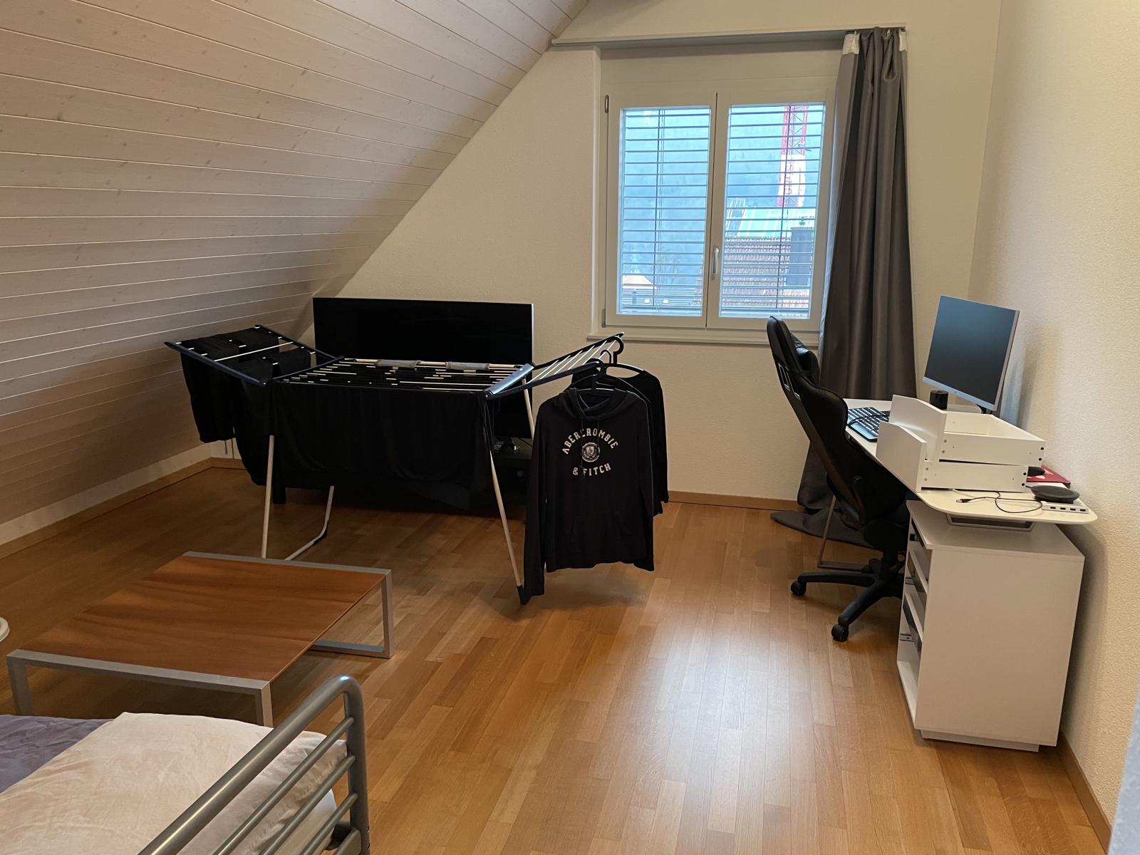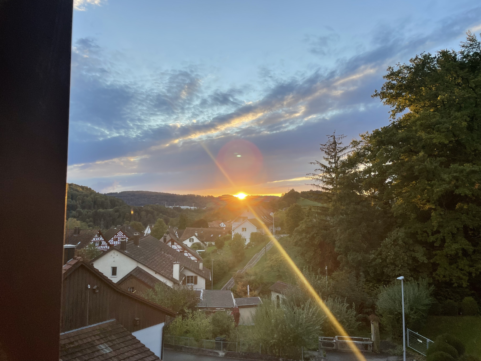 Cosy attic apartment in a sunny and quiet location on the edge of the forest, with wonderful views and bright, large rooms.
