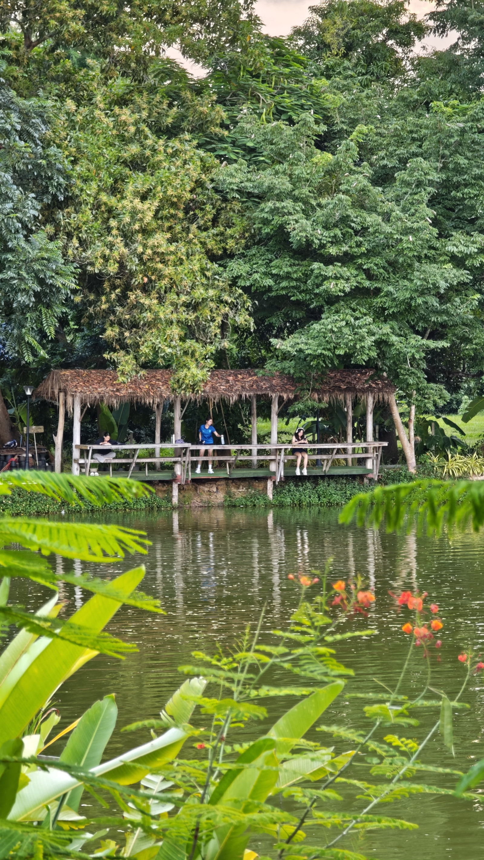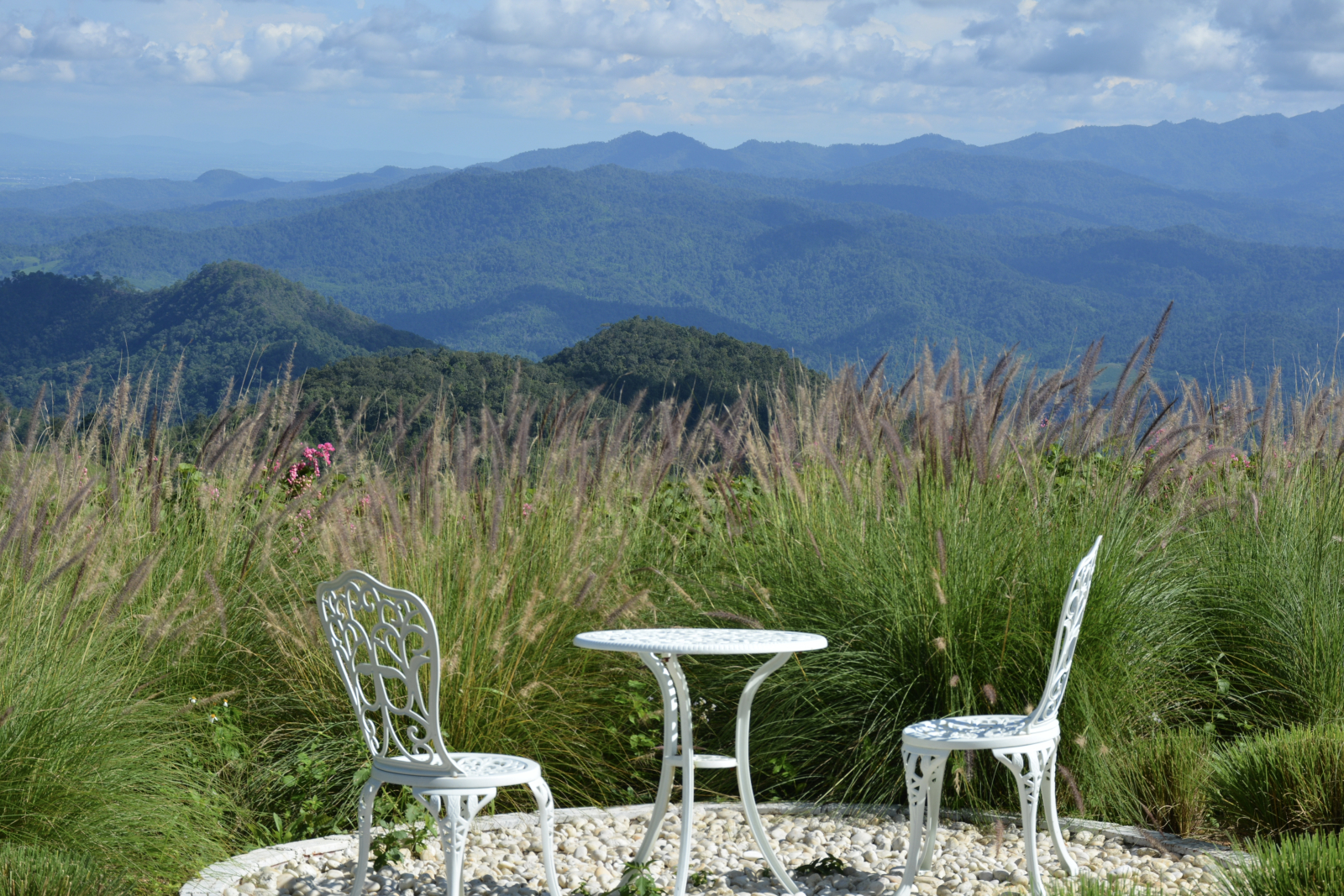 A golf resort, farms, A lake, several cafes, local rustic restaurants, market, temples all around.