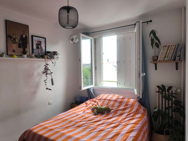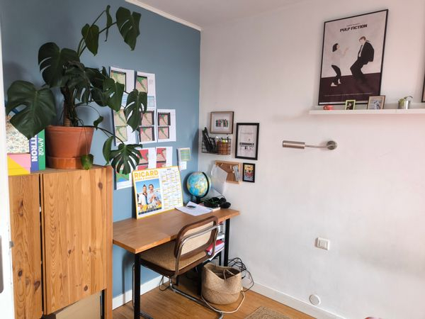 The space, although not spacious, is optimized, very well decorated and designed to be practical and pleasant. The atmosphere is artistic, vegetal and warm — a real little cocoon in the heart of the city, with everything at hand (transport, shops, culture...).
