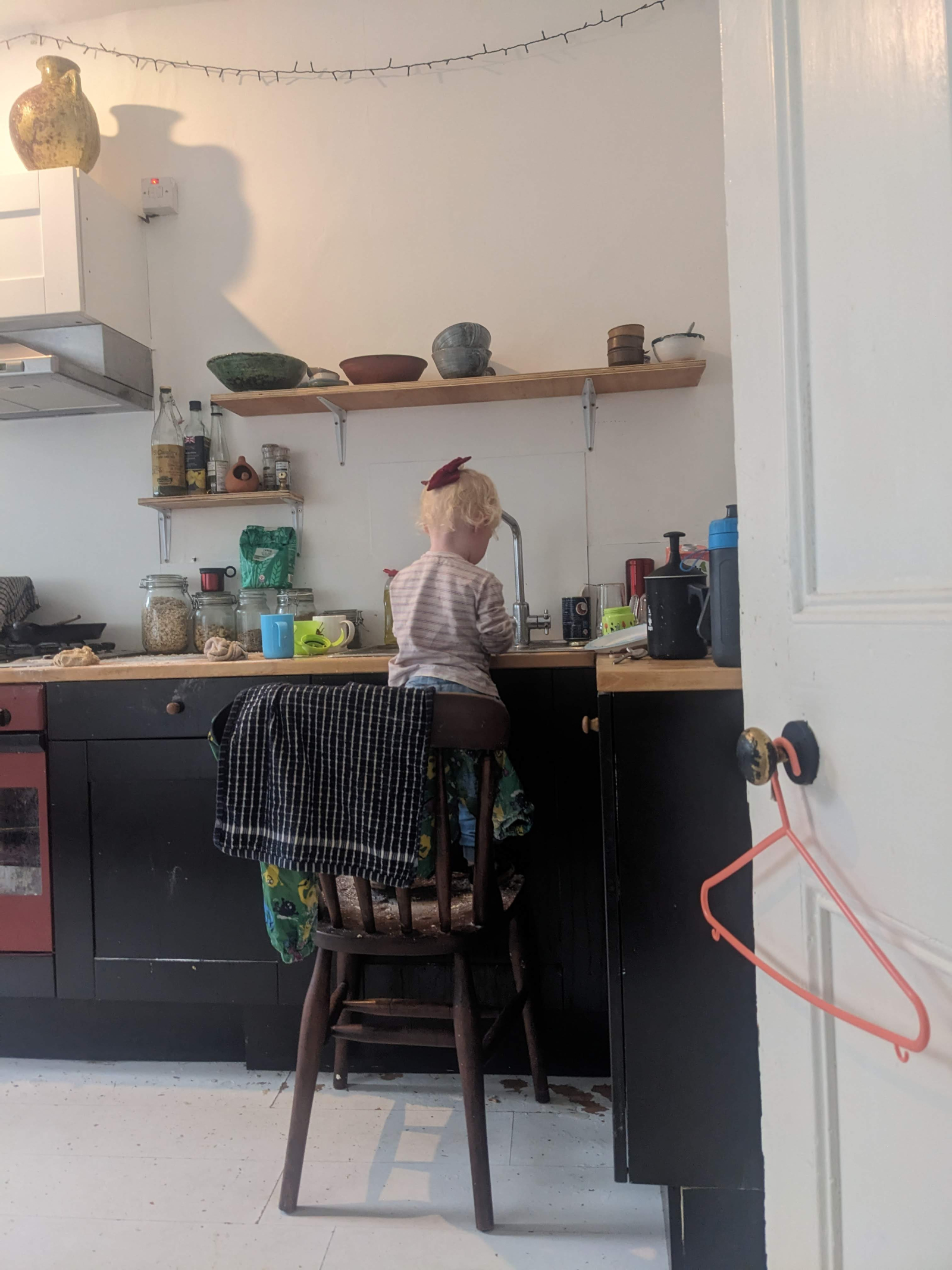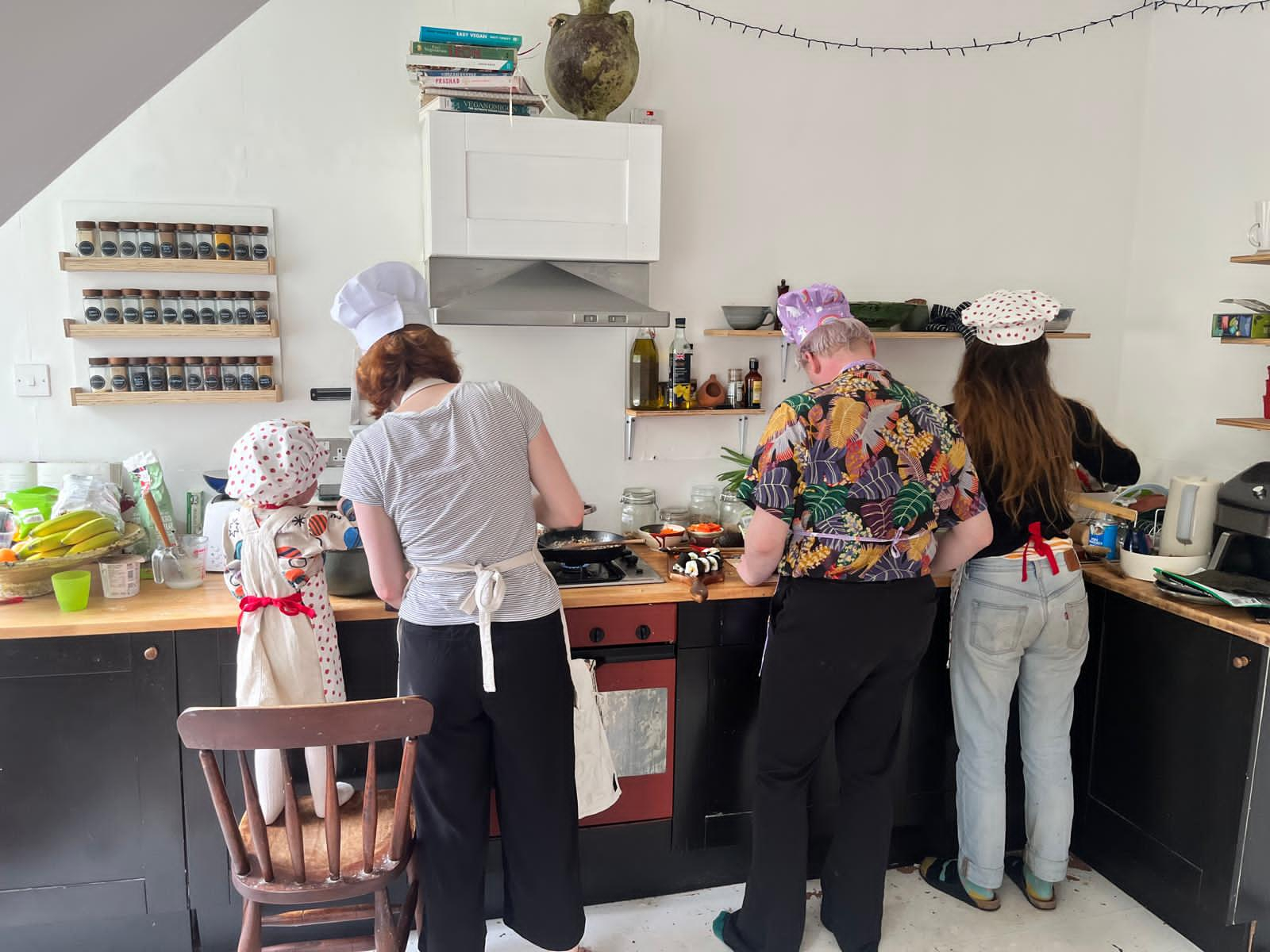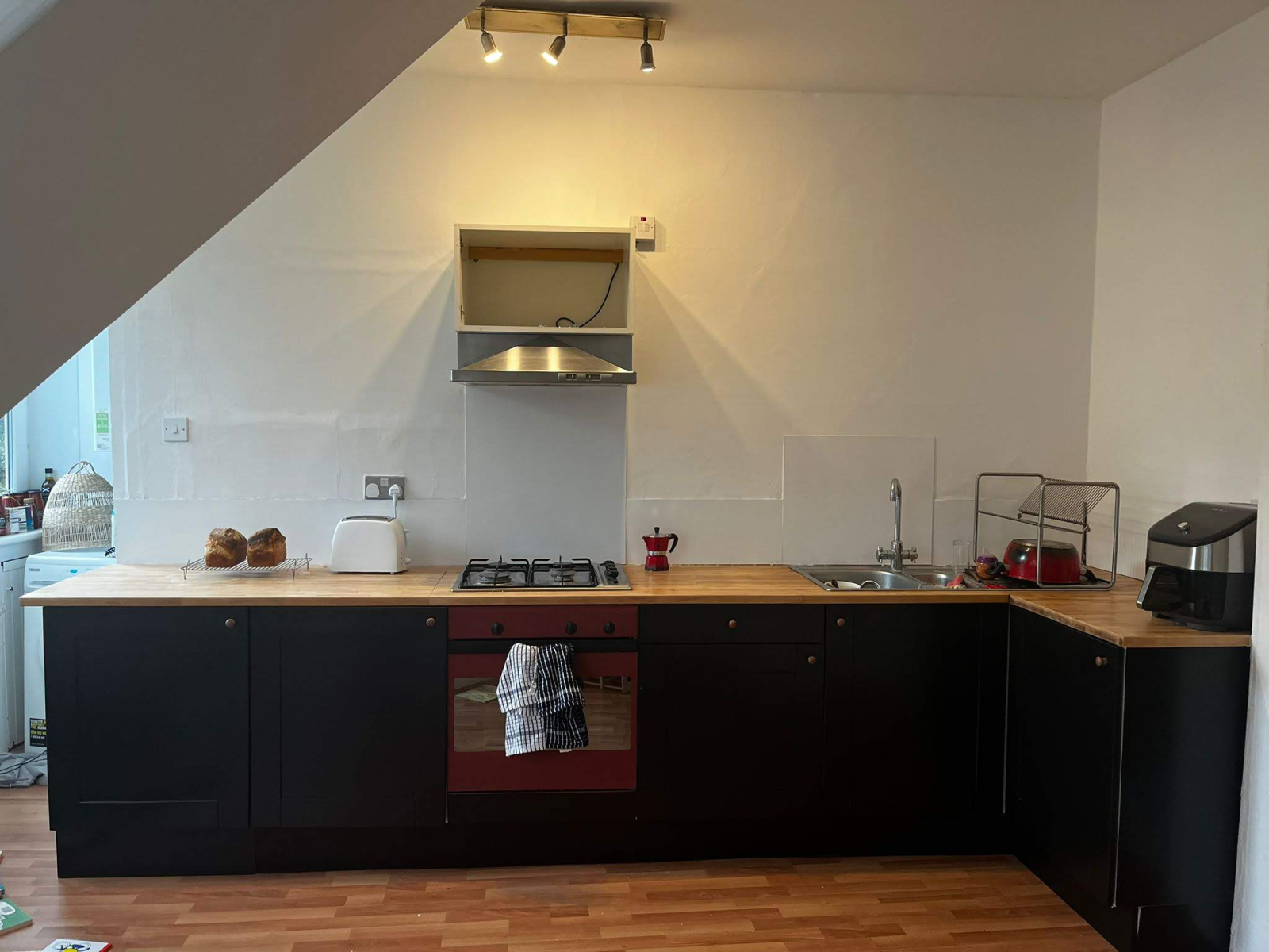 There is an oven, air fryer, kettle, hob and other bits and bobs in the kitchen, including some beautiful ceramics that we love