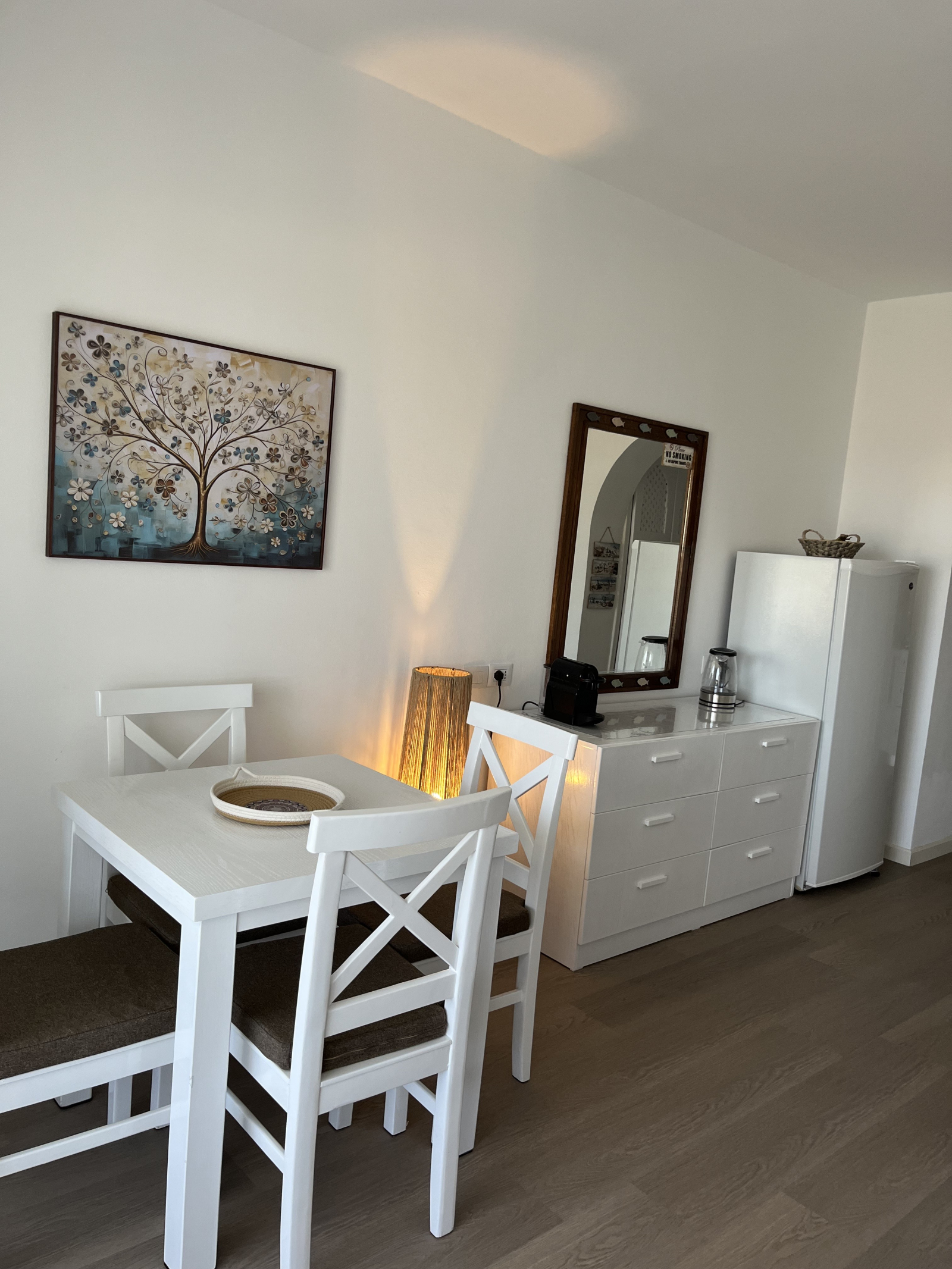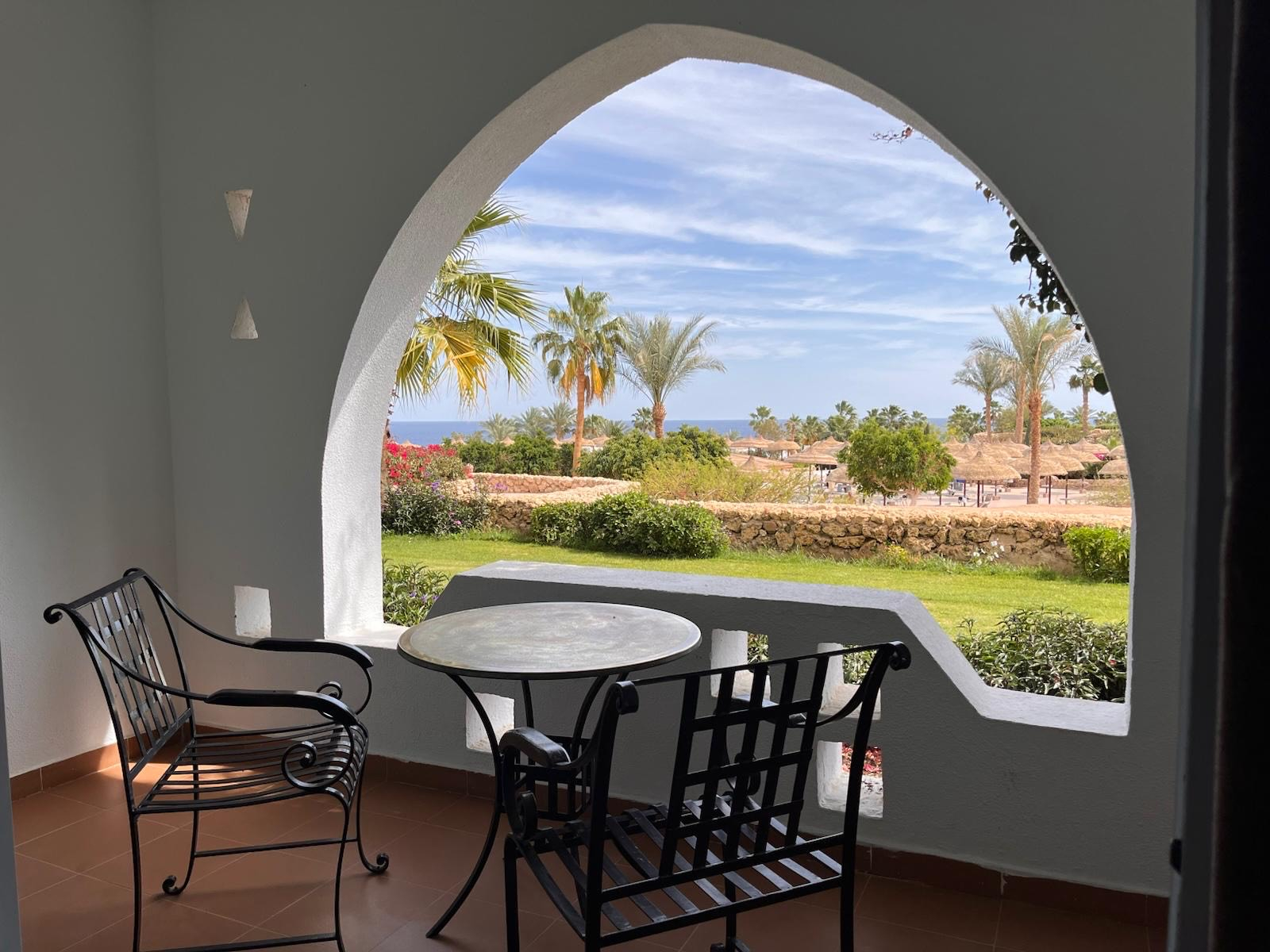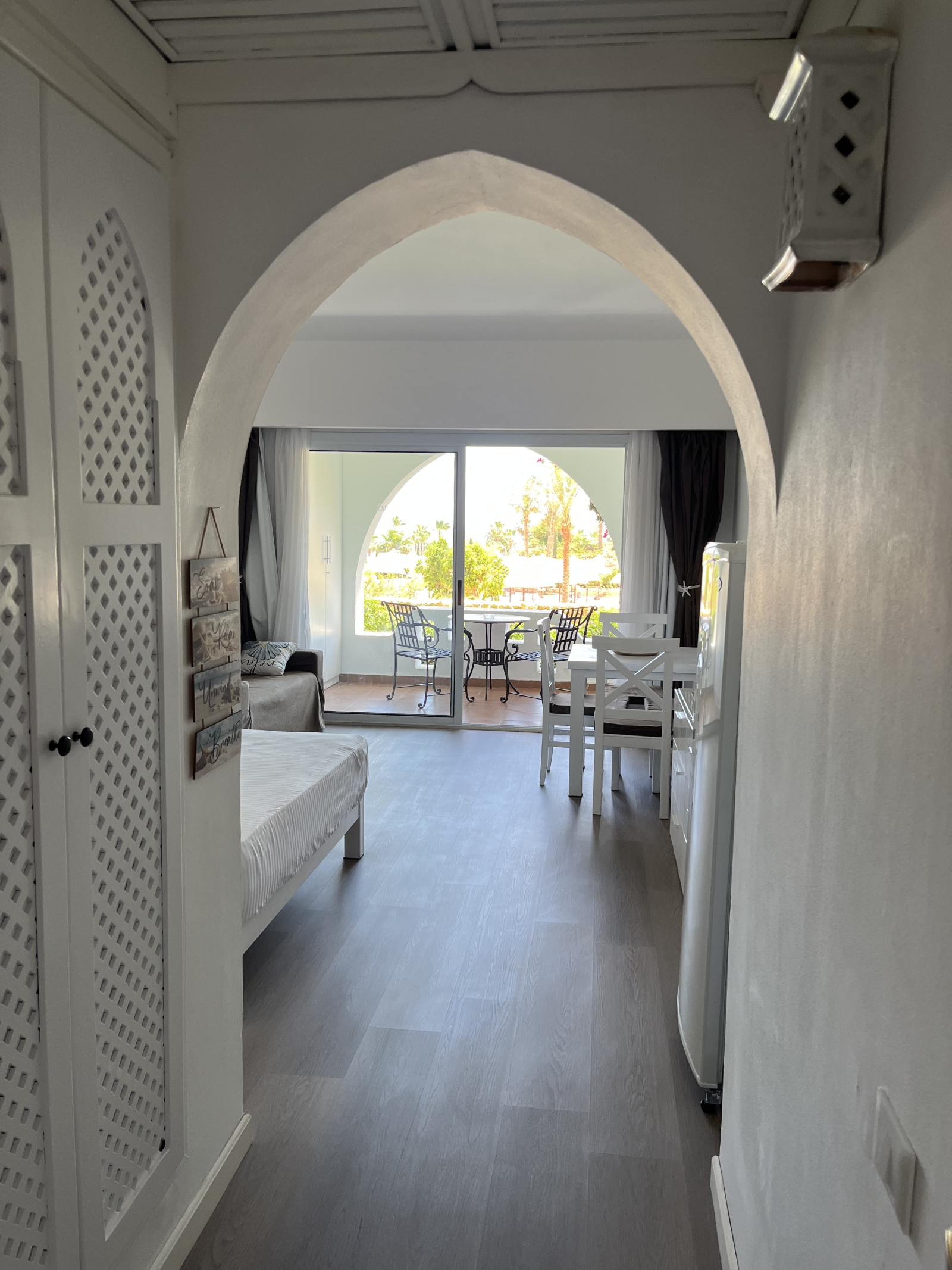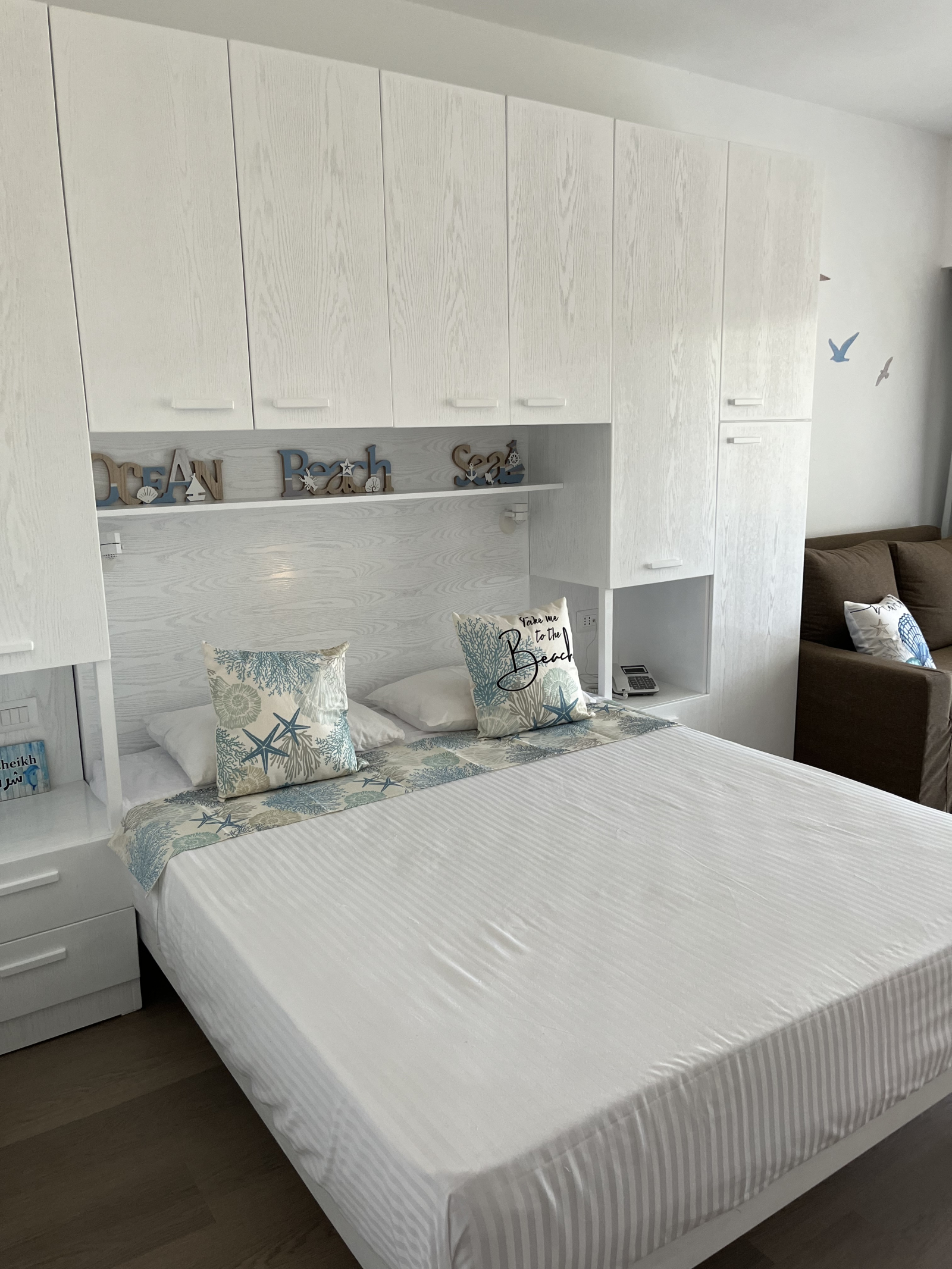 Welcome to our bright studio apartment in Sharm el Sheikh, a corner of paradise with beautiful views of the sea and the pool. The house is air-conditioned, spacious and welcoming, furnished with a modern and marine style that immediately transmits relaxation and comfort, perfect for moments of relaxation.