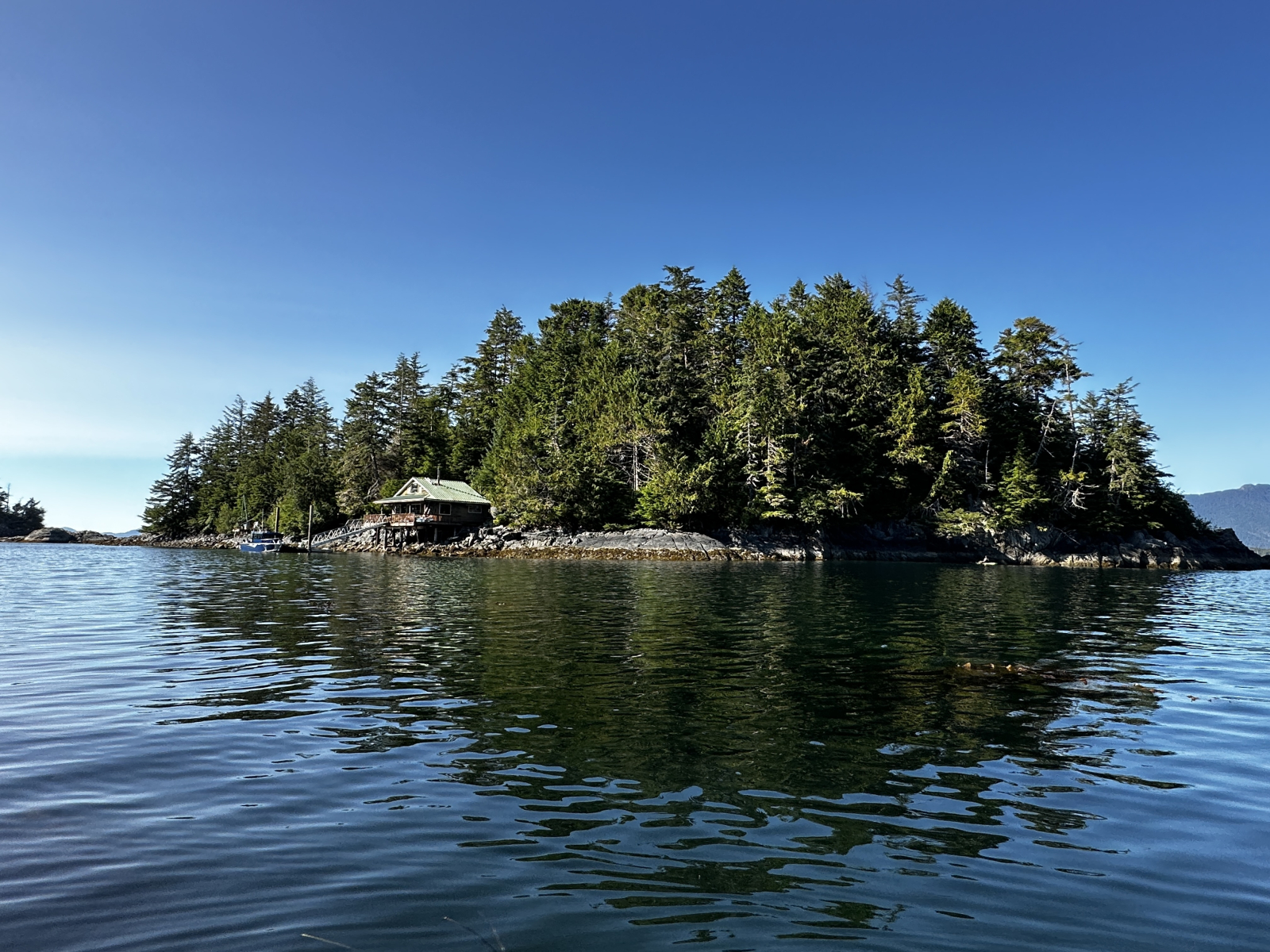 We own a private 4-acre island 3 miles from the center of town in Sitka, Alaska. We have a 1000 sq ft cabin right on the water of a small cove for guests. The cabin is only available in May & September. 1 queen bedroom, 1 double bedroom, and an open loft with a double and four twins. It has one bathroom. The island is off-grid with solar and generator power and a catchment water filtration system. This is not evident while staying in the home, as all the electricity and water work as in a normal home. However, you may need to be conservative with electricity and water use in warm weather. The heating is wood only. If you struggle to start and maintain a fire in a woodstove, this may not be the right place for you in early spring or late summer. We are happy to help and show you, but we can't be there all night. The kitchen is complete with a 6-burner gas stove, a smaller propane (RV Size) refrigerator, a large sink, but no dishwasher or washing machine. We do have the ability to take laundry to be washed at our home in town in an emergency.