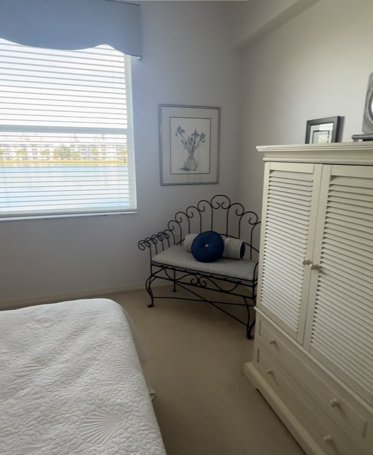 Beach cottage vibe condo with lots of fun art from local artists, including Leona Lovegrove. Comfortable screened lanai overlooking small lake with beautiful fountains and wildlife. High ceilings, 2 bedrooms each with comfortable queen bed and own bathroom. Gated community with huge pool and clubhouse with brand new gym. Close to Fort Myers Beach, and shopping galore! Very close to Sanibel as well!! Public transportation is nearby (15 min walk) with trolley that goes to Fort Myers Beach.