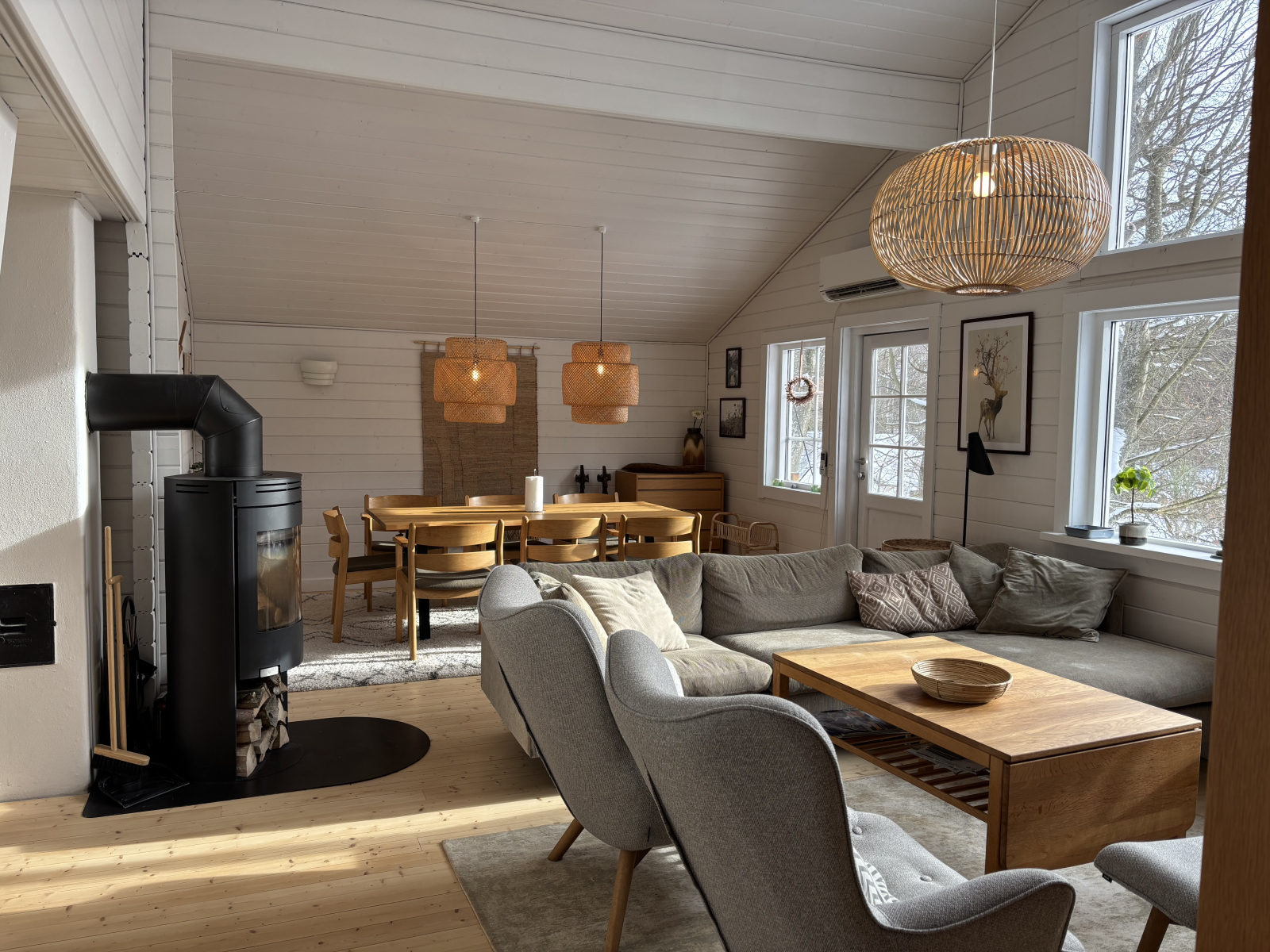 Wooden Cabin in Fjellerup Strand, a small beach town in wonderful Djursland. The house is located on a hilltop at the end of a small road, next to the forest and just a 500 meter walk to the beach.