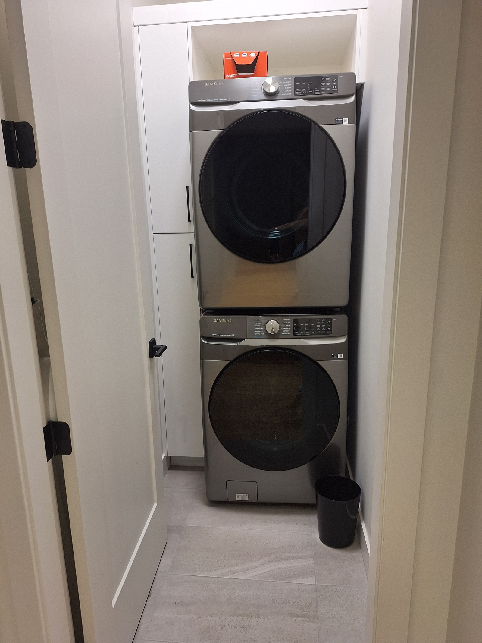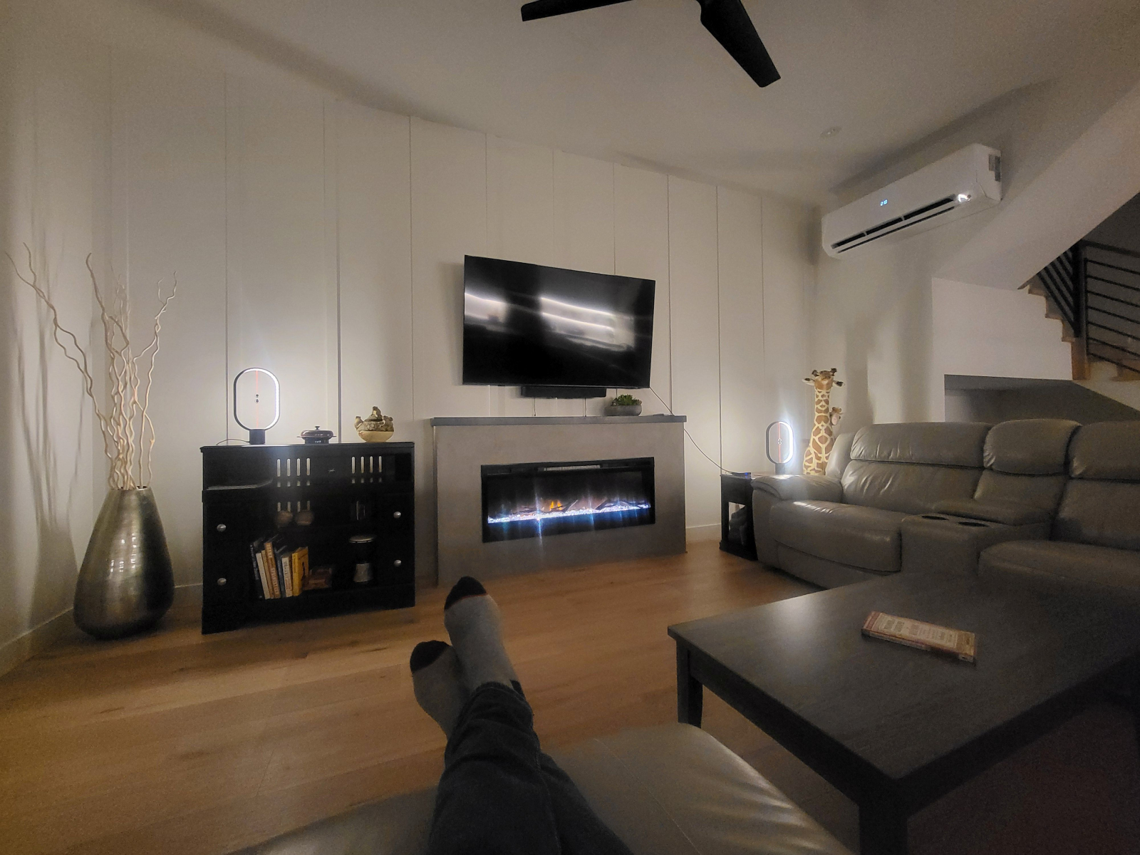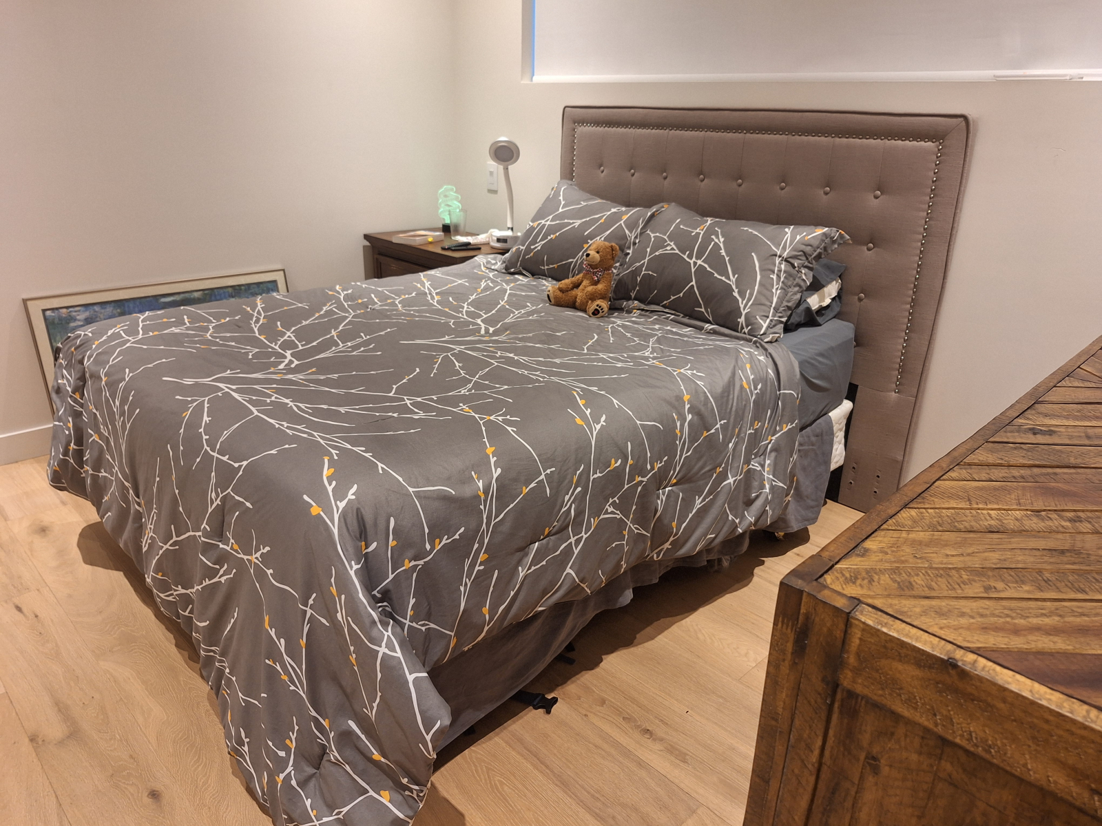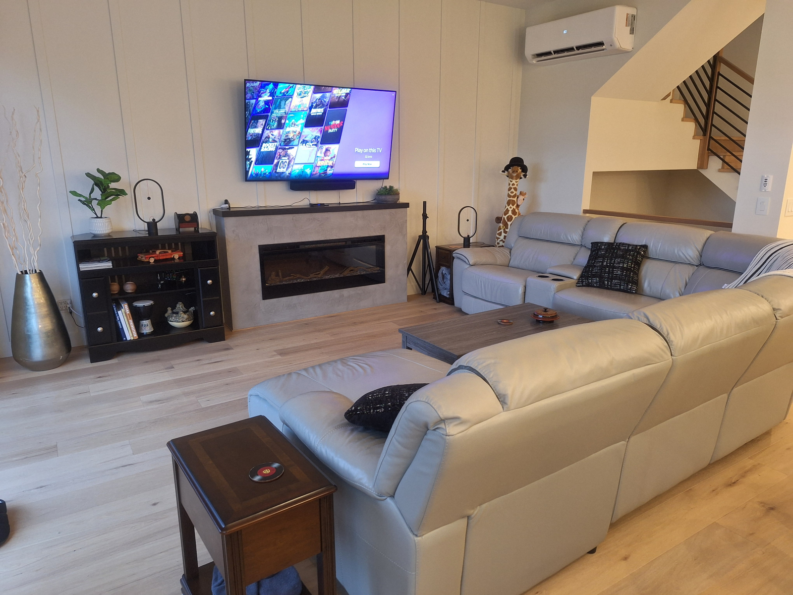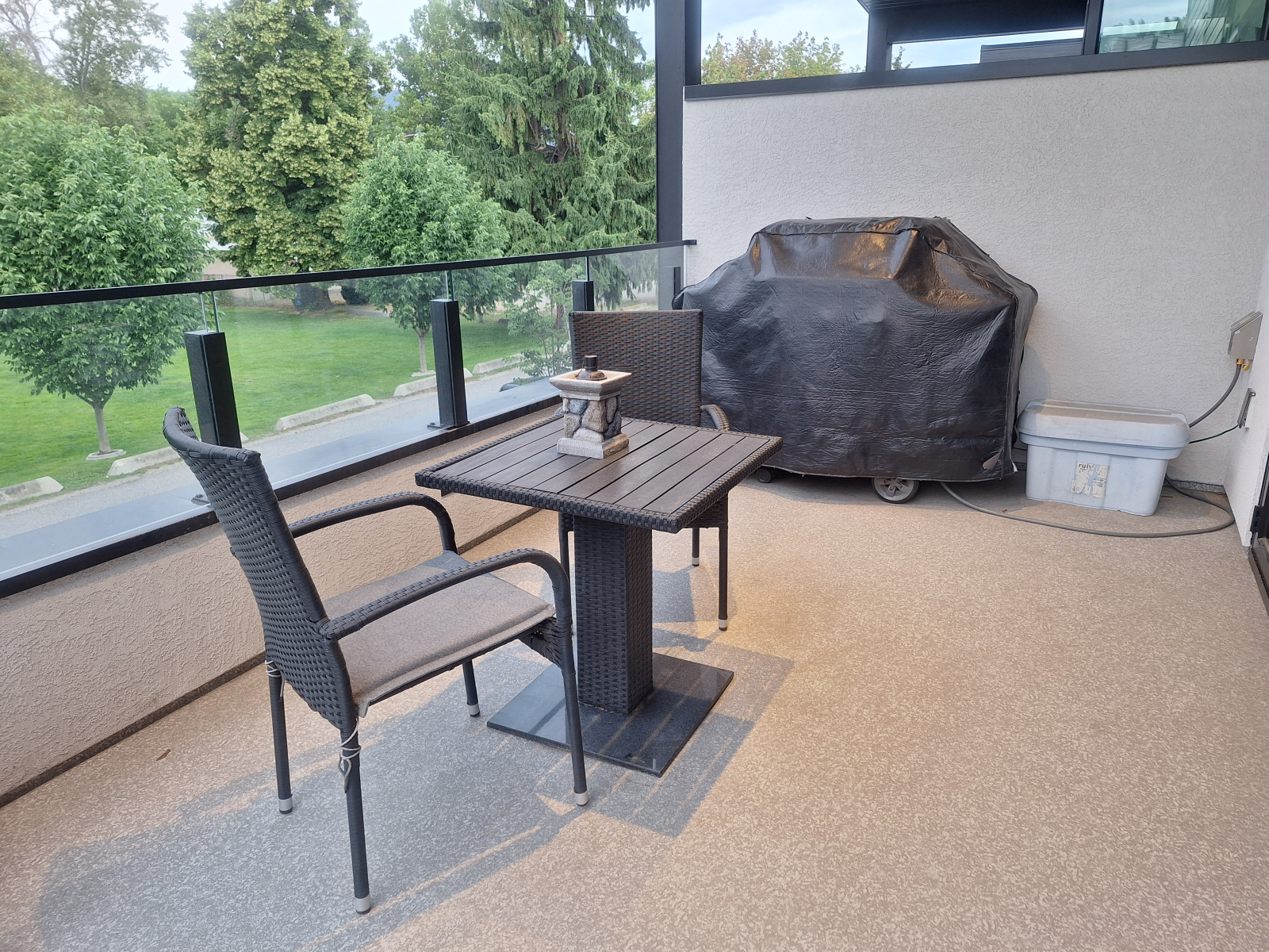 Other features include a garage with a Level 2 charger for an EV, a new fold-out cot for a child or adult, a Weber gas barbeque, a hot tub, and an exercise area, to create a truly memorable Kelowna vacation for you.