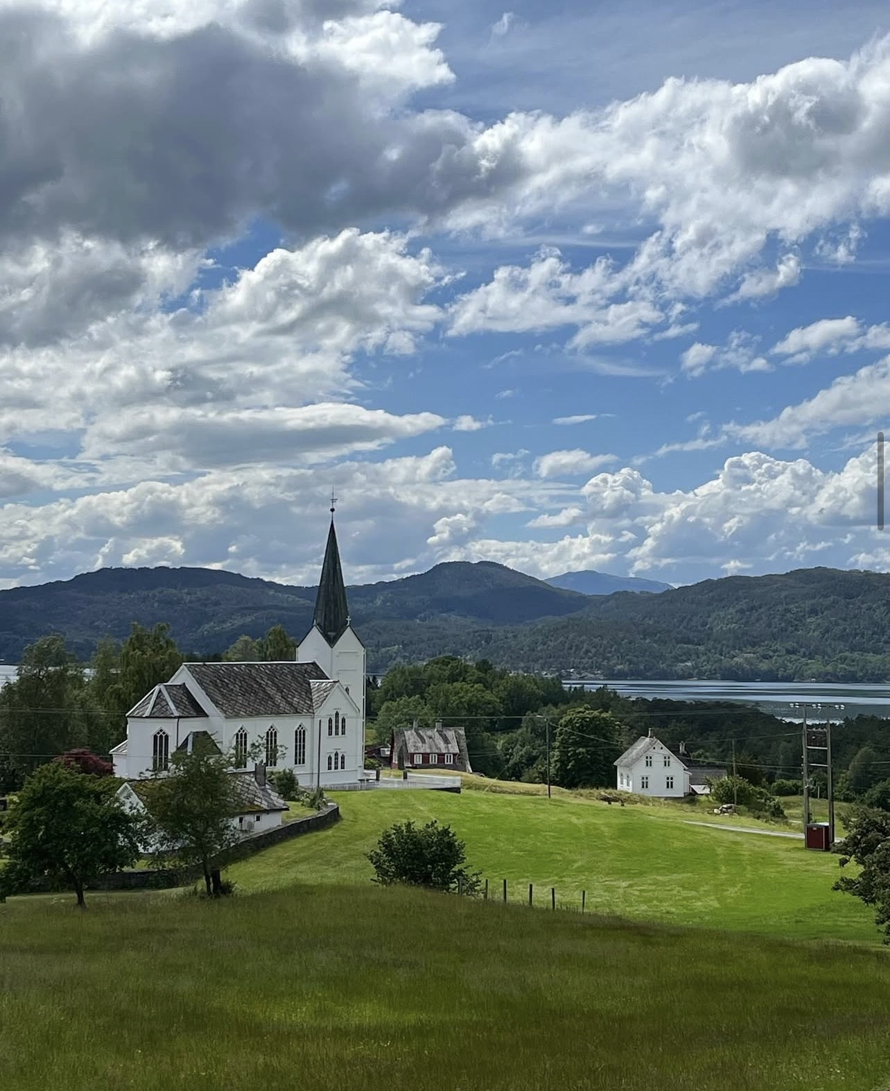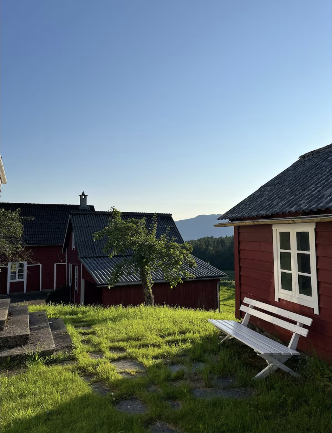 Farmhouse surrounded by mountains and fjords
