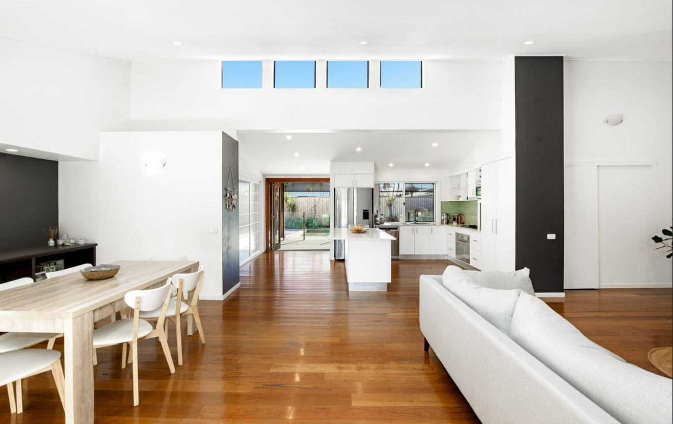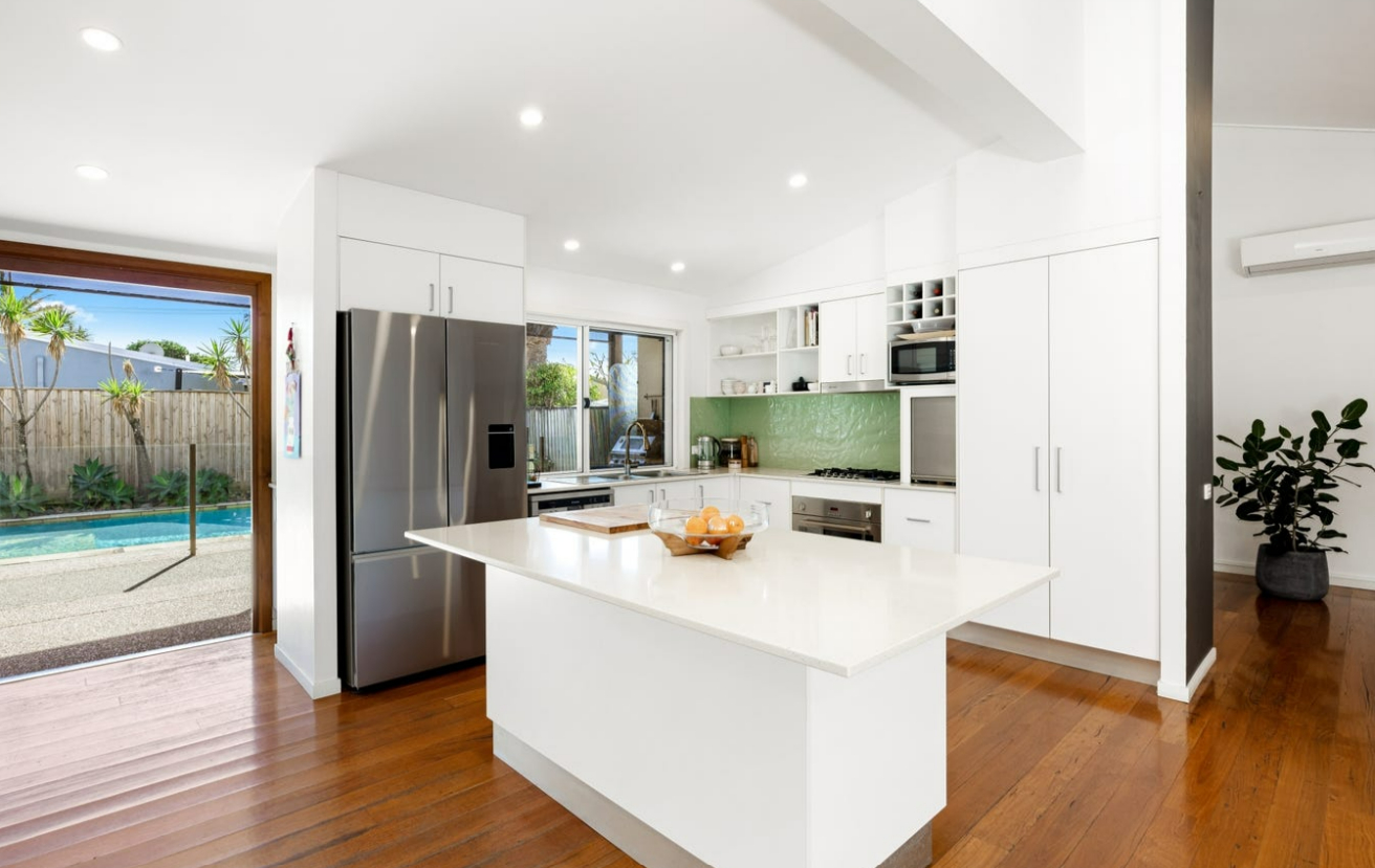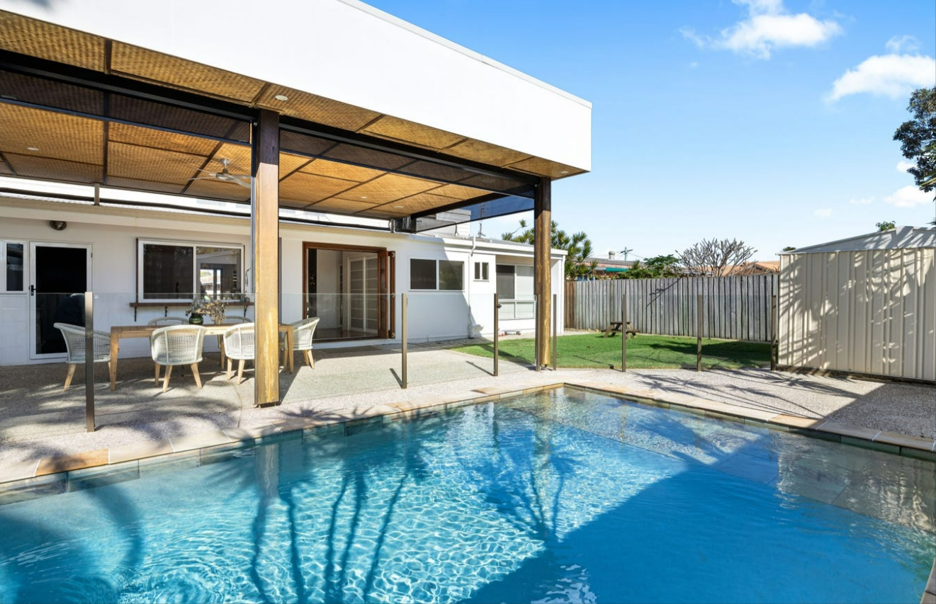 Our large 4BR family home has an open plan living area with the inground pool and outdoor living space. Plus, the convenience of being only 250 meters away from the beach.