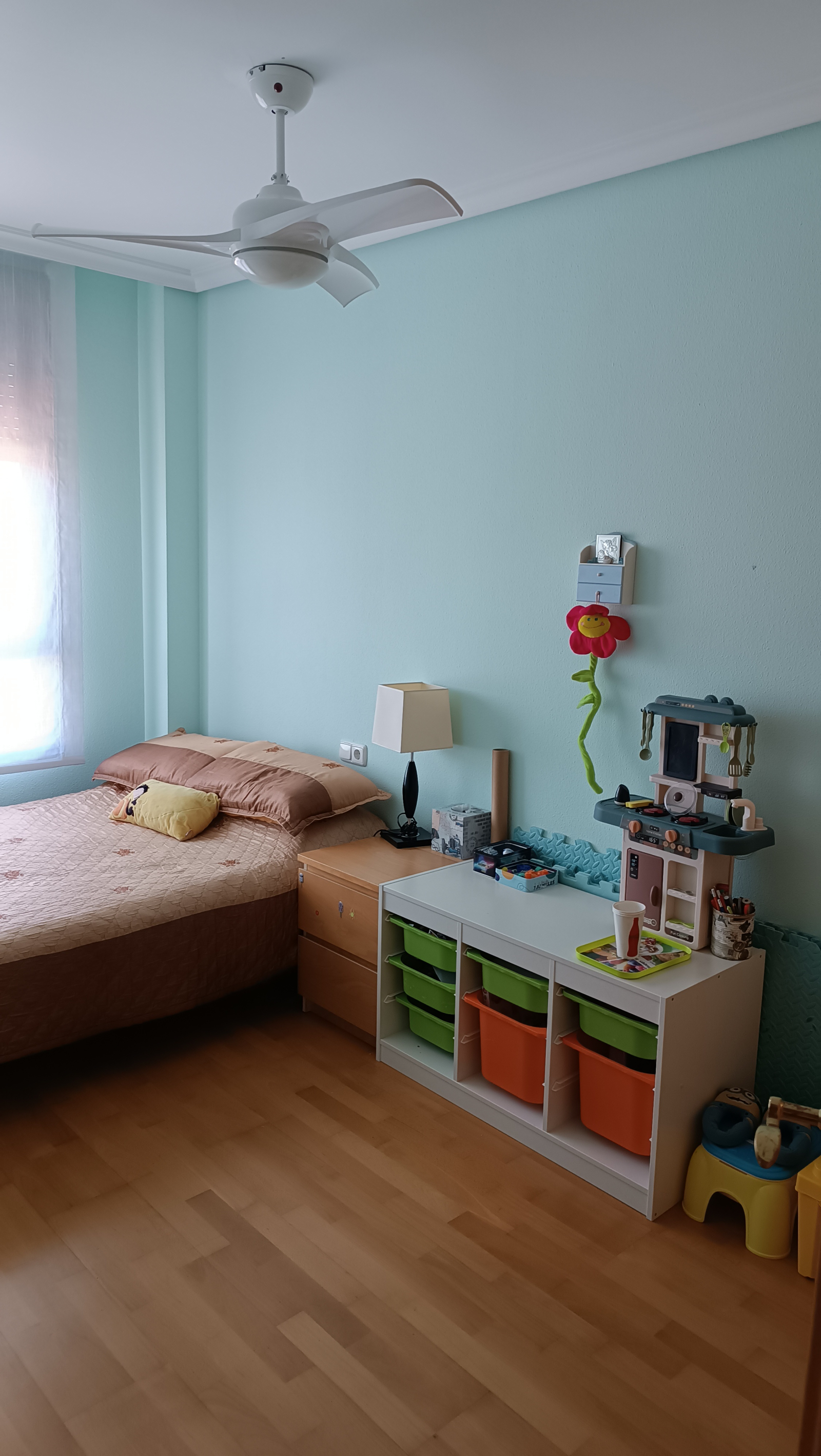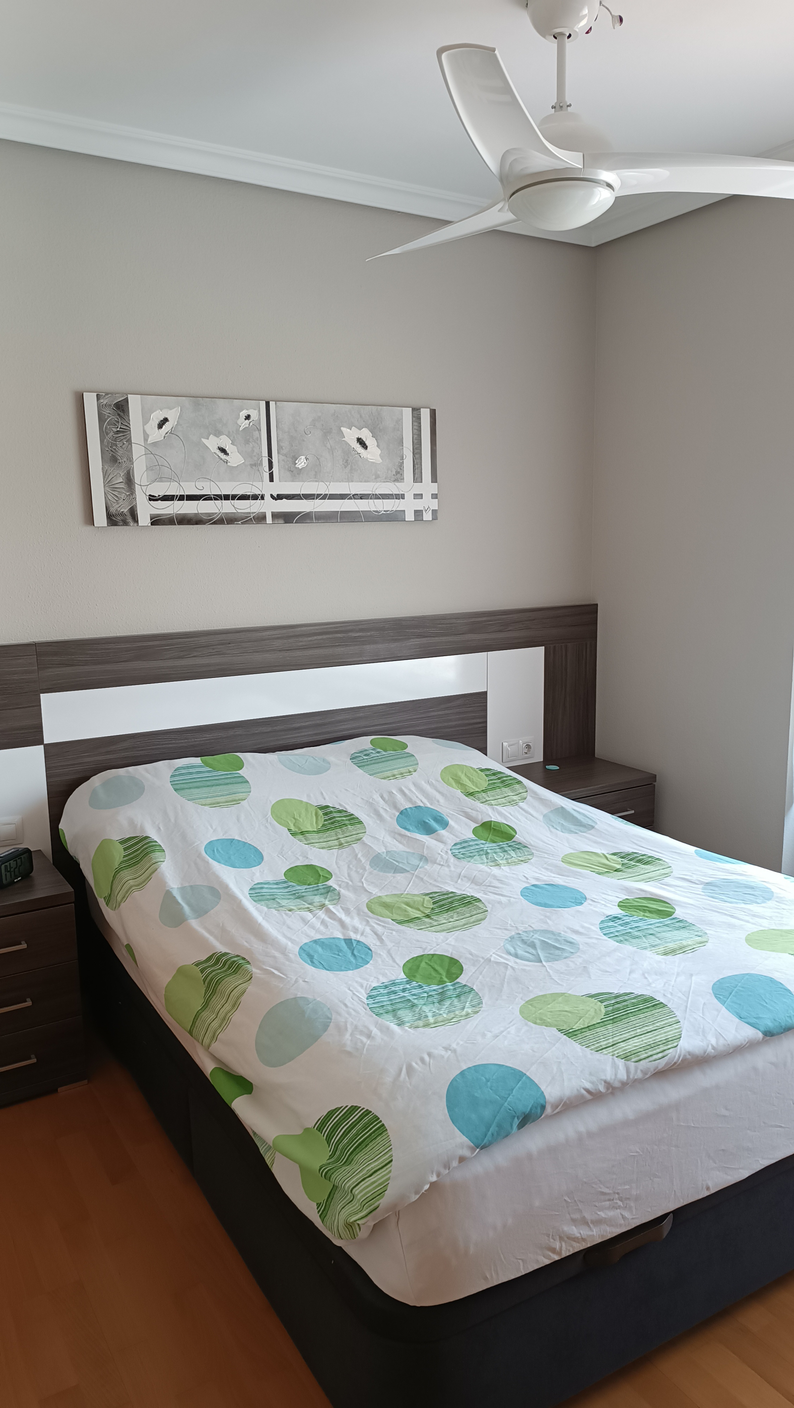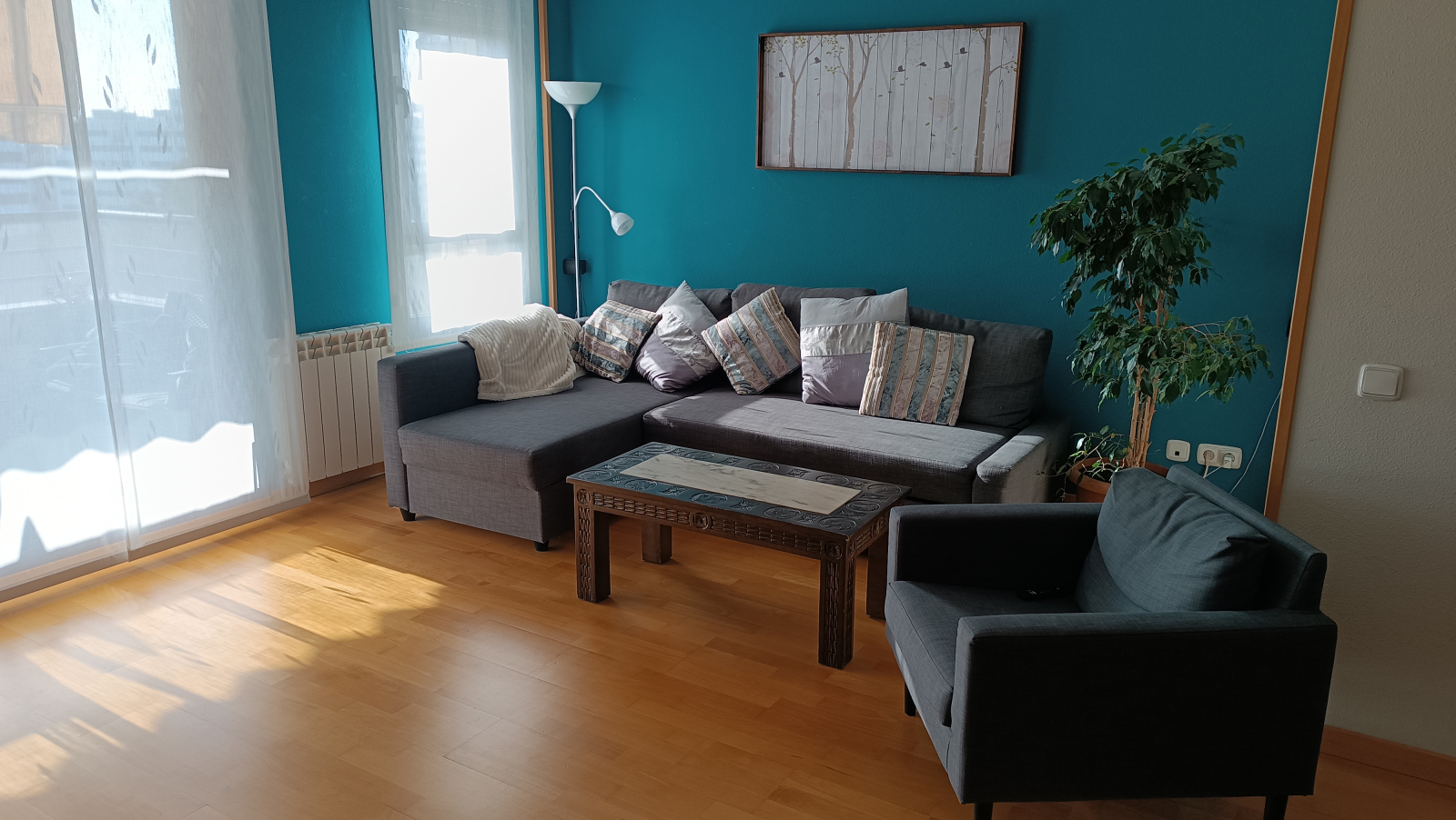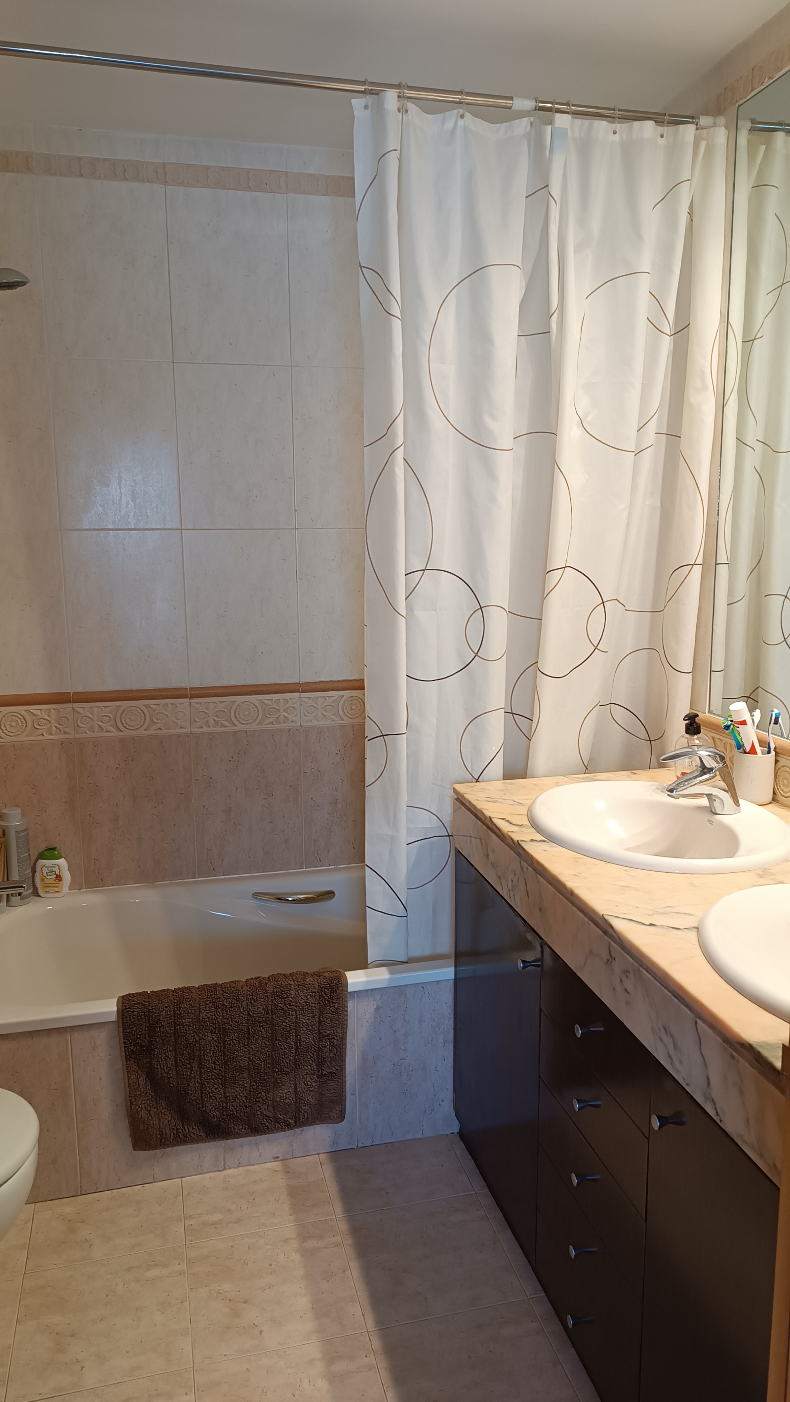 Welcome to our sunny flat with beautiful views of the mountains and the surrounding area. The flat is our main home. It consists of 2 double bedrooms, one single and an office with a desk for working or studying, 2 bathrooms (one with shower and the other with bathtub), a kitchen and a living room with a sofa bed and access to the balcony where you can have a drink or rest after sightseeing. It is on the 4th floor, therefore it is not too hot in summer. We have lots of toys, board games, and books. There is also equipment for exercising outside and inside the home and a Spanish guitar for music fans. The communal area has a swimming pool, children's playground and paddle tennis court.